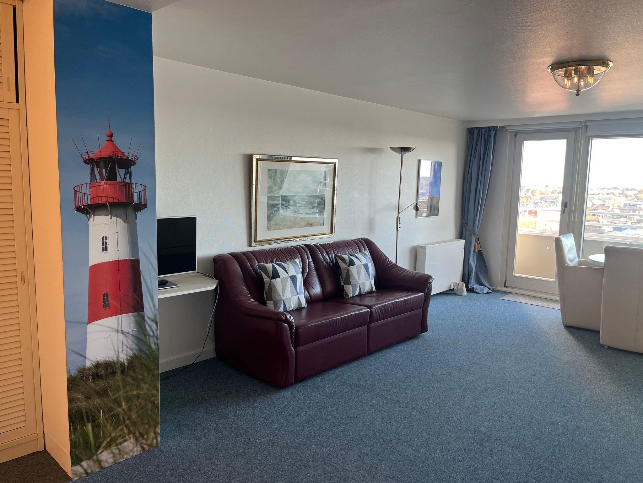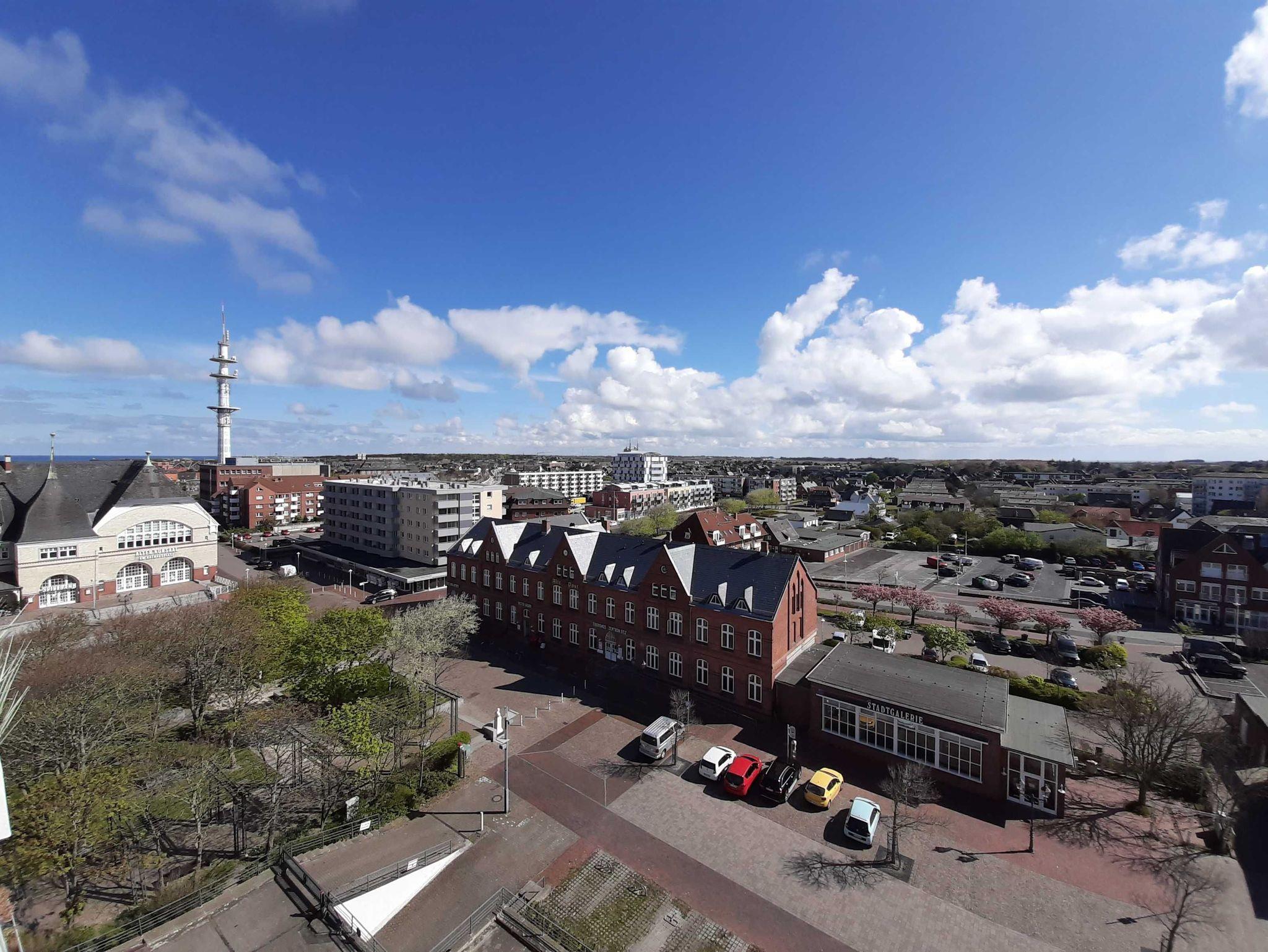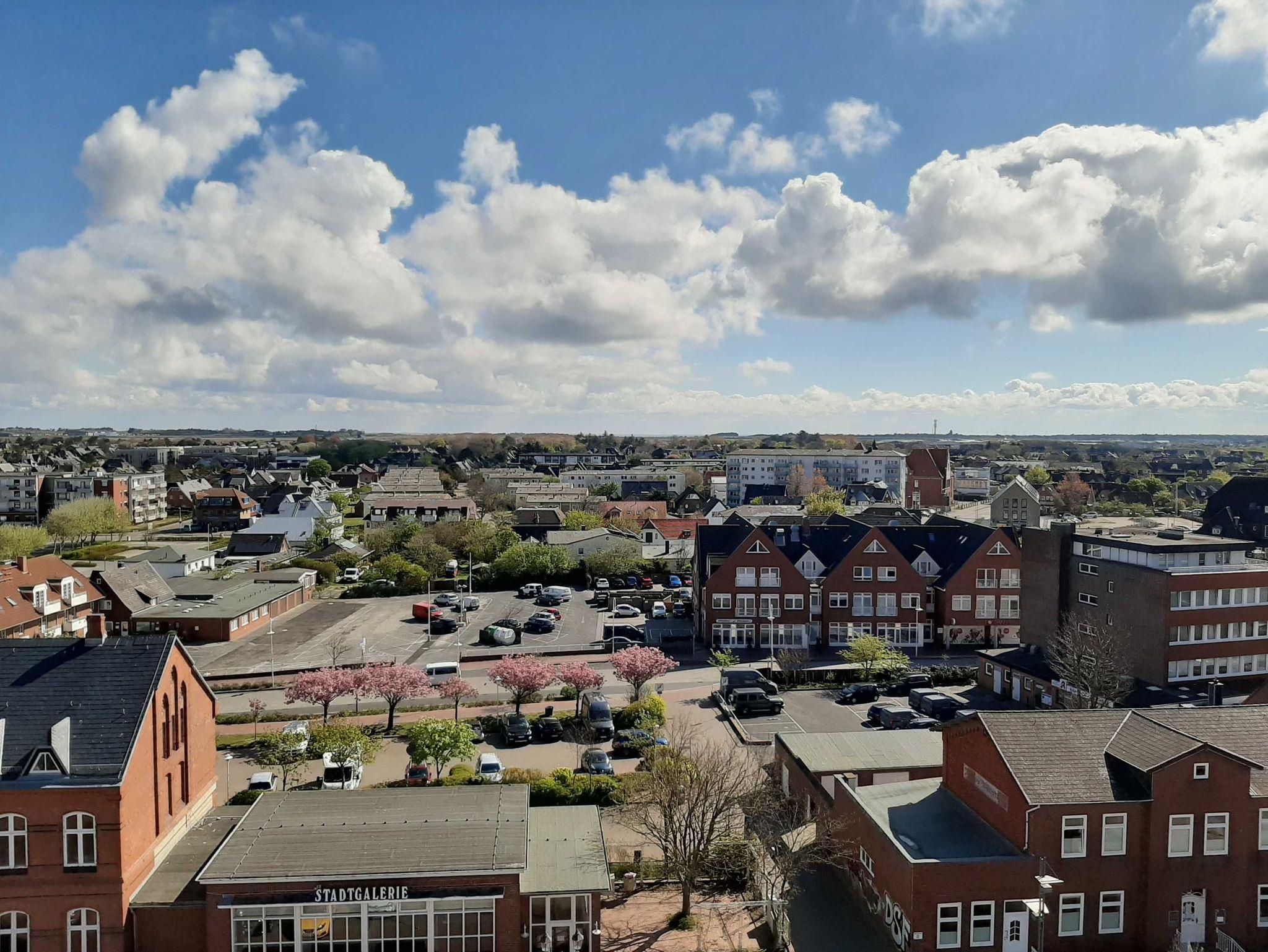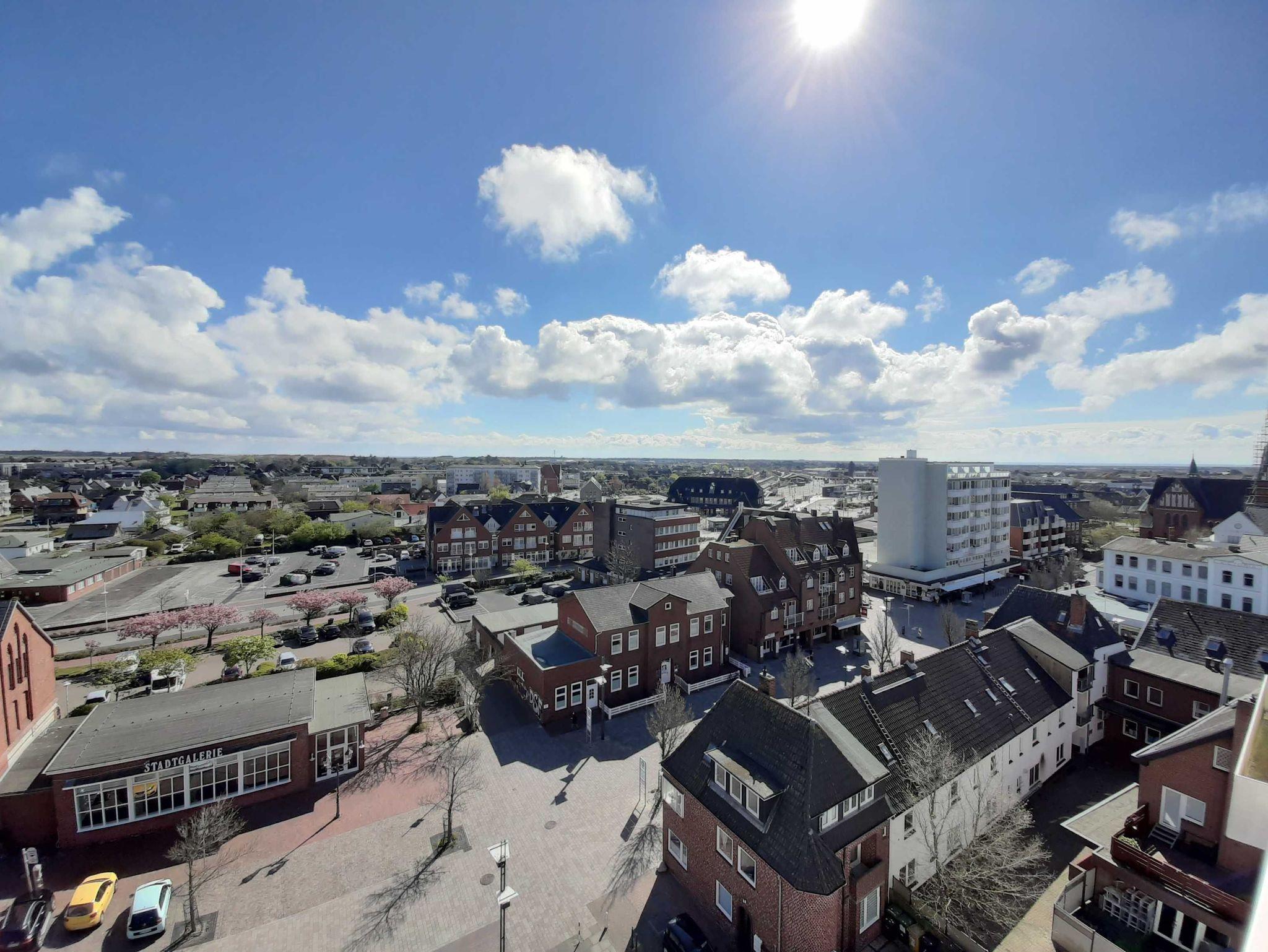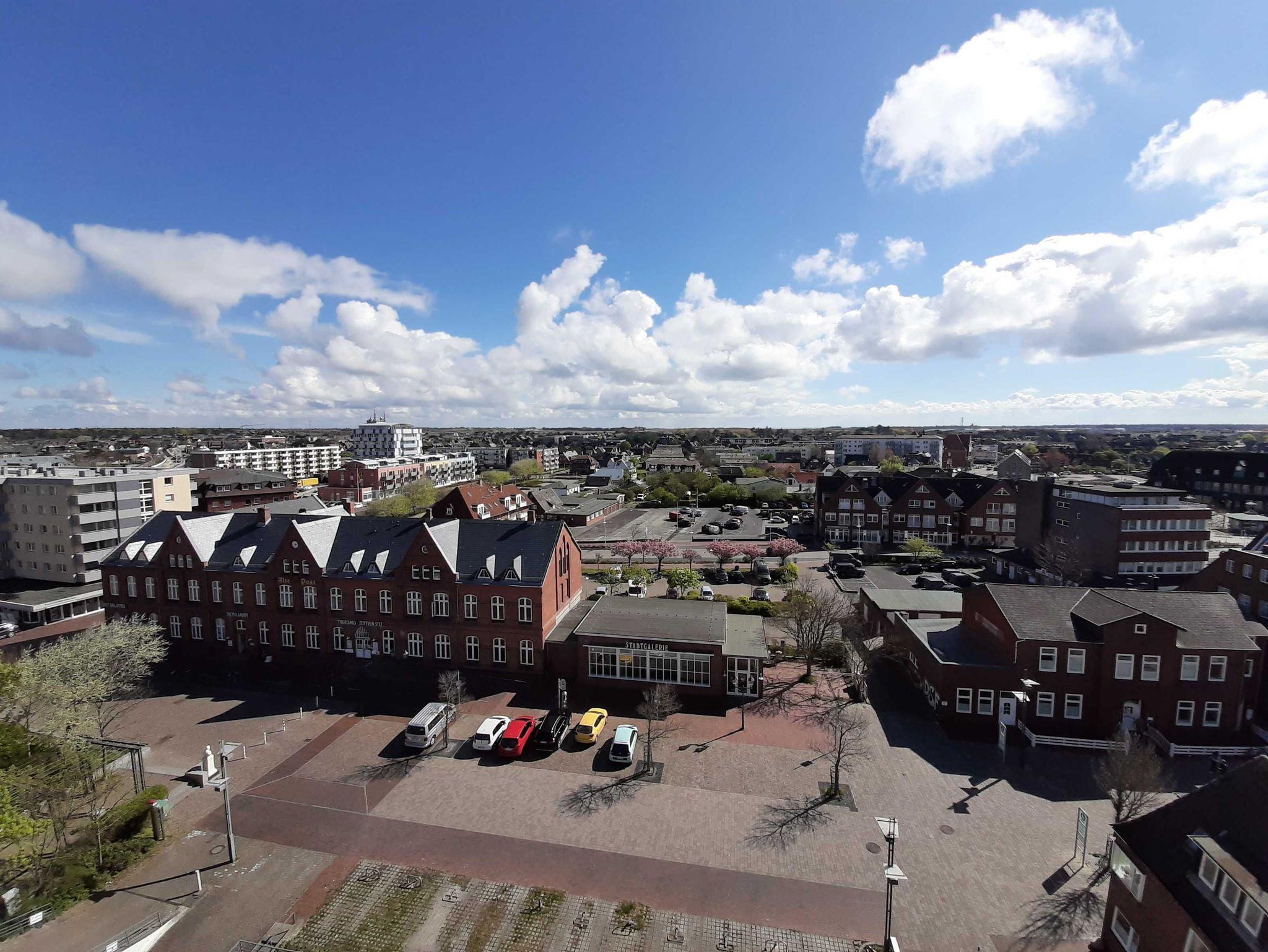Die Ferienwohnung befindet sich in der 8. Etage eines 8-geschossigen Appartementhauses mit Aufzug. Sie haben vom Balkon eine herrliche Sicht über den Osten von Sylt. Bei gutem Wetter können Sie in Morsum das Watt sehen. Im Zentrum Westerlands, schräg gegenüber der Fußgängerzone Friedrichstrasse ist der Haupteingang des Hanseatenhauses. Entfernung zum Strand ca. 400 m, ca. 5 Gehminuten zum Bahnhof.