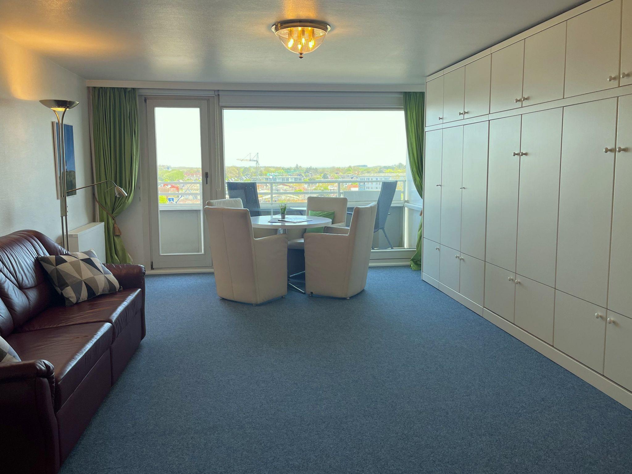 befindet sich die gemütliche 1-Zimmerwohnung für 1-2 Personen (ca. 42 m²). Die Ferienwohnung Weitblick hat, auf Grund ihrer Höhe in der 8. Etage, einen fantastischen Ausblick über die Stadt bis hin zum Wattenmeer.