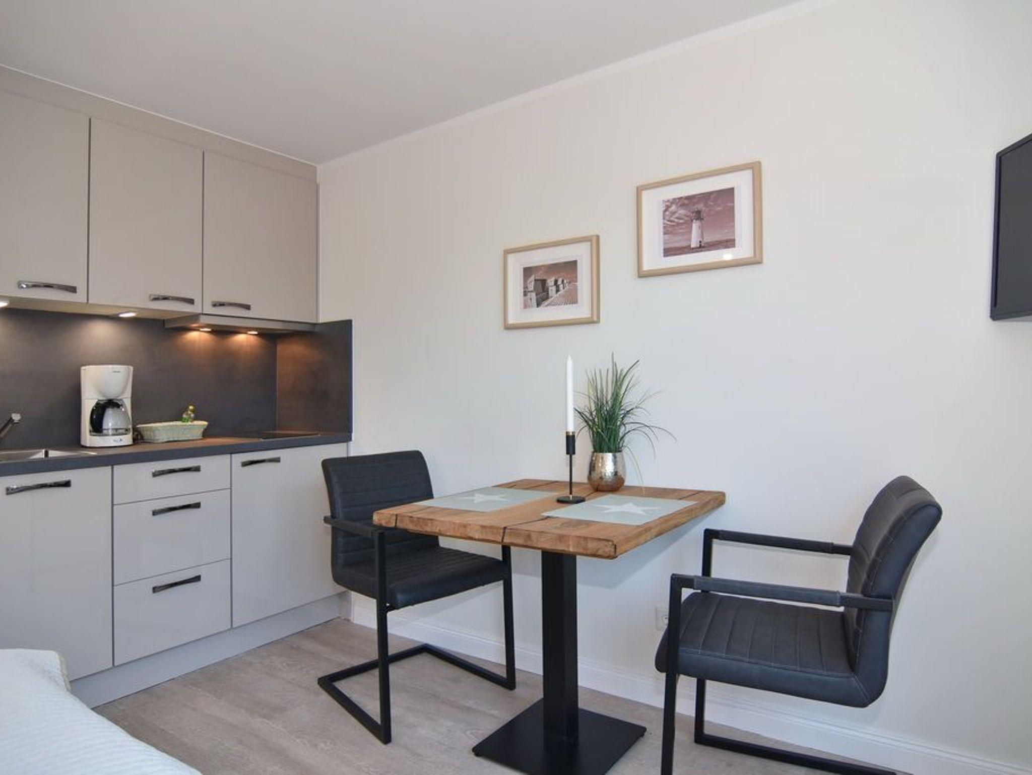 Modernes 1-Zimmer-Apartment im 1. OG mit sonnigem Westbalkon und Blick auf den Dünenkamm im Haus Luv, ca. 25 m², Nichtraucher. Wohn-/Schlafzimmer mit festem Doppelbett (140x200), Einbauschränken und integrierter, moderner Küchenzeile, Essplatz für 2 Personen am Fenster. Duschbad/WC. Flat-TV, Radio und W-LAN (ohne Gewähr). Tierhaltung ist nicht gestattet. Schwimmbad und finnische Sauna. Garage N. 5 kann kostenlos dazugebucht werden. Waschmaschine und Trockner (Münzautomaten). Bettwäsche und Handtücher sind zur Anreise aufgezogen!