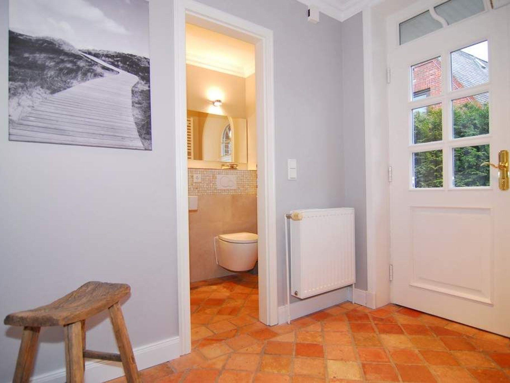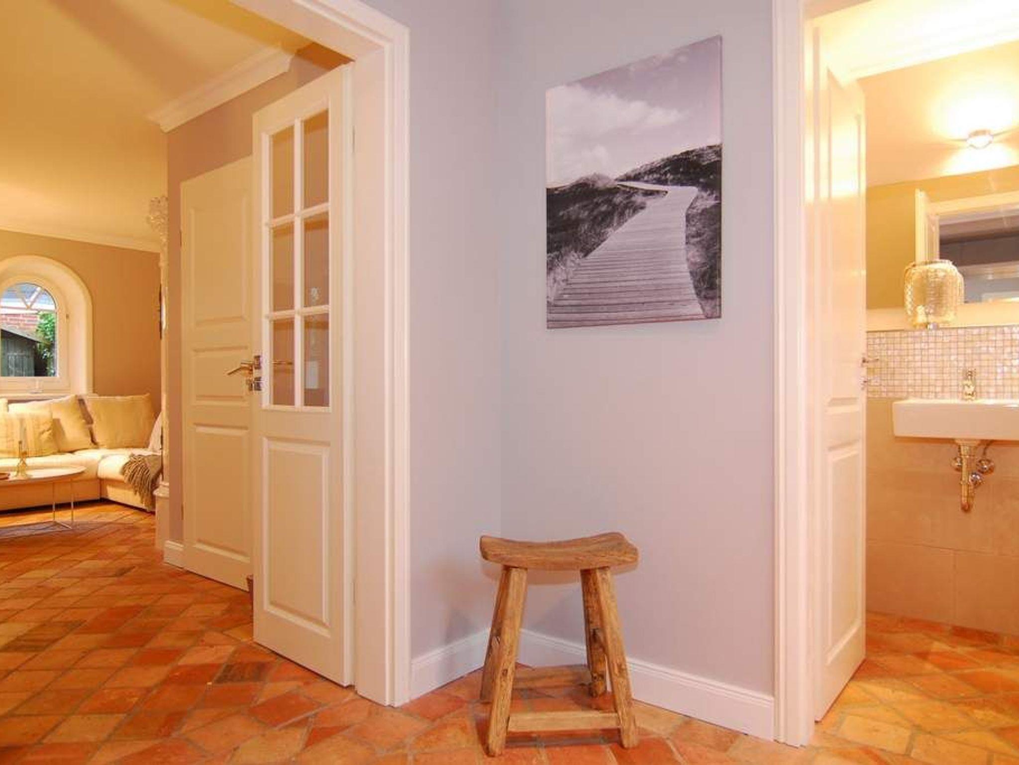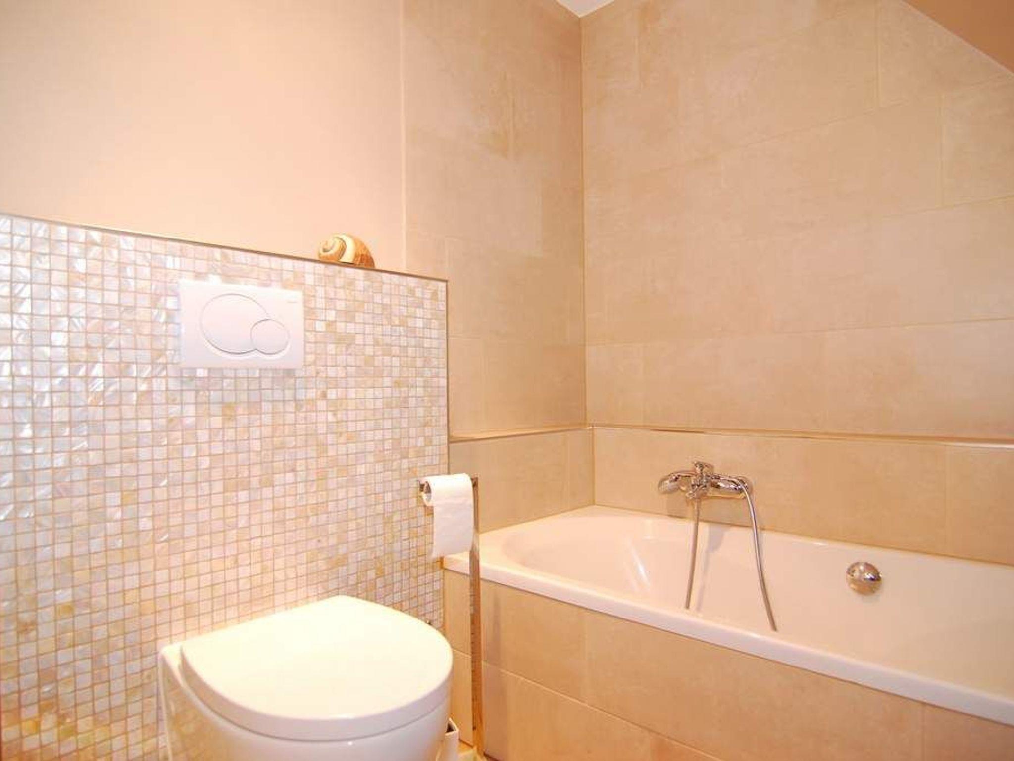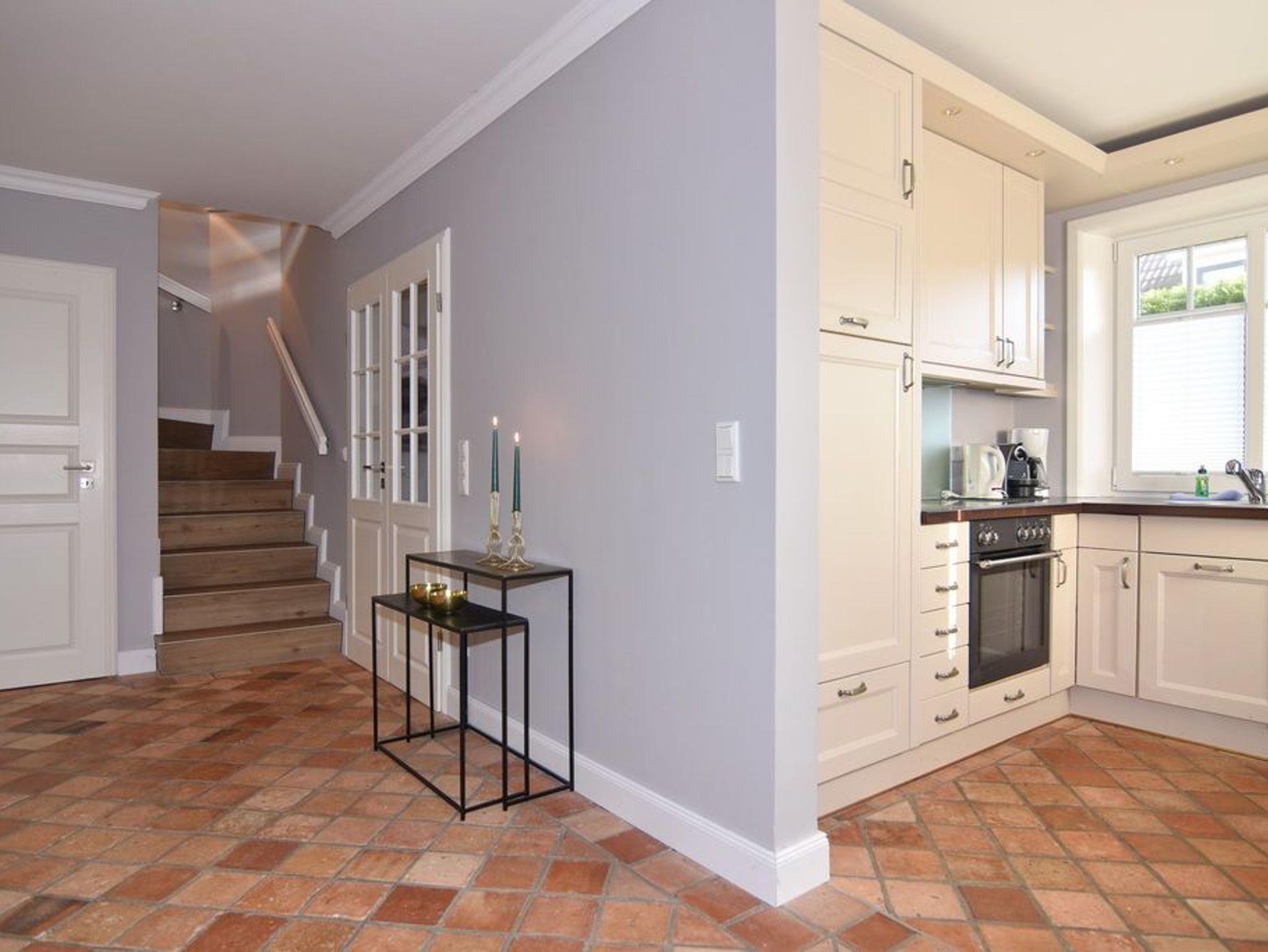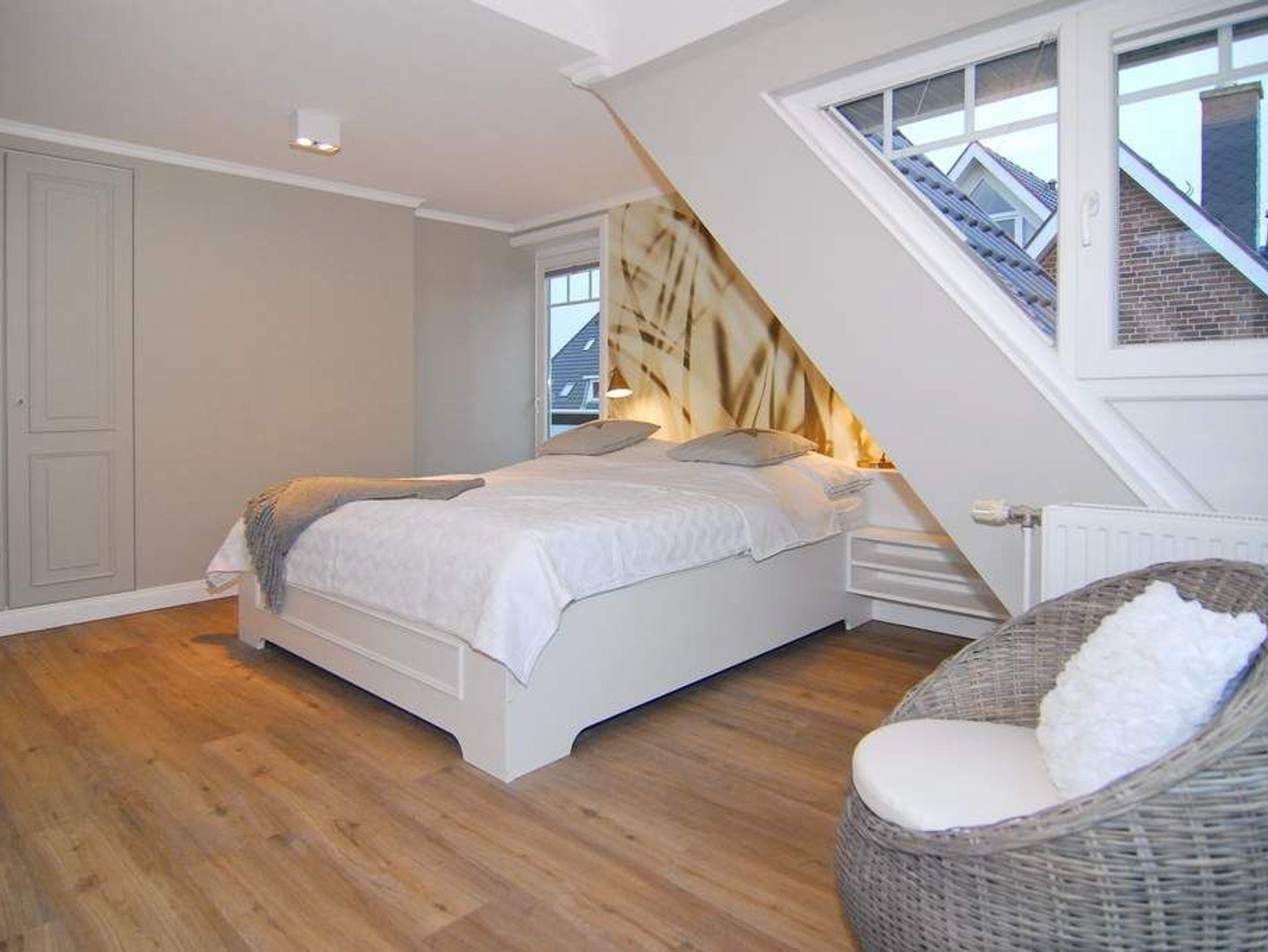 Exklusive Doppelhaushälfte. Nichtraucher-Haus! EG: großzügiges Wohn-und Esszimmer mit Kaminofen, Sofaecke, Esstisch für 6 Personen, W-LAN (ohne Gewähr), 2 Terrassen (Süd+West), Strandkorb (Apr.-Okt.), offene Küche mit Geschirrspüler, Mikrowelle und Backofen, (Abzug bitte Fenster öffnen) Fußbodenheizung, Gäste-WC und Diele. OG: 2 Schlafzimmer mit Doppelbetten und gemeinsamen Südbalkon, 1 Duschbad/WC mit Waschmaschine und 1 Wannenbad/WC DG: 1 Schlafzimmer mit 2 Einzelbetten. Ein Pkw-Stellplatz befindet sich am Haus. Bettwäsche und Handtücher sind zur Anreise aufgezogen. Tierhaltung ist nach Anmeldung gestattet.
