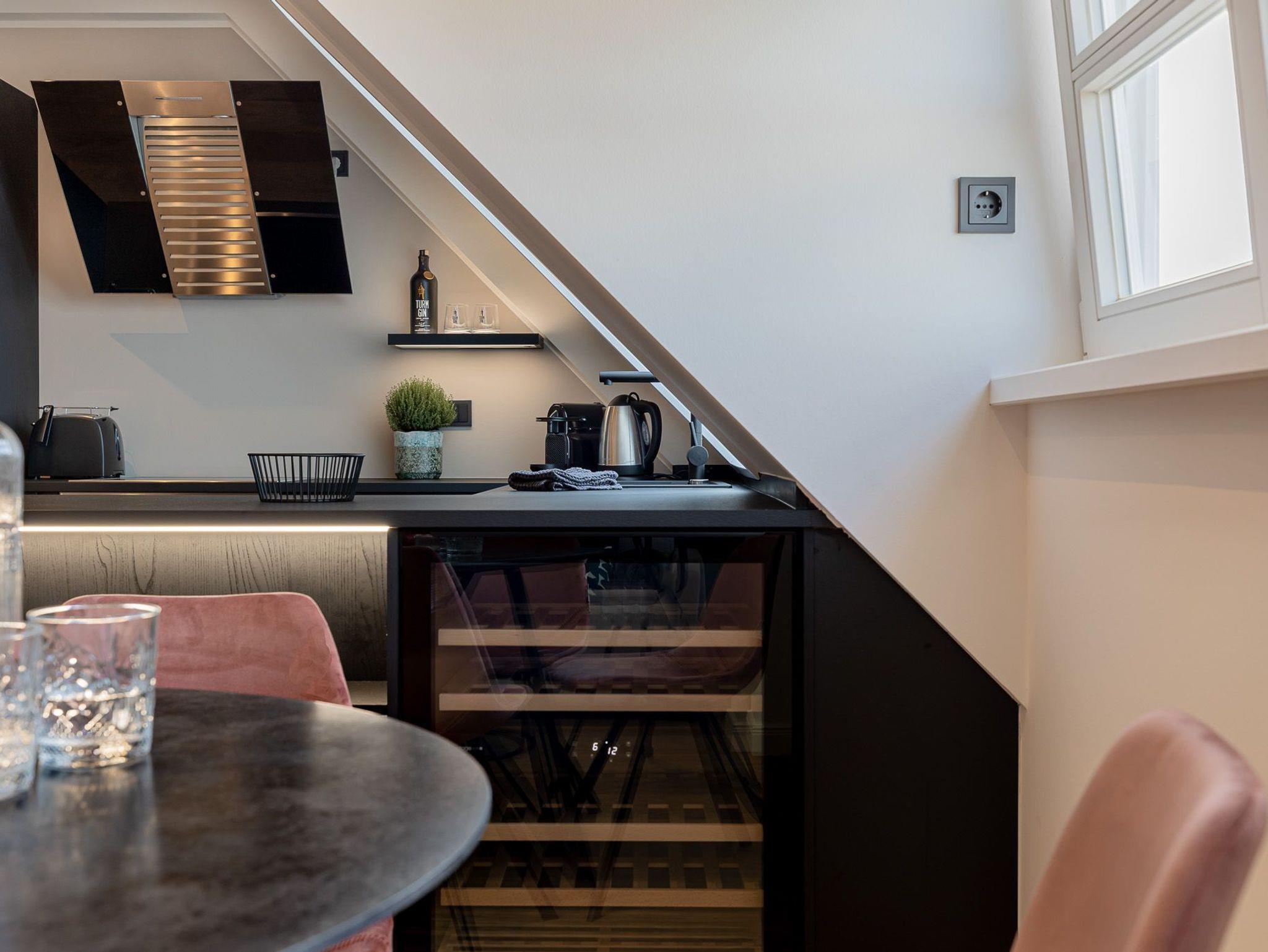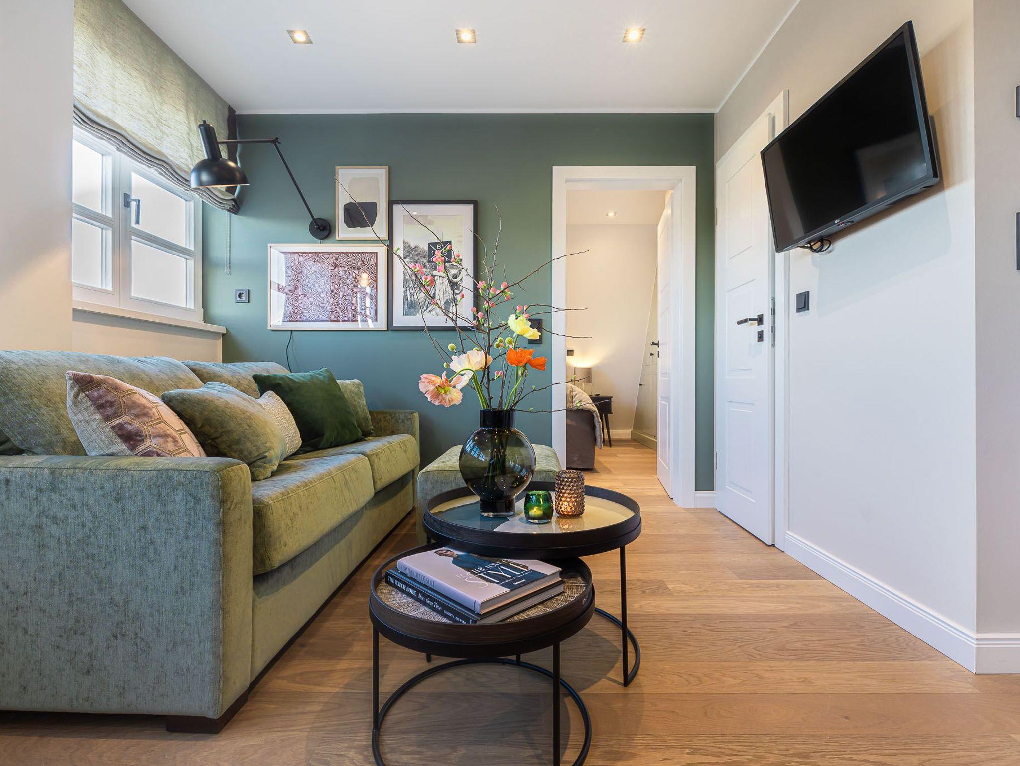 Das Apartment „Living Lorens No. 10“ überzeugt mit hohen Decken, lichtdurchfluteten Räume und einer hochmodernen Einrichtung. Beim Betreten des Apartments kommen Sie in den offenen Wohn- und Essbereich inklusive Schlafsofa. Im Schlafzimmer finden Sie ein exklusives COCO-MAT Boxspringbett für besten Schlafkomfort vor. Die Küche ist ausgestattet mit Geräten von Top-Markenherstellern wie Gaggenau und Miele, so macht das Kochen gleich doppelt so viel Spaß. Bei Ankunft erwartet Sie zusätzlich ein kleines Starterpaket für Badezimmer und Küche.
