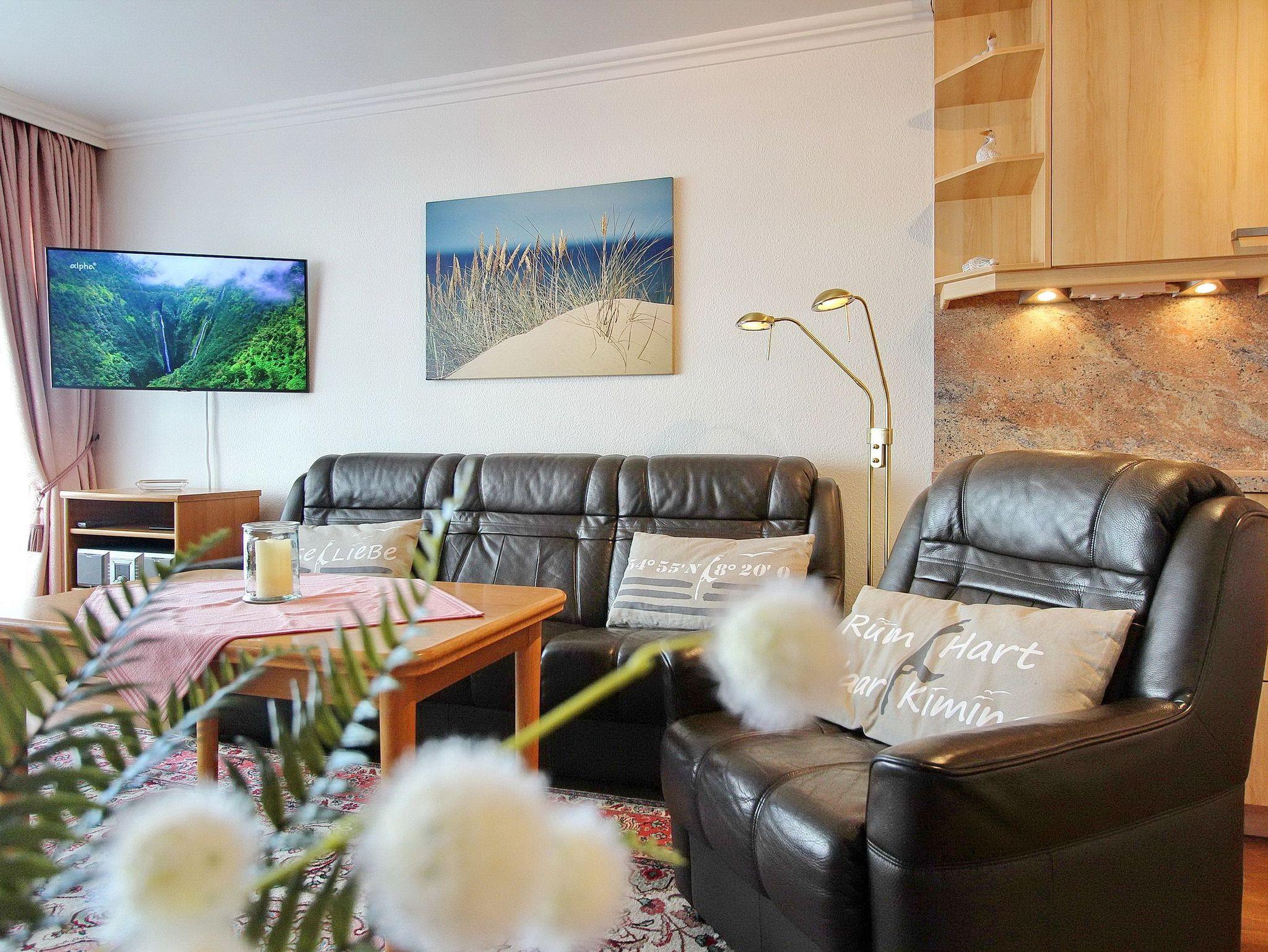 Einzimmerwohnung im Haus Westerhörn in der 1. Etage in direkter Strandlage. Nur wenige Schritte trennen Sie von der Promenade in Westerland und dem Meer. Der kombinierte Wohn-/Schlafraum mit vorgelagertem Westbalkon (Balkonmöbel mit Auflagen sind vorhanden) verfügt über ein Doppelschrankbett, 2 Fernsehsessel und eine Schrankwand mit viel Stauraum. Die offene, moderne Küchenzeile mit Mikrowelle, Ceranfeld und Spülmaschine bietet ihnen alles um sich selbst zu versorgen. In der Wohnung wurde Laminatfußboden verlegt. Im Badezimmer gibt es eine Dusche. Zur technischen Ausstattung der Wohnung gehört: ein Smart-TV und ein Radio. Den kostenfreien WLAN Zugang des Eigentümers können Sie nutzen (die Zugangsdaten finden Sie im App. - ohne Gewähr). Diese Nichtraucherwohnung hat eine Größe von ca. 30 m².