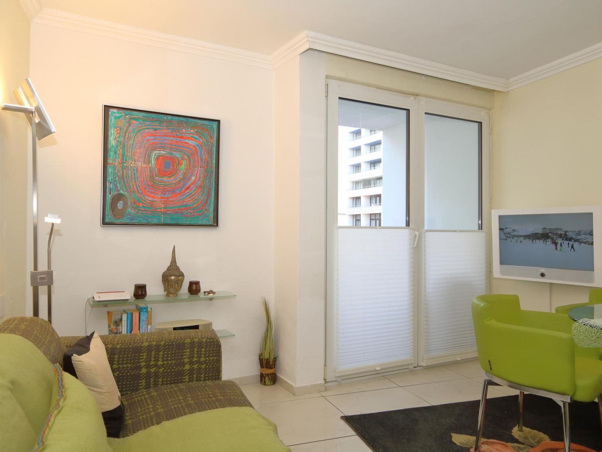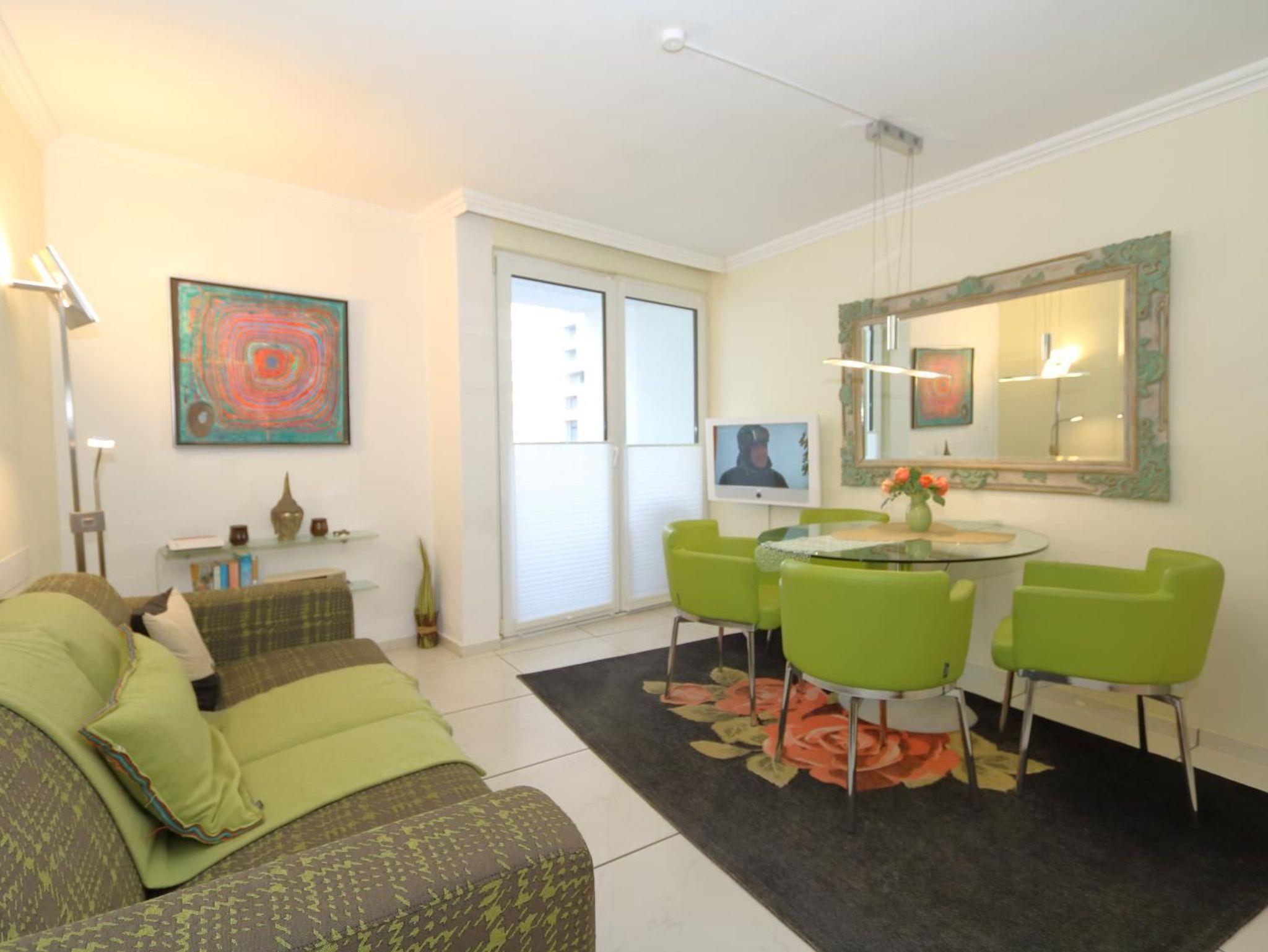 Ein moderner Einrichtungsstiel in hellen Farben erwartet Sie. Wohnzimmer mit bequemer Sitzgarnitur und gemütlichem Esstisch. Flachbildschirm und Radio sowie kostenloser Internet-Zugang über WLAN.