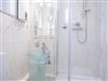 Tageslicht-Badezimmer mit Dusche, WC, Waschtisch.