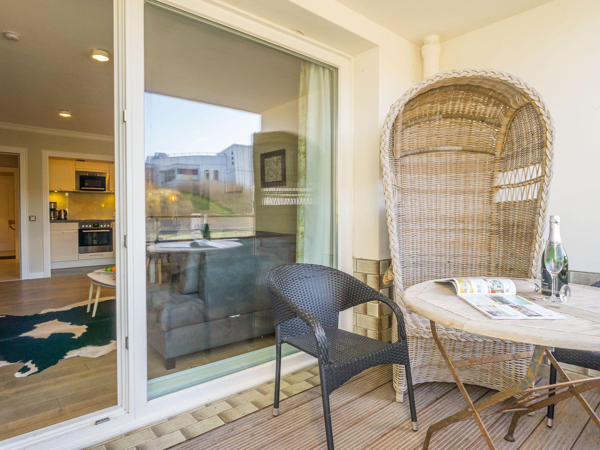 Geschmackvoll eingerichtete, komplett mit Laminat ausgelegte 2-Zimmer-Nichtraucher-Ferienwohnung (ca. 54 qm) im Hochparterre zur Seeseite mit Westloggia (Nachmittagssonne, mit Balkonmöbeln und Auflagen) für max. 4 Personen.