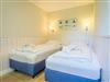 Das Schlafzimmer hat 2 Einzelbetten, die auch zusammen geschoben werden können.