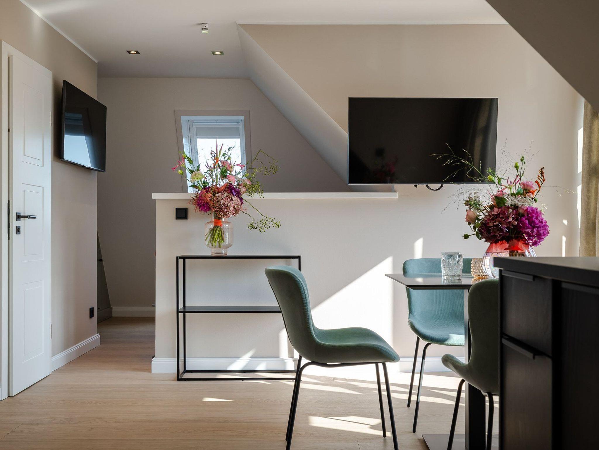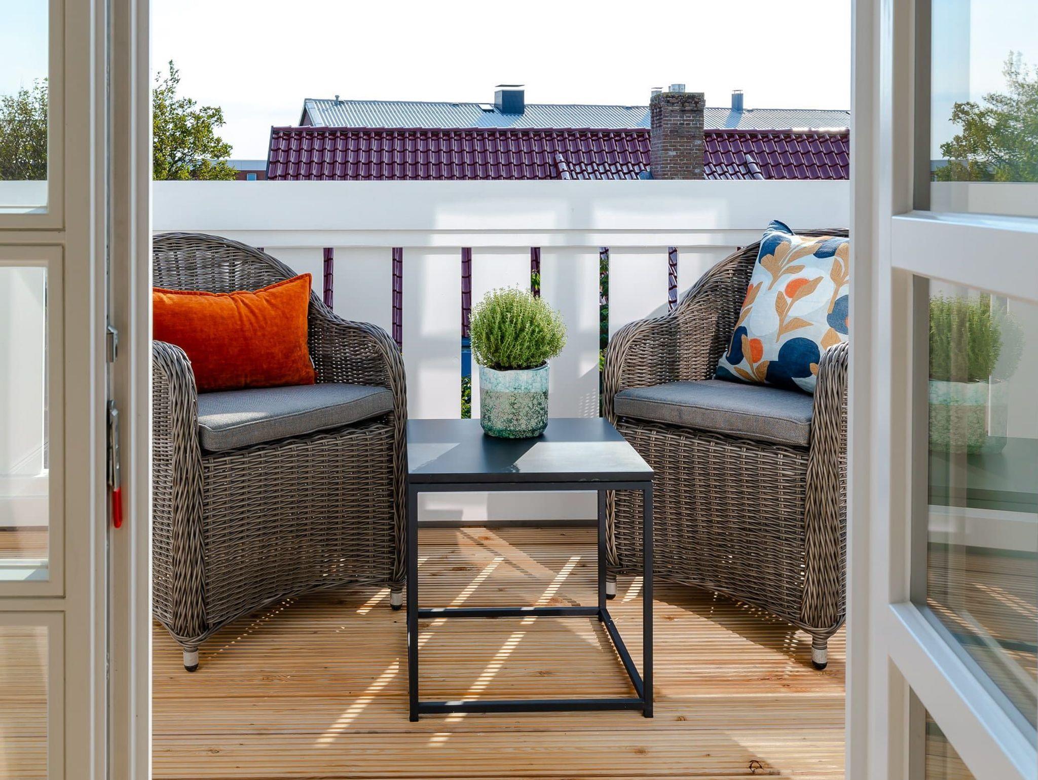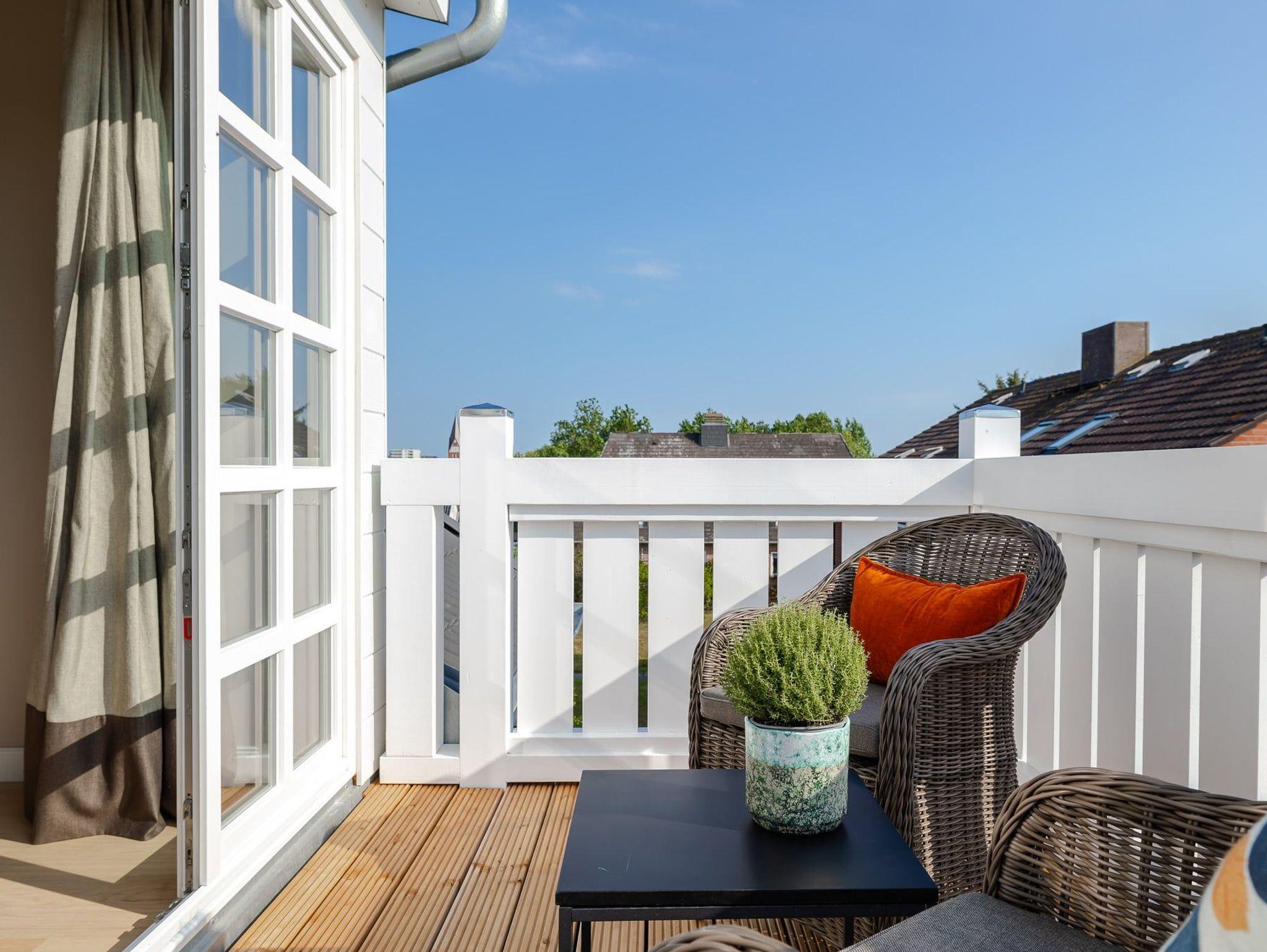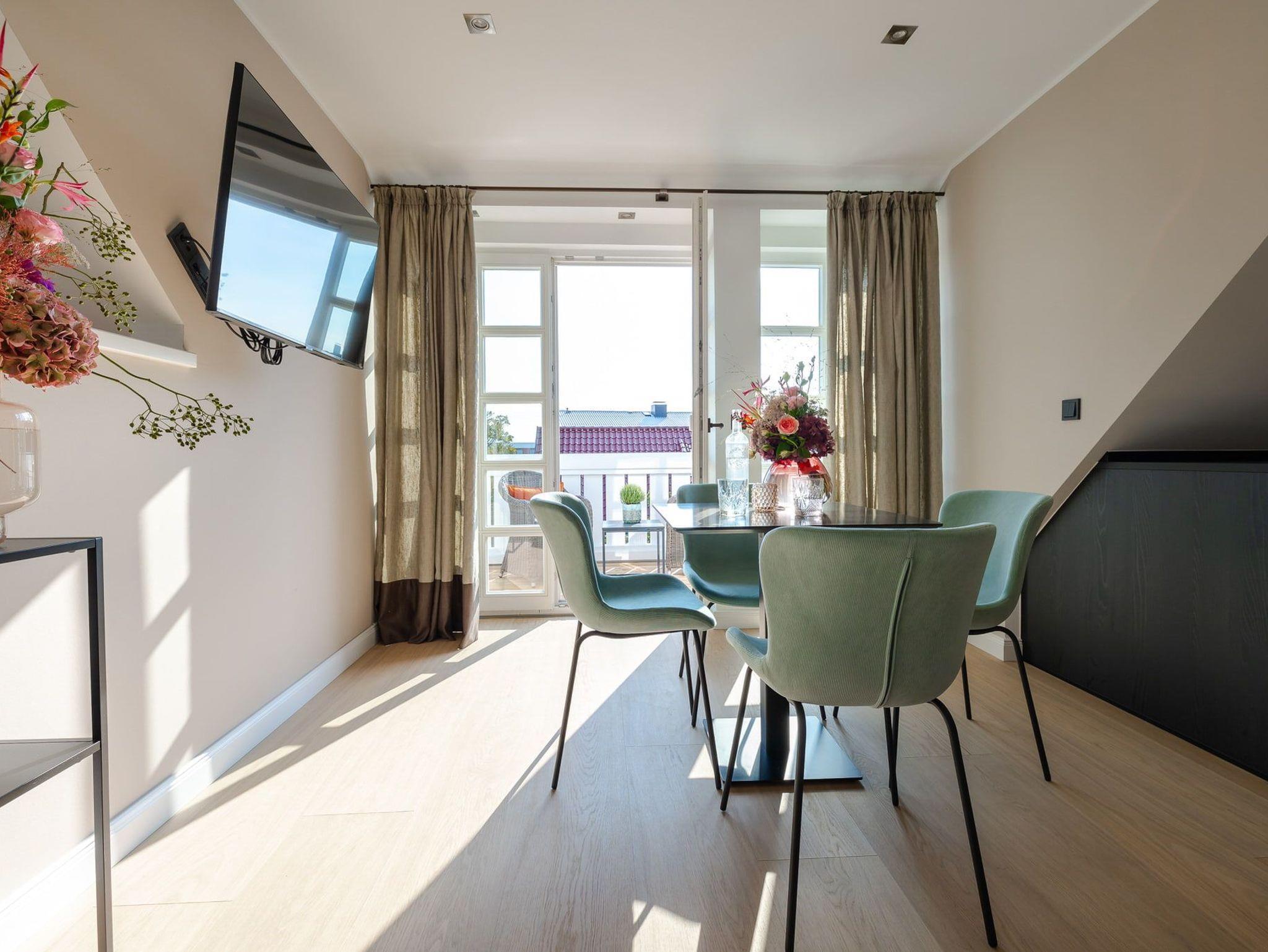 Die 3-Zimmer Maisonette Ferienwohnung ist eine kleine Wohlfühl-Oase für sich: hohe Decken, lichtdurchflutete Räume und eine stylische, moderne Ausstattung lässt Ihren Aufenthalt zu etwas ganz Besonderem werden. Der geräumige Wohn-Essbereich ist mit einem Schlafsofa ausgestattet und bietet Zugang zum Balkon in Richtung Osten der Insel. Unser Tipp: Gönnen Sie sich Ihren Kaffee am Morgen im Lichte des Sonnenaufgangs.