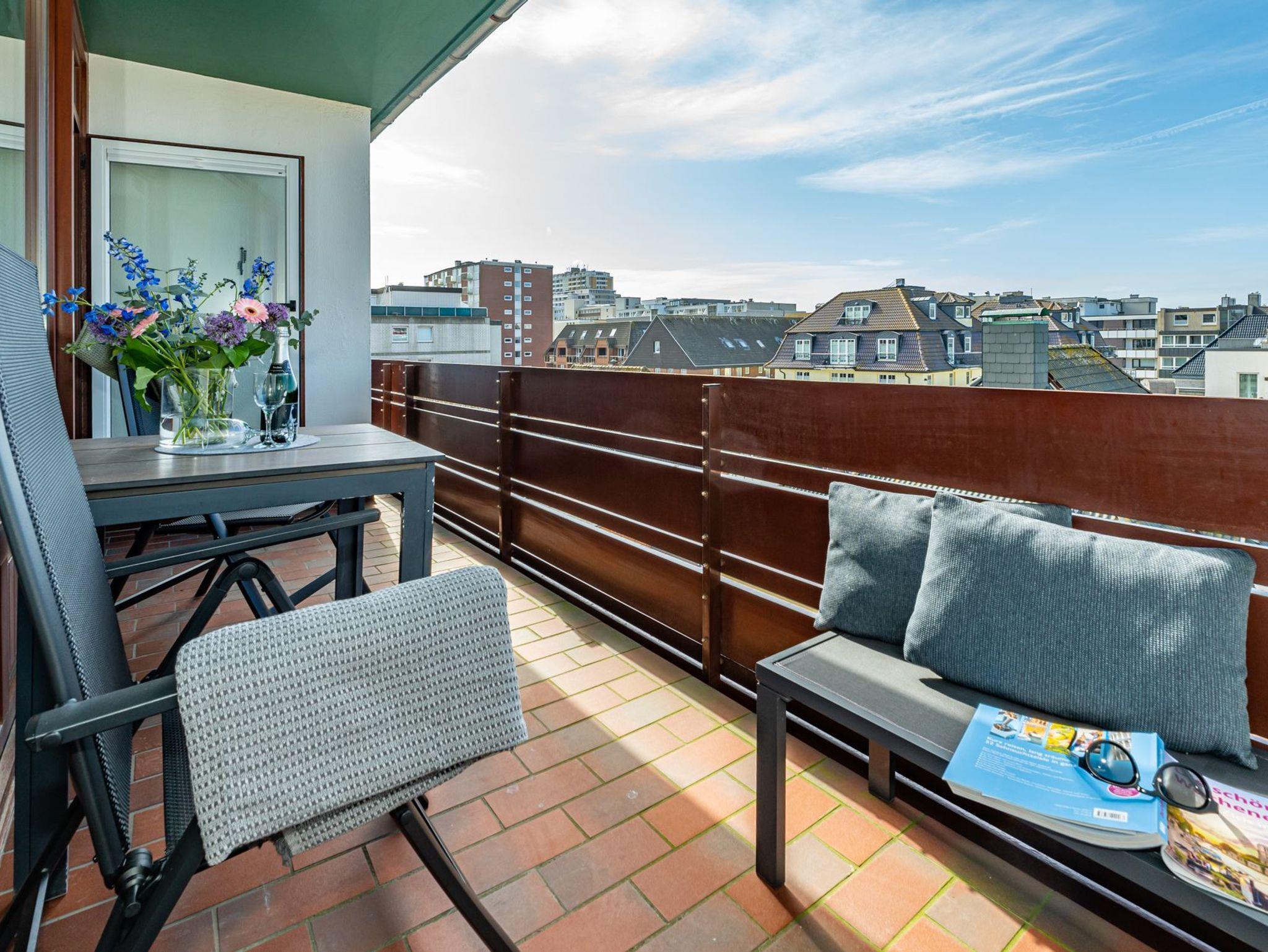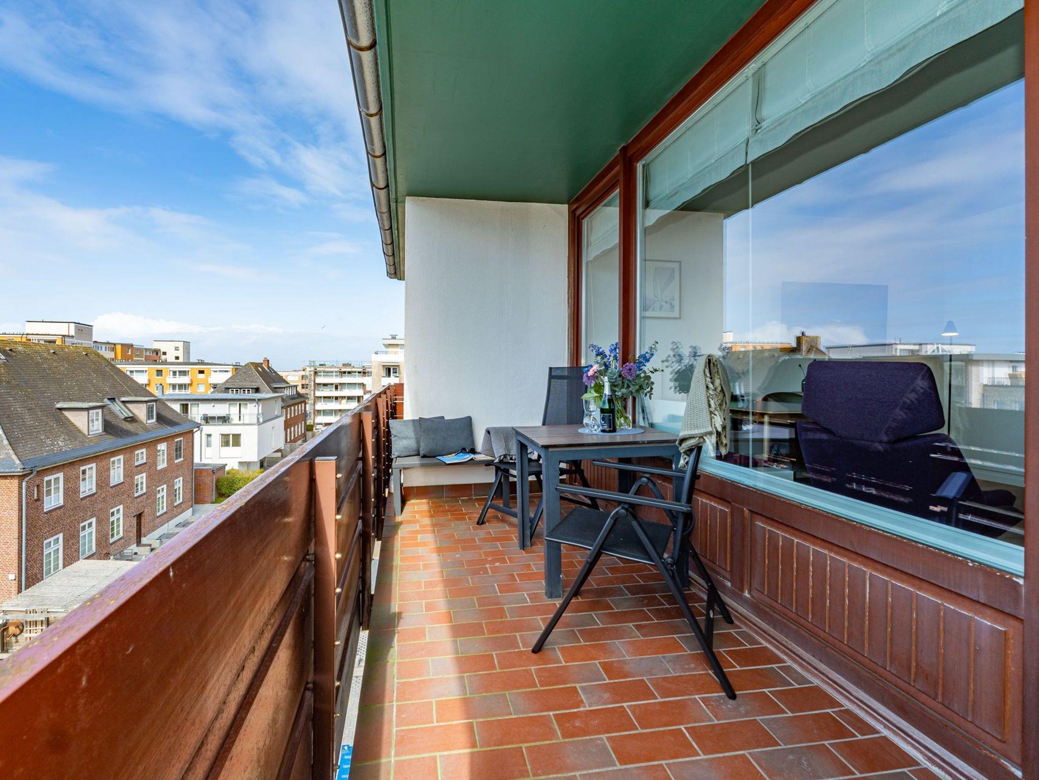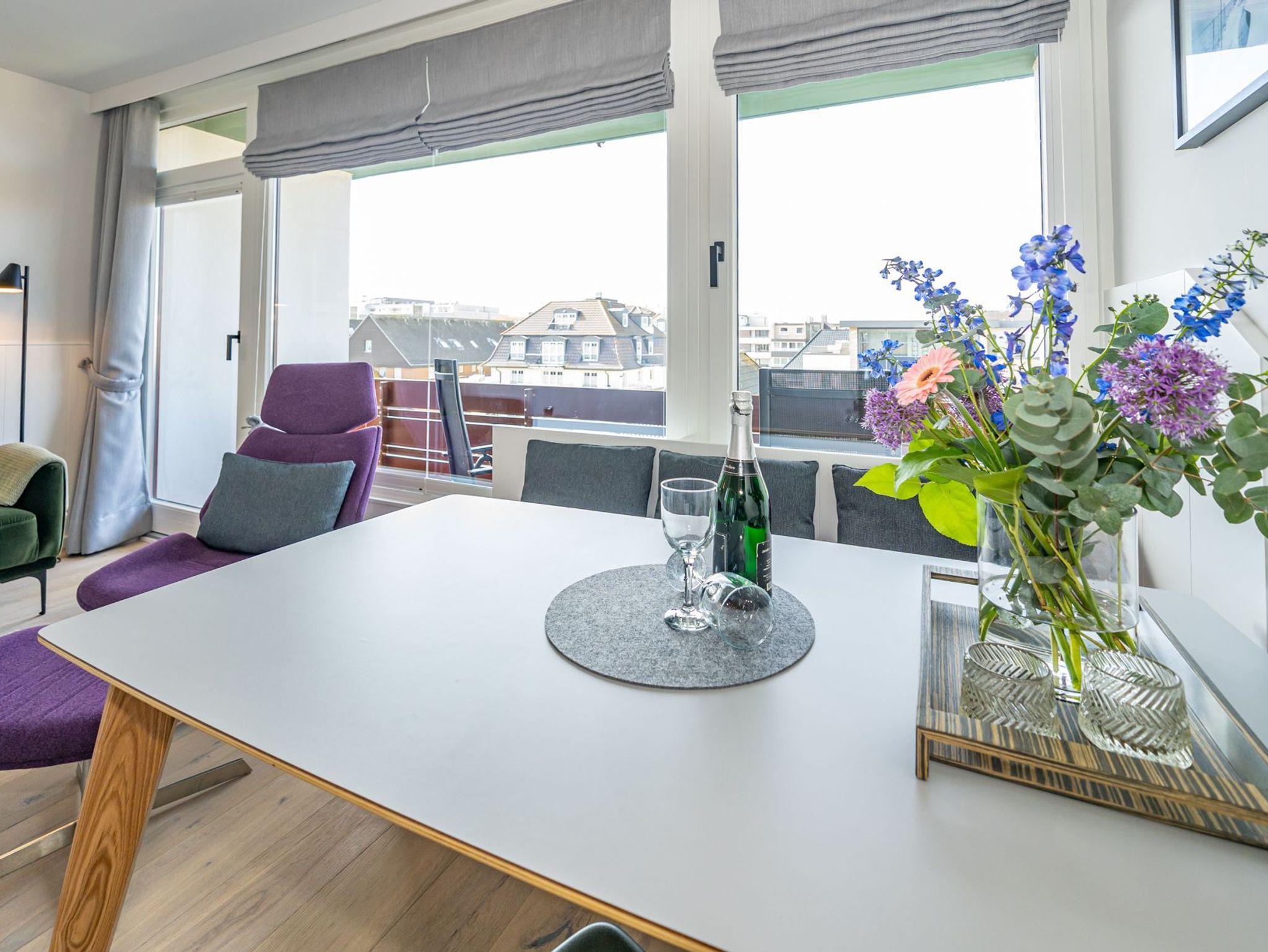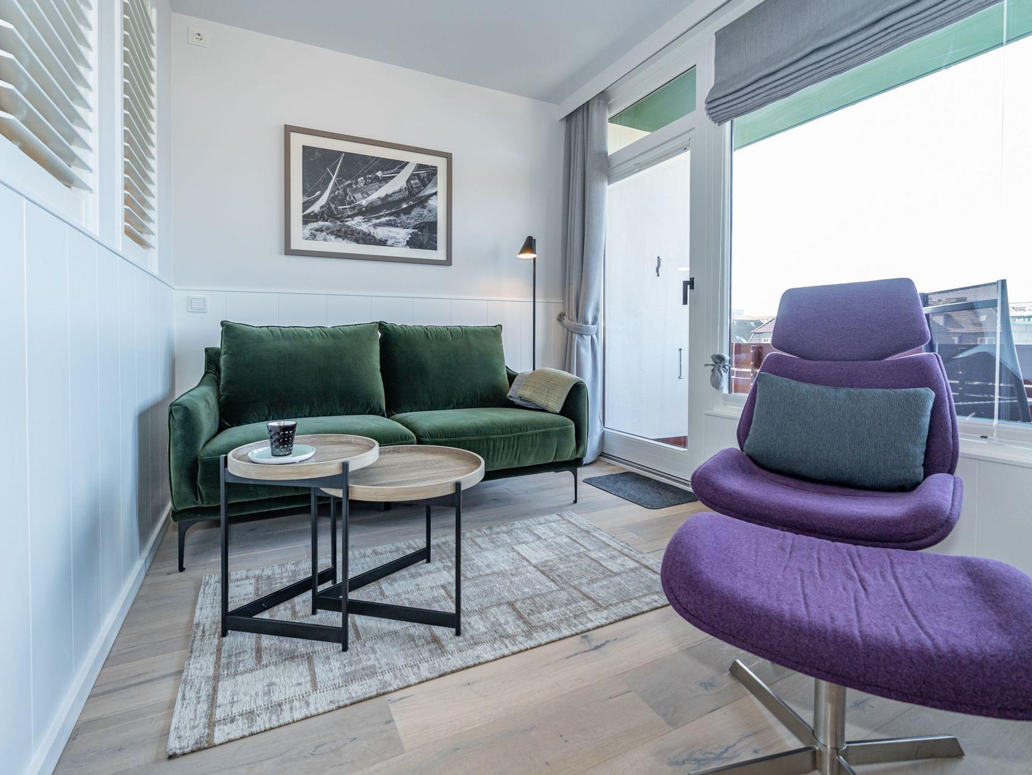 Die geschmackvoll ausgestattete 1-Zimmer-Nichtraucher-Ferienwohnung (ca. 36 qm) in der 3. Etage mit Westloggia (mit Balkonmöbeln und Auflagen) bietet höchsten Komfort auf kleinem Raum für max. 2 Personen.