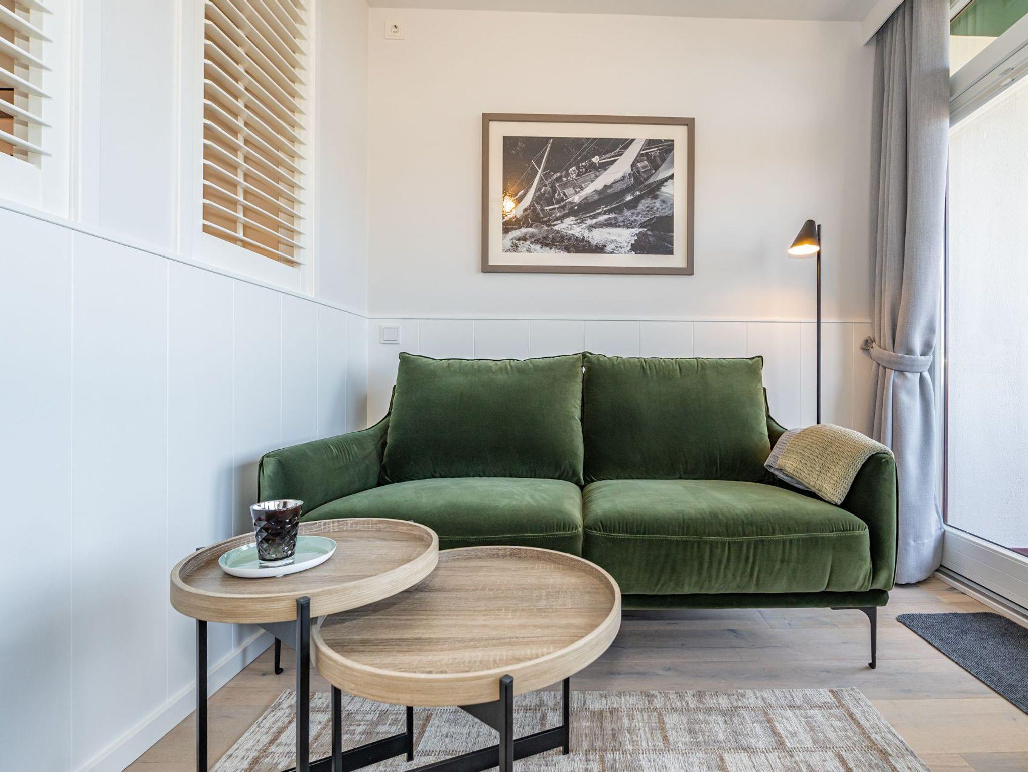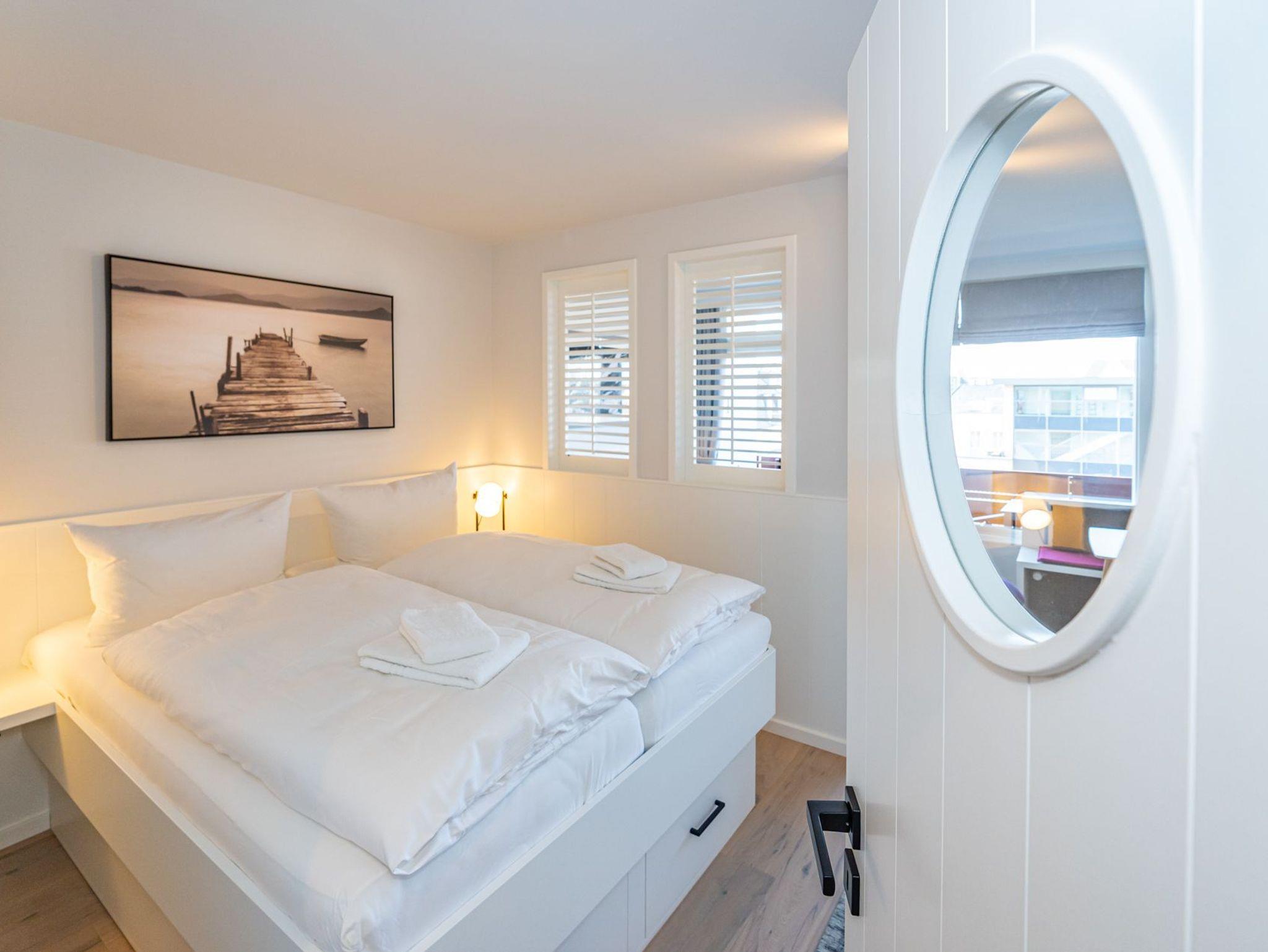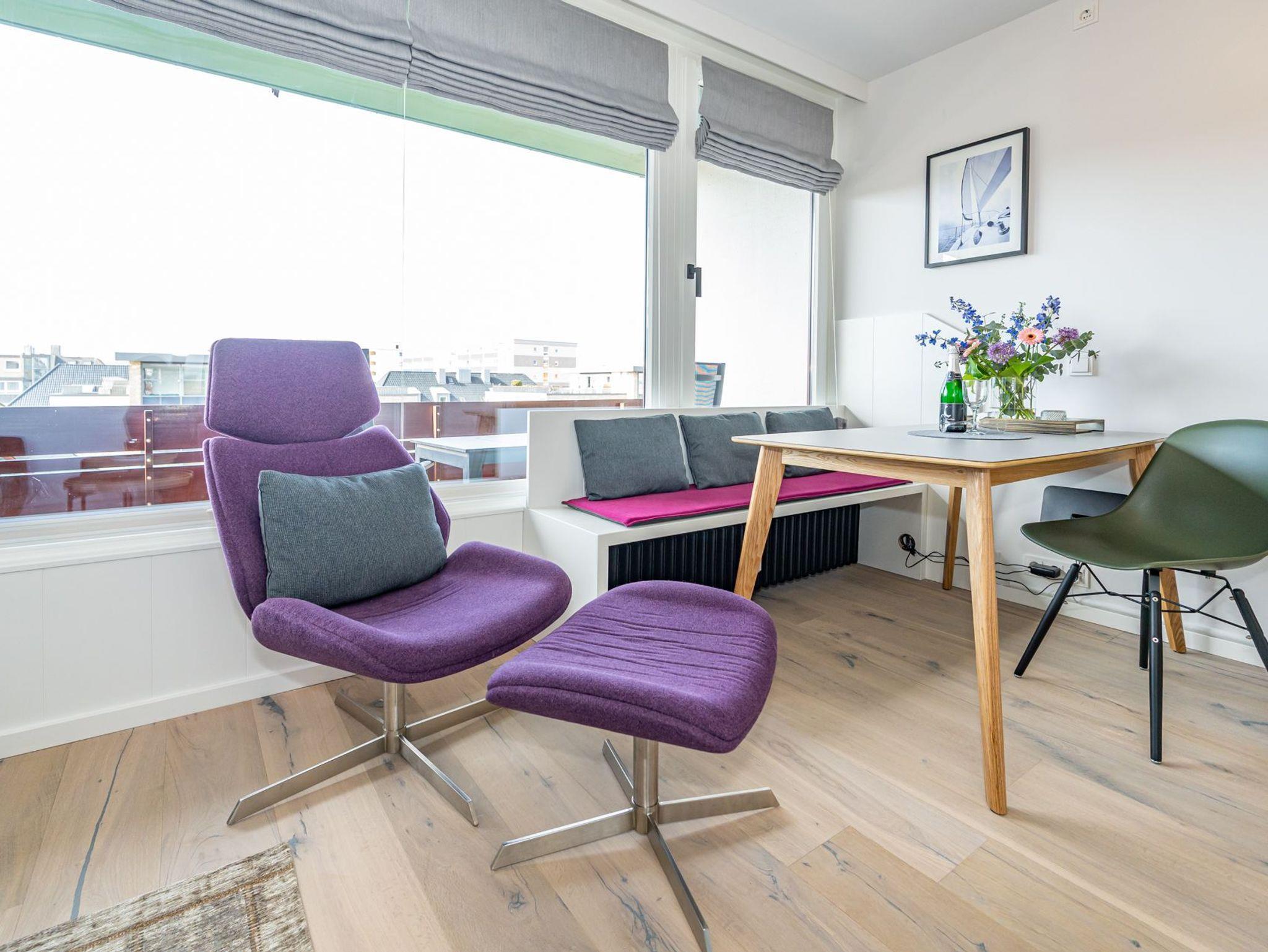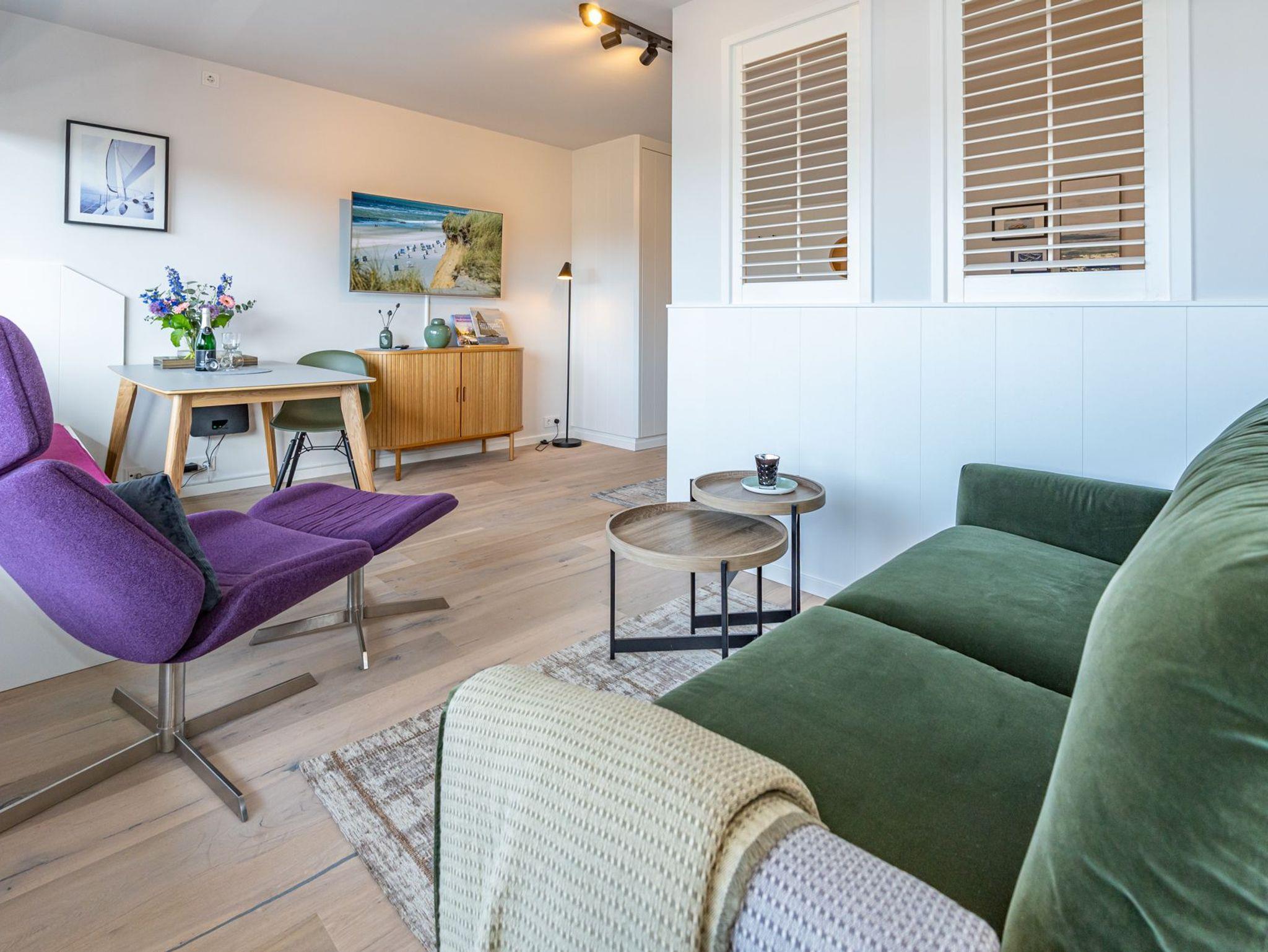 Die geschmackvoll ausgestattete 1-Zimmer-Nichtraucher-Ferienwohnung (ca. 36 qm) in der 3. Etage mit Westloggia (mit Balkonmöbeln und Auflagen) bietet höchsten Komfort auf kleinem Raum für max. 2 Personen.