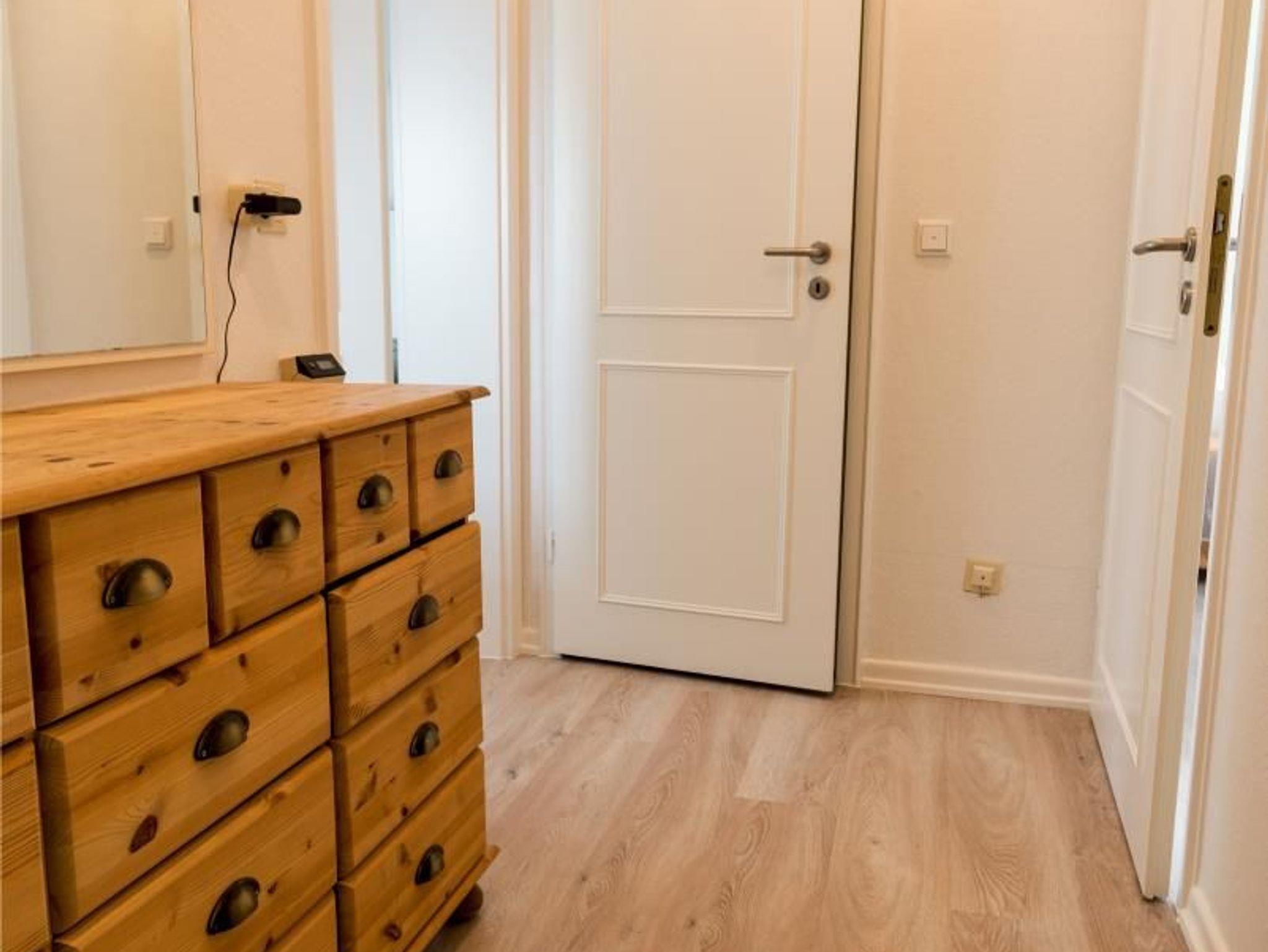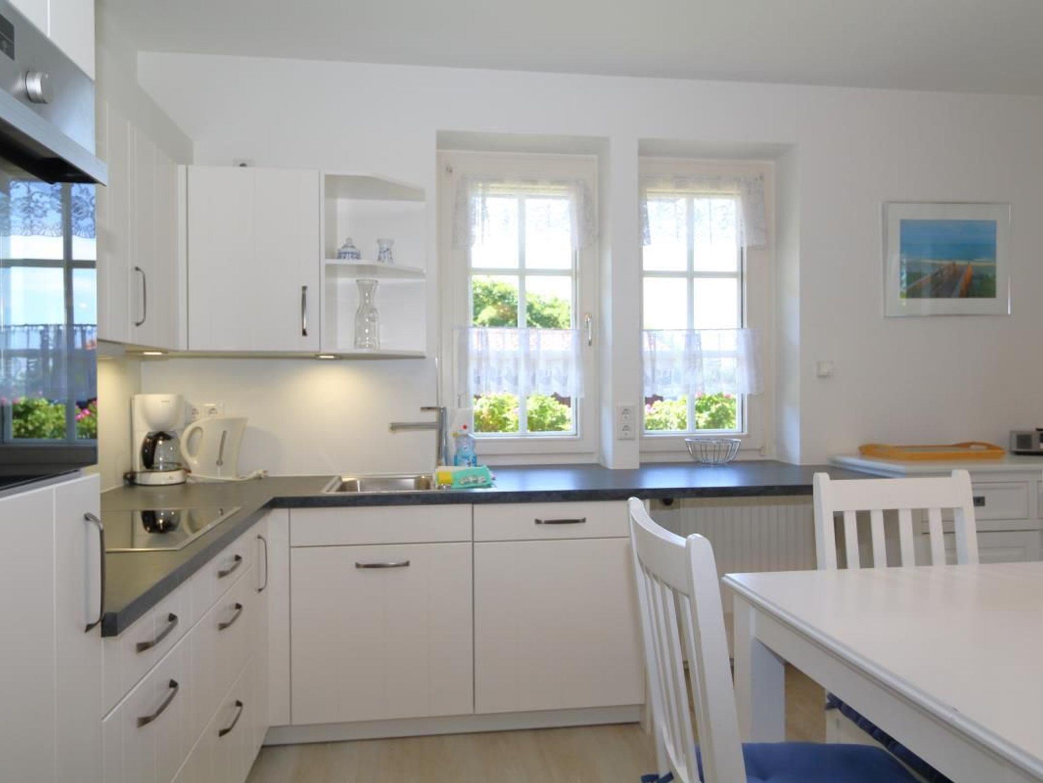 Die Ferienwohnung verfügt über eine große Terrasse Richtung Süden/Westen und über einen Garten. Ein Strandkorb steht zur Verfügung.Der gesamte Soutterrain-Bereich verfügt über Fenster