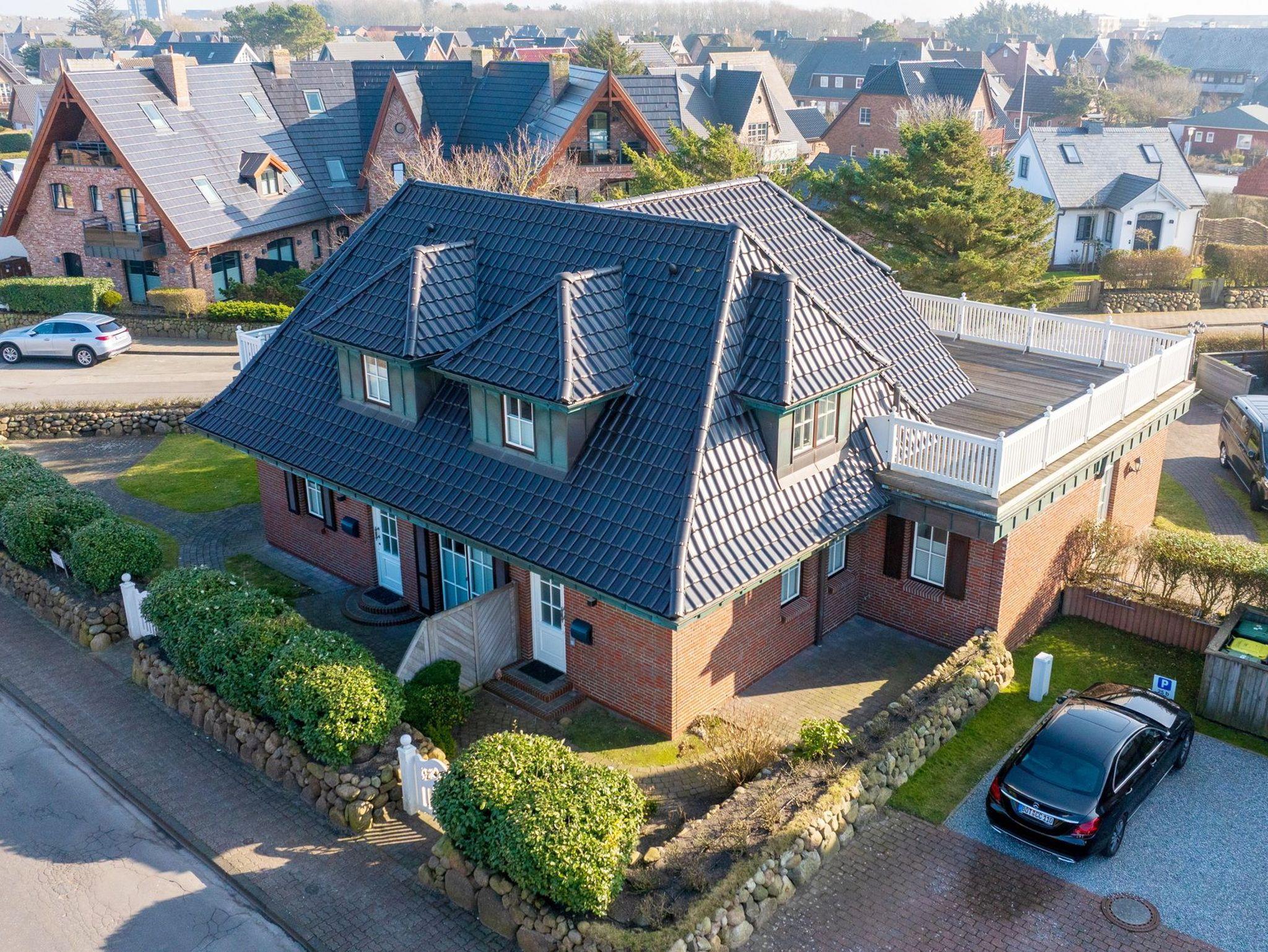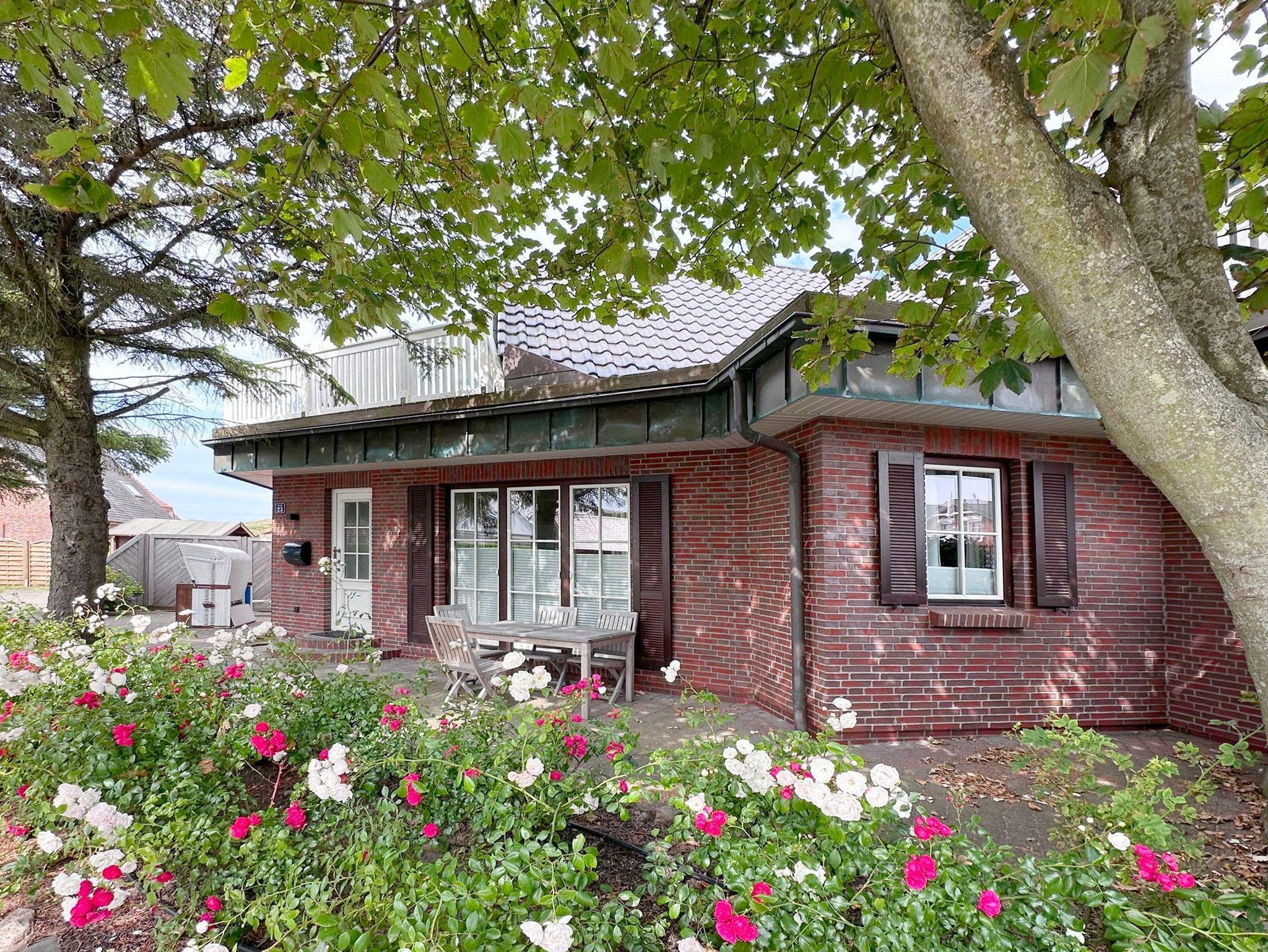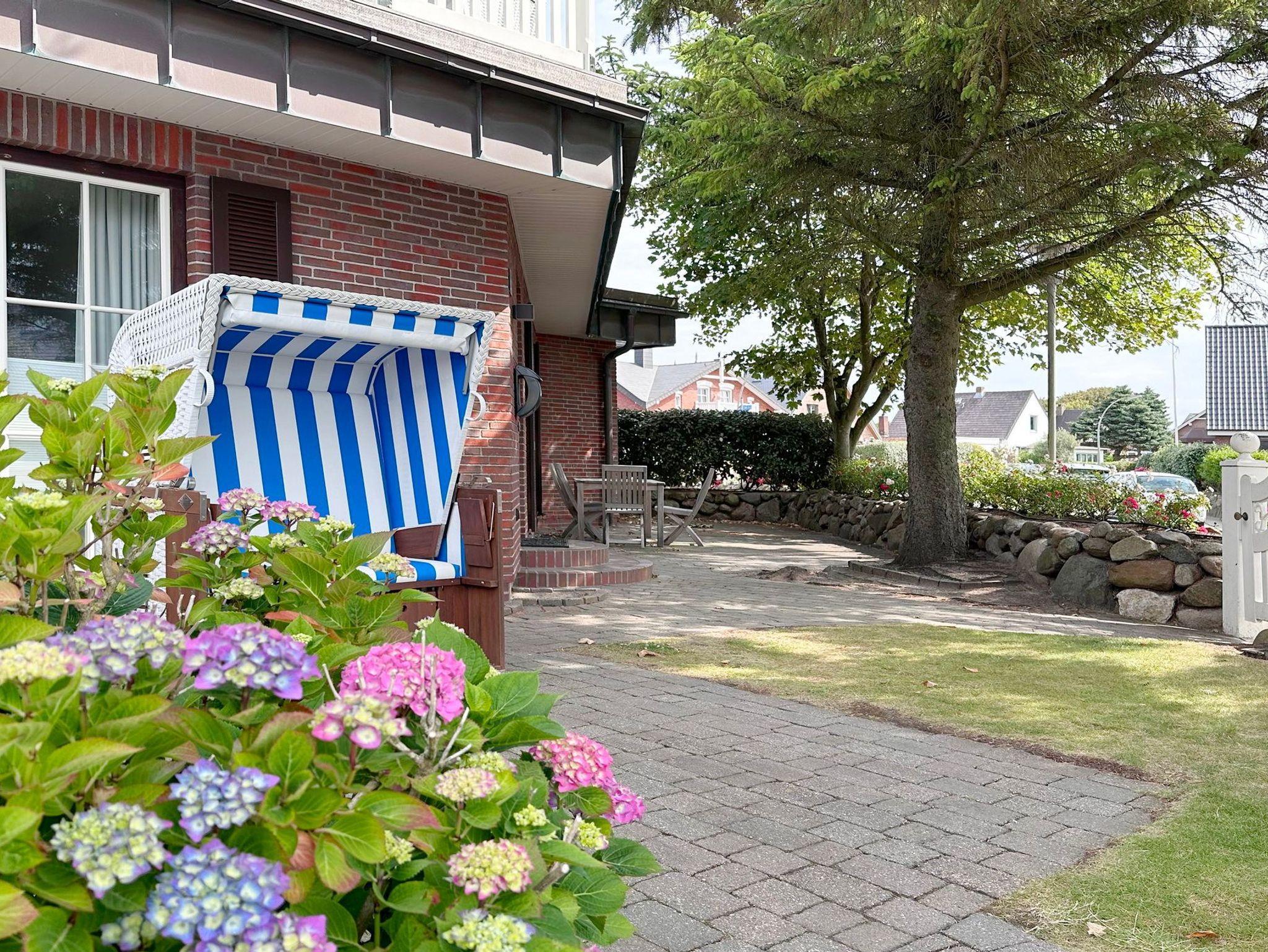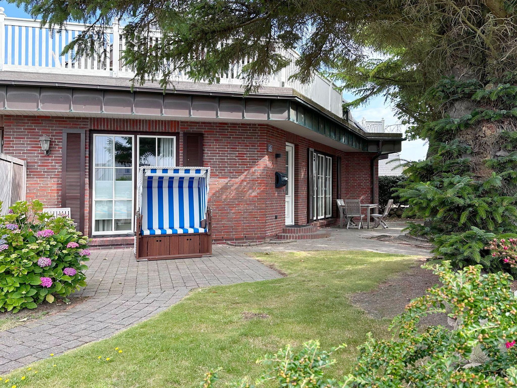 Zum Haus gehören 2 sonnige Terrassen mit Gartenanteil. Hier laden Teakholzmöbel und ein Strandkorb zum Entspannen ein. Ein Parkplatz befindet sich direkt auf dem Grundstück.