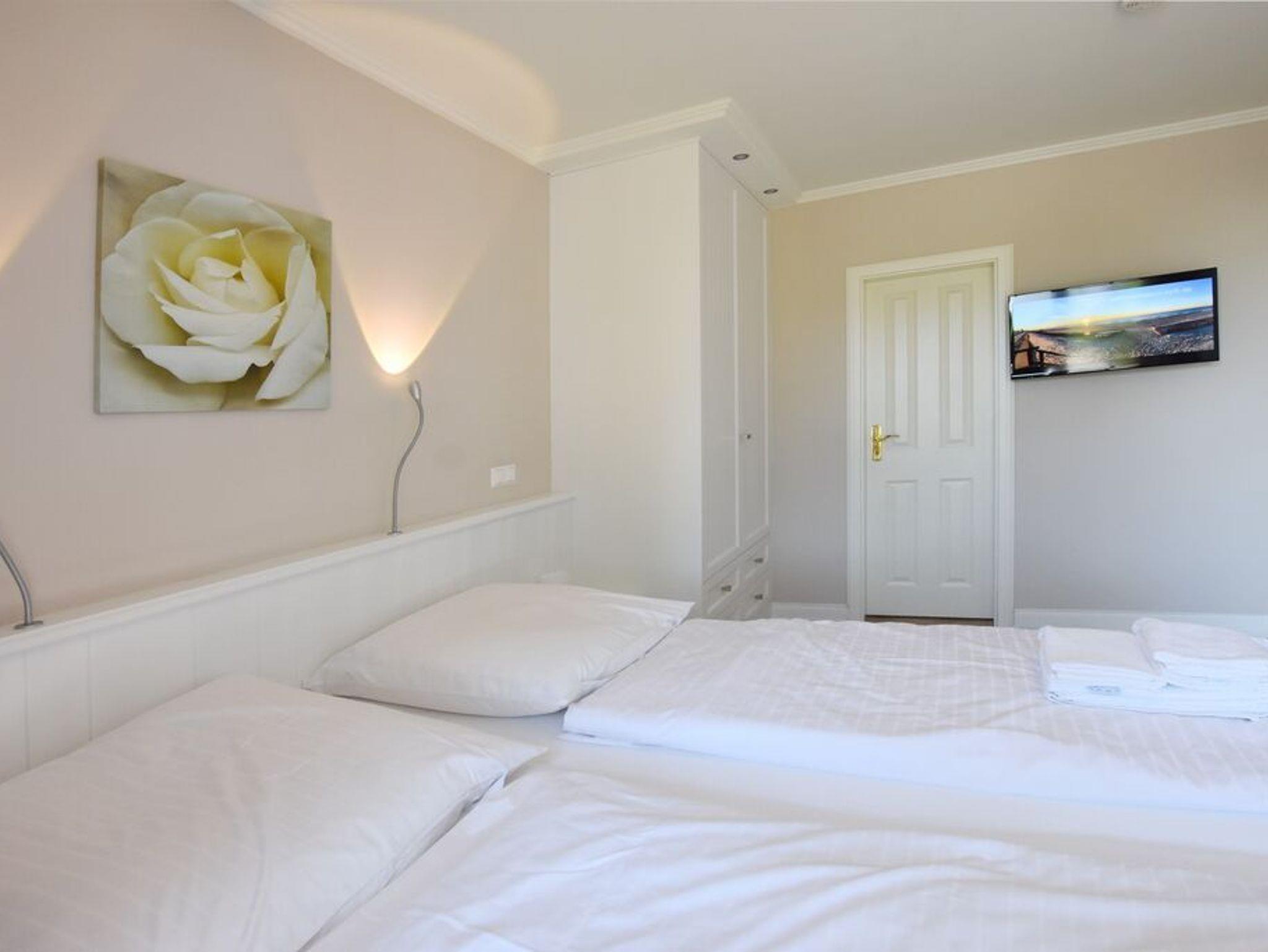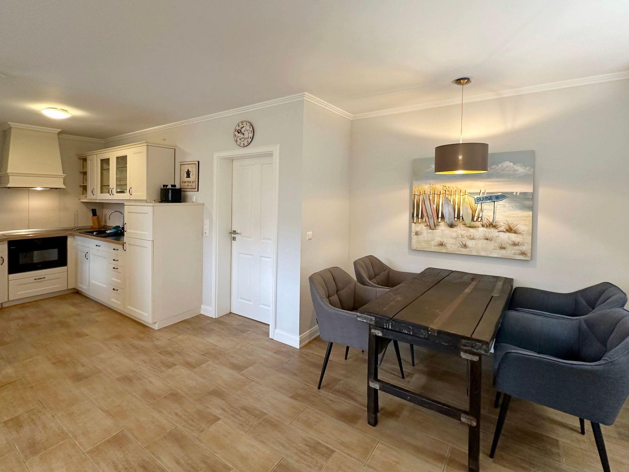 Wohnzimmer mit integriertem Eß- und Küchenbereich und Smart-TV. Die modernen Bäder sind direkt von den Schlafzimmern aus erreichbar - optimal für Ihre Privatsphäre. In den Schlafzimmern( Doppelbetten ) mit hochwertigen Tischlereinbauten stehen zusätzlich Smart-TV zur Verfügung.