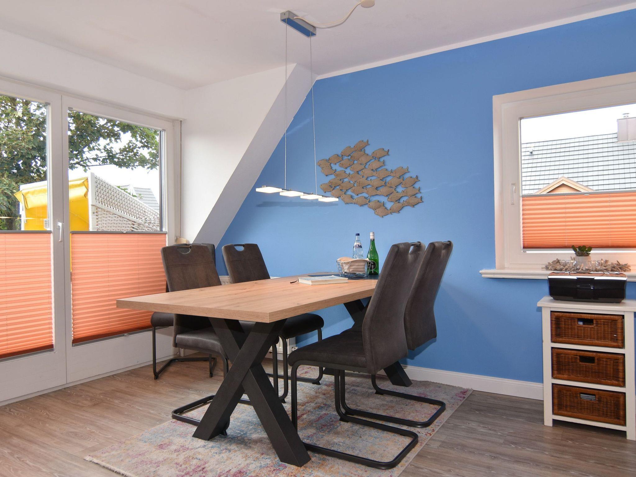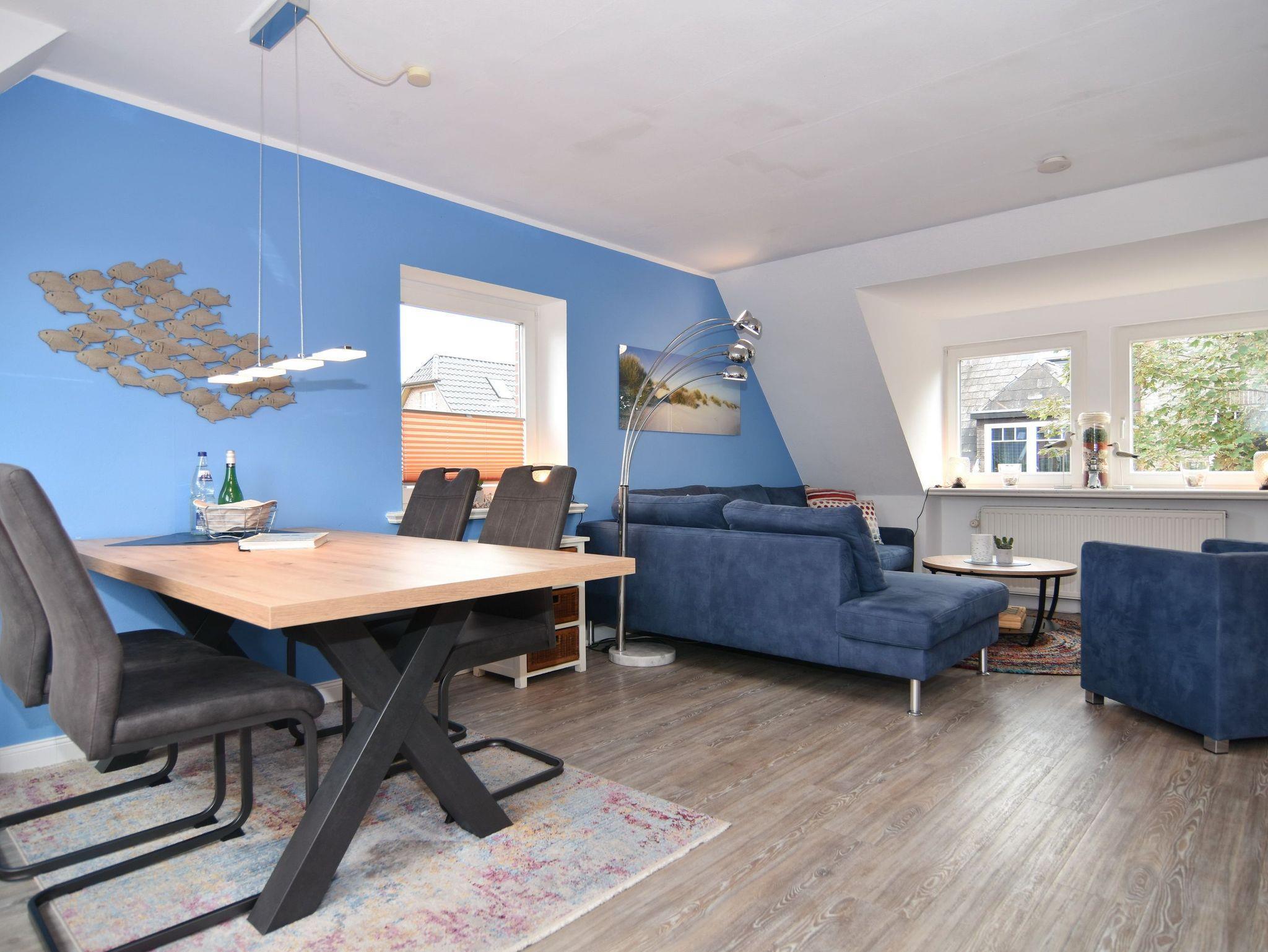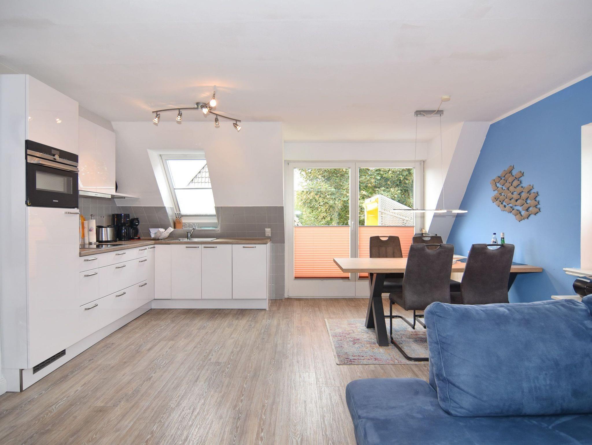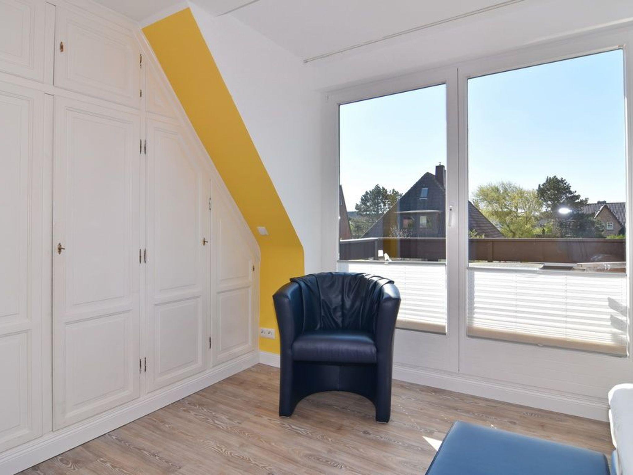 Diese großzügige 3-Zimmer-Wohnung bietet Ihnen und Ihrer Familie und Freunden viel Platz auf einer Ebene. Die Wohnung befindet sich im gesamten Obergeschoss eines Einfamilienhauses im Süden von Westerland. Die Wohnung verfügt über einen geräumigen Wohnbereich mit offener Küche und Westbalkon, den man im Sommer herrlich als erweiterten Essplatz nutzen kann. TV, Stereoanlage, DVD-Player und WLAN (ohne Gewähr) sind vorhanden. Vom großen Wohnungsflur aus gelangen Sie in ein Bad mit Dusche, Sauna und Waschbecken, ein separates WC sowie zu 2 Schlafzimmern. Das große Schlafzimmer mit Doppelbett, begehbarem Kleiderschrank, TV und Südbalkon verfügt über ein eigenes Badezimmer mit Wanne (mit Duschvorrichtung) und Waschmaschine. Das zweite Schlafzimmer kann mit 3 Personen belegt werden - hier stehen Ihnen 2 Einzelbetten, die man auch zusammenschieben kann, sowie eine Schlafcouch zur Verfügung. Ein TV befindet sich hier ebenfalls, so dass man sich in diesen Raum auch mal tagsüber zurückziehen kann. Bettwäsche und Handtücher sind zur Anreise aufgezogen. Im Garten befindet sich ein Sitzplatz und eine Spielecke für Kinder. Fahrräder und Auto können problemlos auf dem Grundstück geparkt und abgestellt werden.