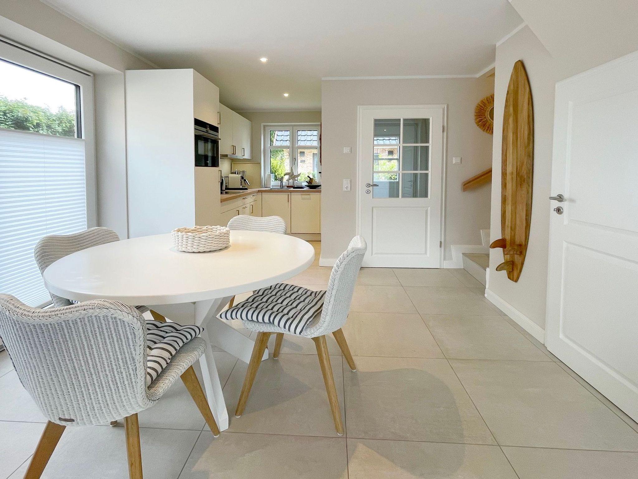 Exklusives Reihenendhaus in ruhiger Lage an der Ortgrenze zu Westerland. Das Ferienhaus wurde 2022 fertig gestellt und wurde im modernen Beach-House Style eingerichtet. Tischlerarbeiten in den Schlafzimmern und weitere Einrichtungsdetails runden das positive Gesamtbild ab.