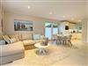 EG: Modernes Wohnzimmer mit offener Küche und Zugang zu 2 Terrassen. Gäste-WC