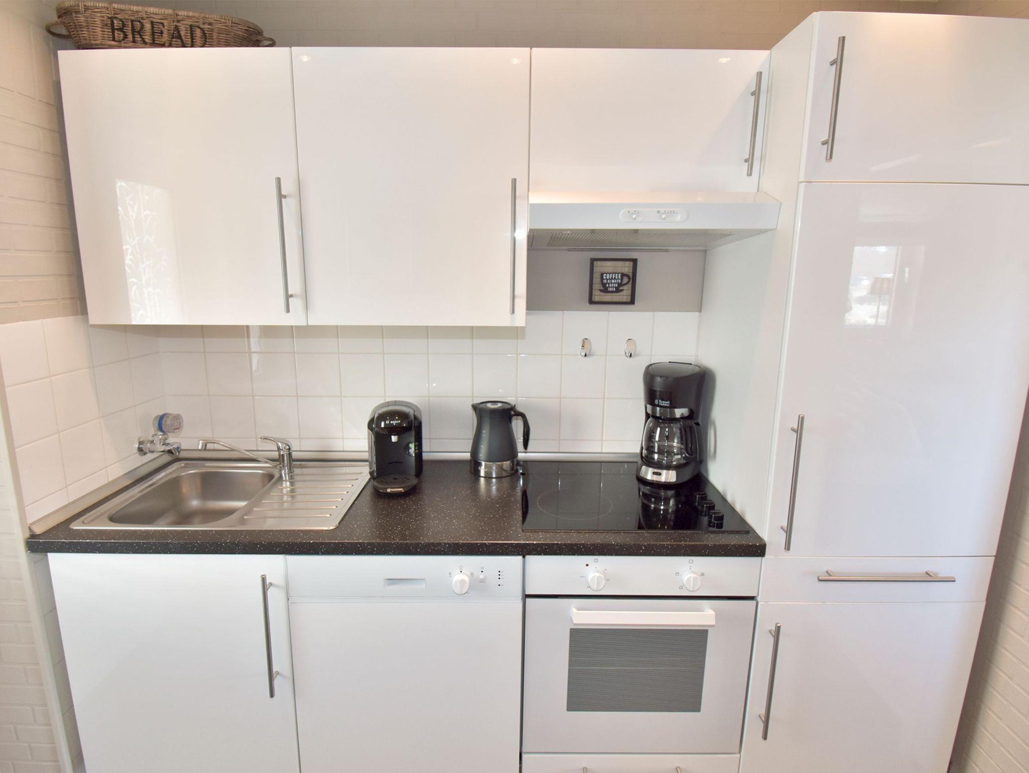 Die neue, gut ausgestattete Küchenzeile hat einen Geschirrspüler, ein 4-Platten-Ceranfeld mit Backofen und einen Kühlschrank mit 3-Sterne-Gefrierfach.