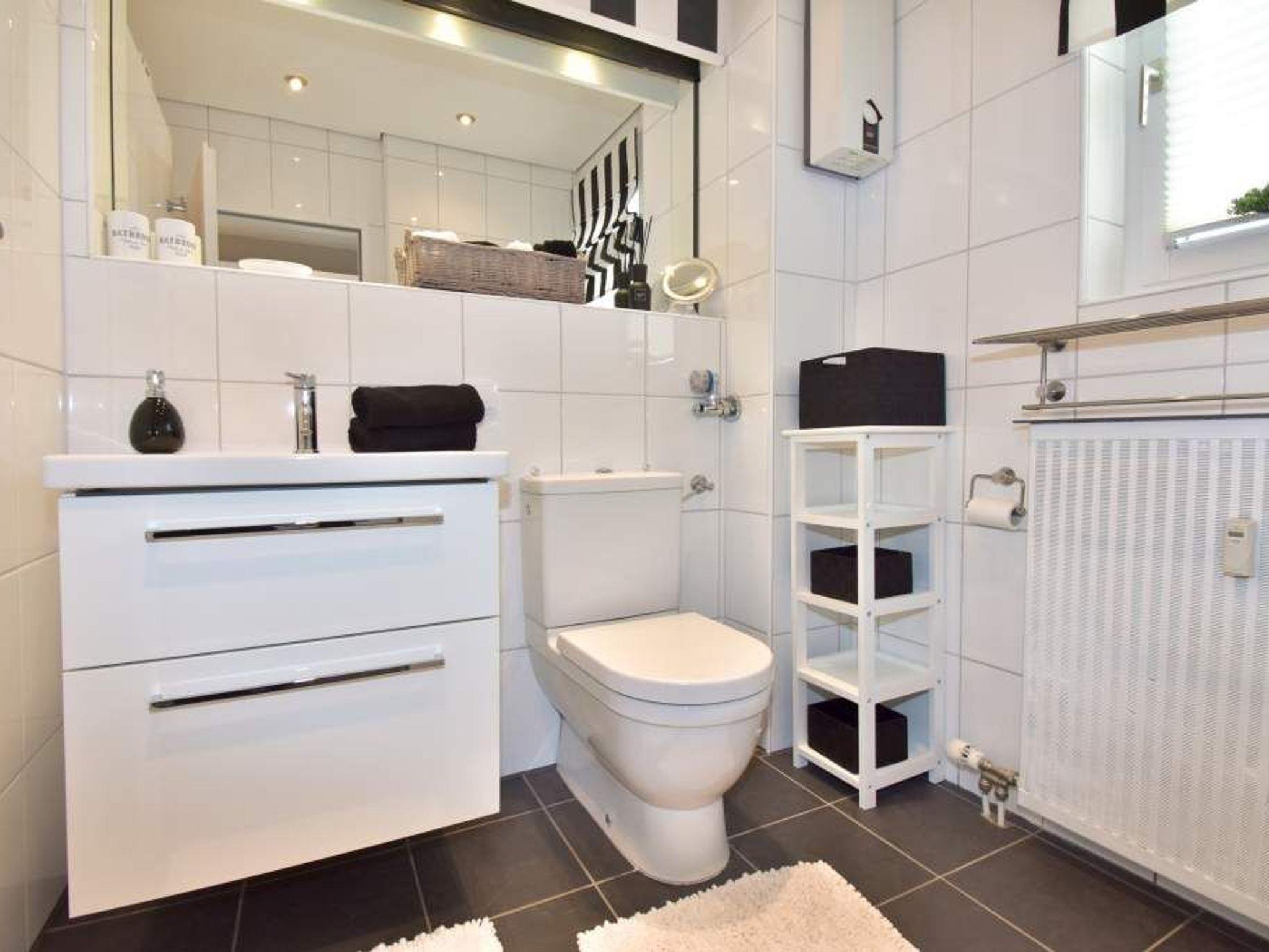 Das moderne und neue Duschbad/WC mit Fenster ist perfekt für einen Start in einen entspannten Urlaubstag.