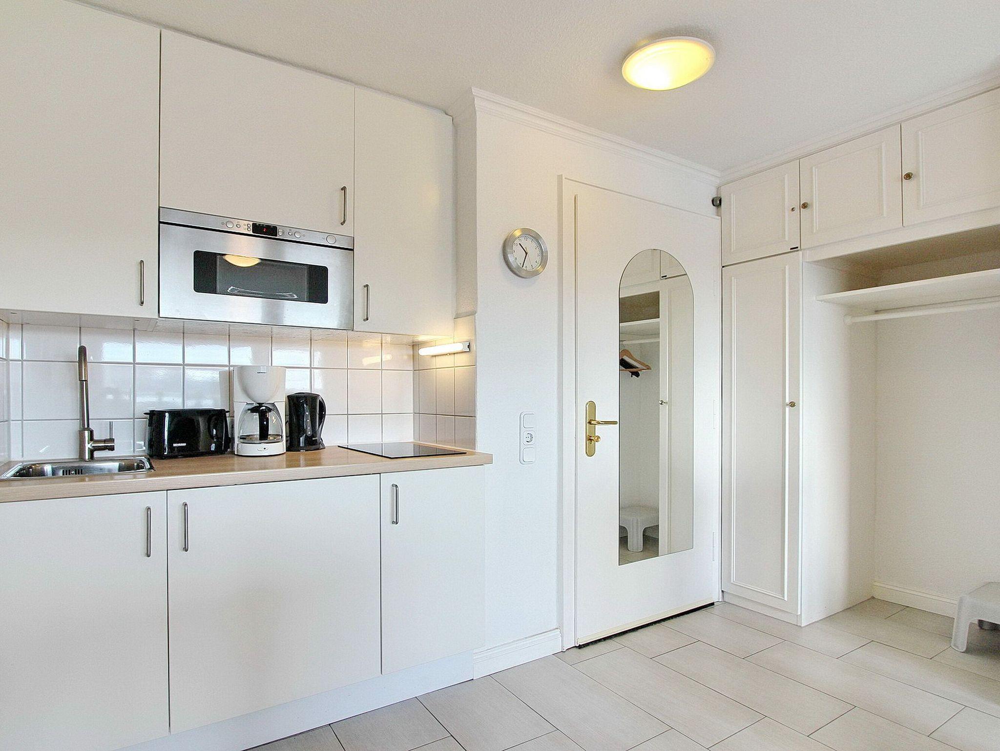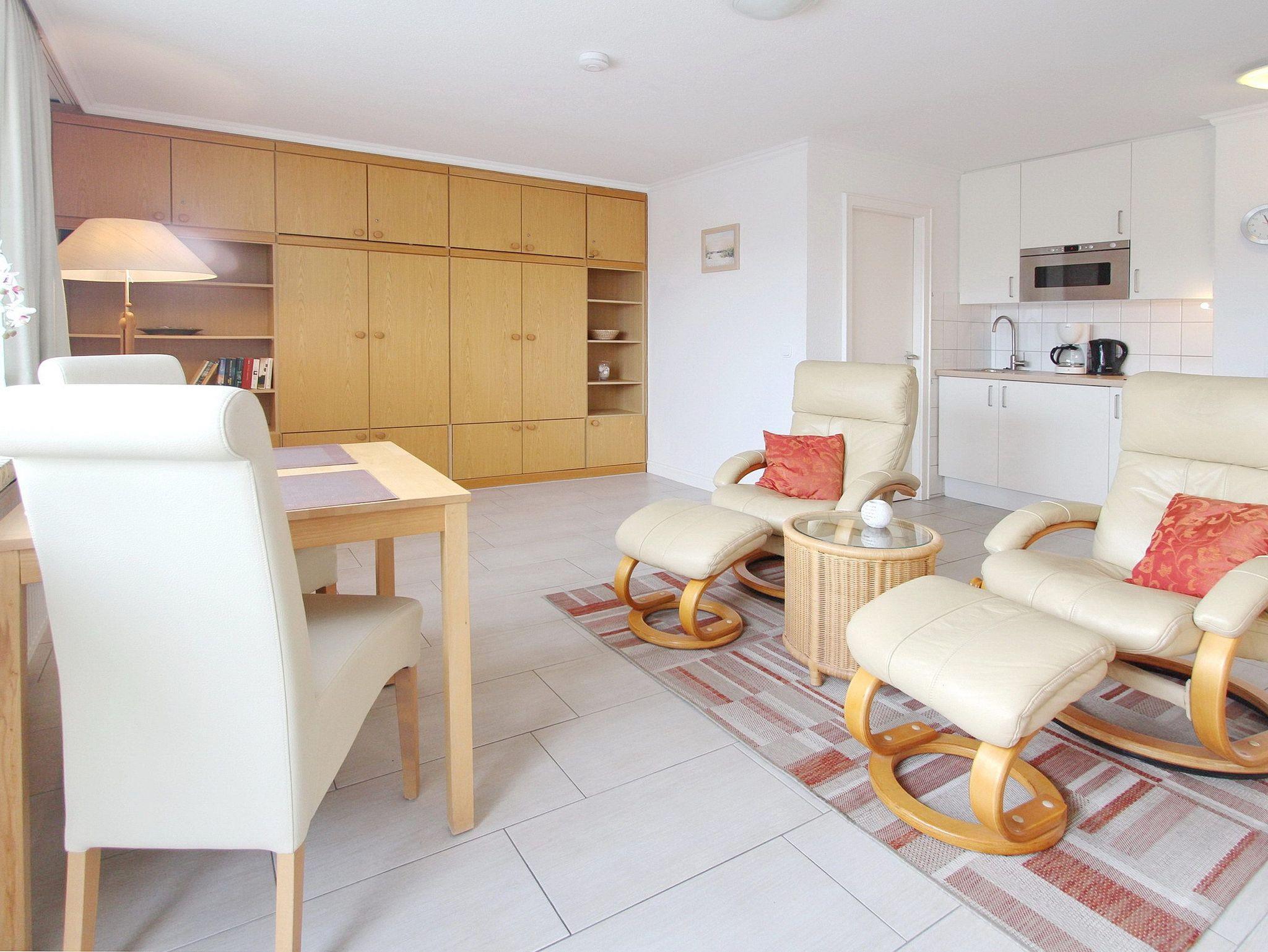 Sehr schöne Ferienwohnung mit vorgelagertem Balkon zur Ostseite mit einem tollen Blick in die City. Der kombinierte Wohn-/Schlafraum ist mit 2 Einzelschrankbetten, einem Essplatz am Fenster und 2 sehr gemütlichen Stressless-Sesseln mit Hocker und einer offenen Küche mit Mikrowelle und Cerankochfeld ausgestattet. Das Badezimmer verfügt über eine Badewanne und einem Handtuchtrockner. Zur technischen Ausstattung gehört ein Smart-TV und eine Musikanlage. Der freie Wlan-Hot Spot (WEG A-D-5 - Passwortfrei - ohne Gewähr) kann genutzt werden. Single-freundlich. Nichtraucherwohnung. Haustiere sind nicht gestattet. Wohnungsgröße ca. 35 m².