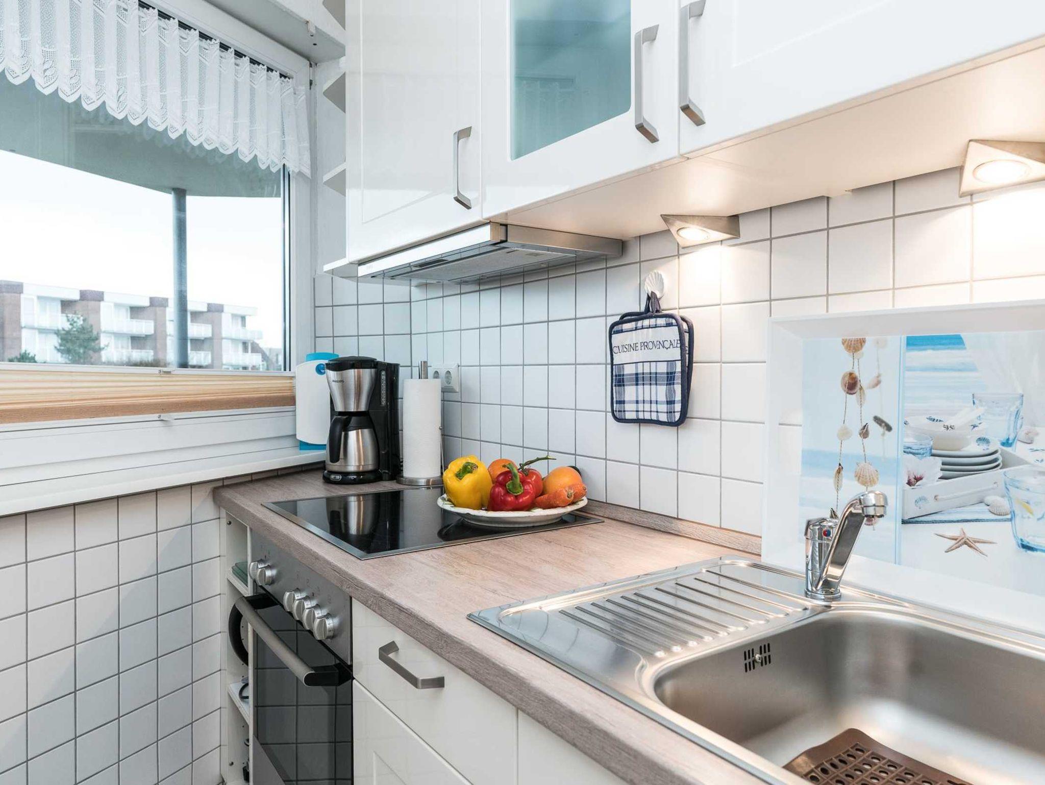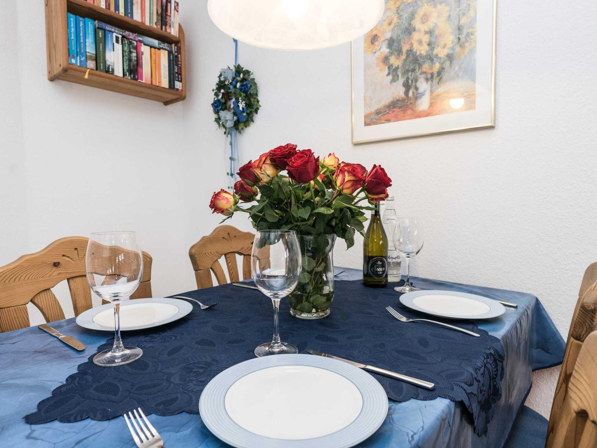 Die Unterkunft befindet sich im 1. OG und hat einen großen Balkon Richtung Südosten. Eine sehr schöne und gemütlich eingerichtete Ferienwohnung wartet auf Sie. Im Wohnzimmer finden sie eine bequeme Sitzecke mit einer Couchliege und Flachbildfernseher. Ein großzügiger Essplatz befindet sich ebenfalls im Wohnbereich. Das Schlafzimmer hält ein gemütliches Doppelbett für Sie bereit, zudem verfügt das Schlafzimmer ebenfalls über Kabel-TV. Wahrlich ein idealer Ausgangsort für traumhafte Ferien auf Sylt.