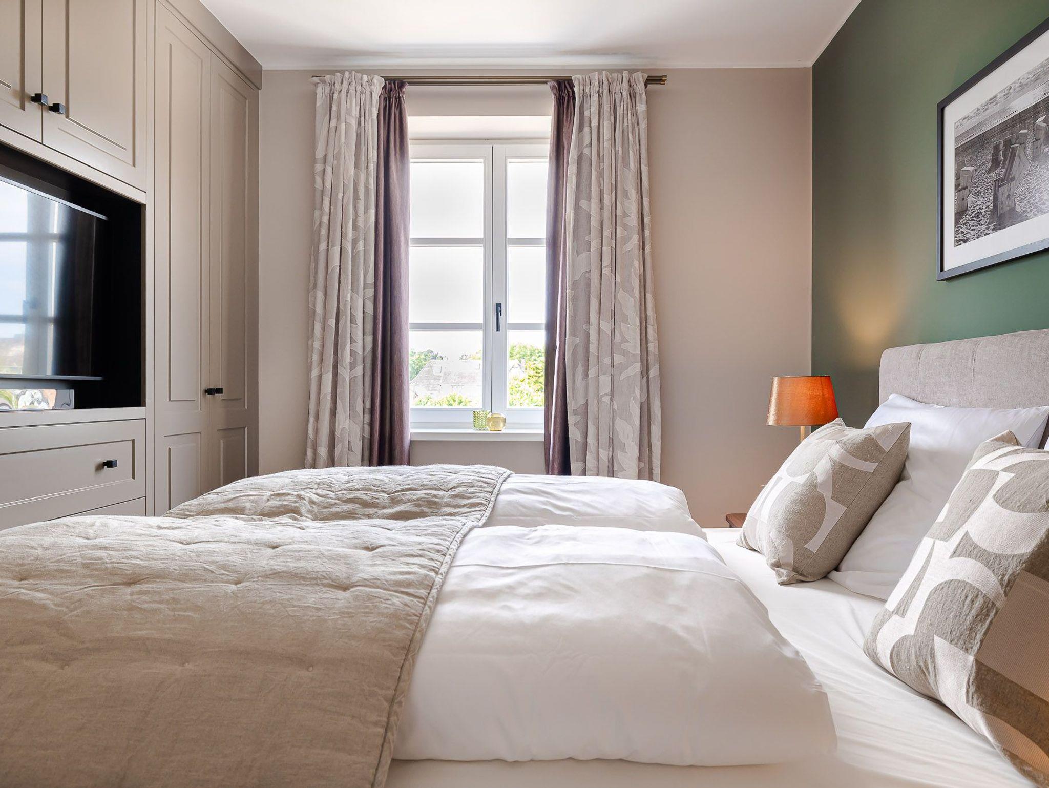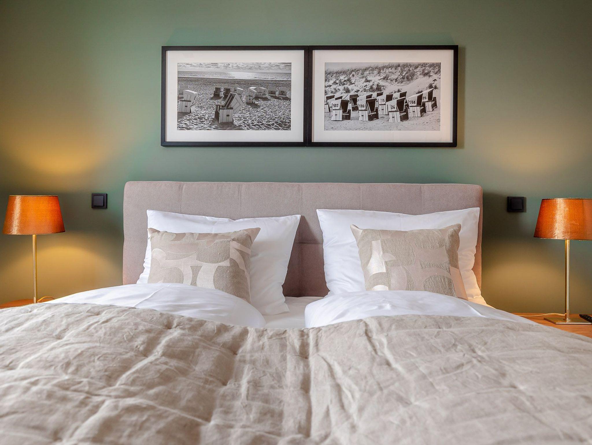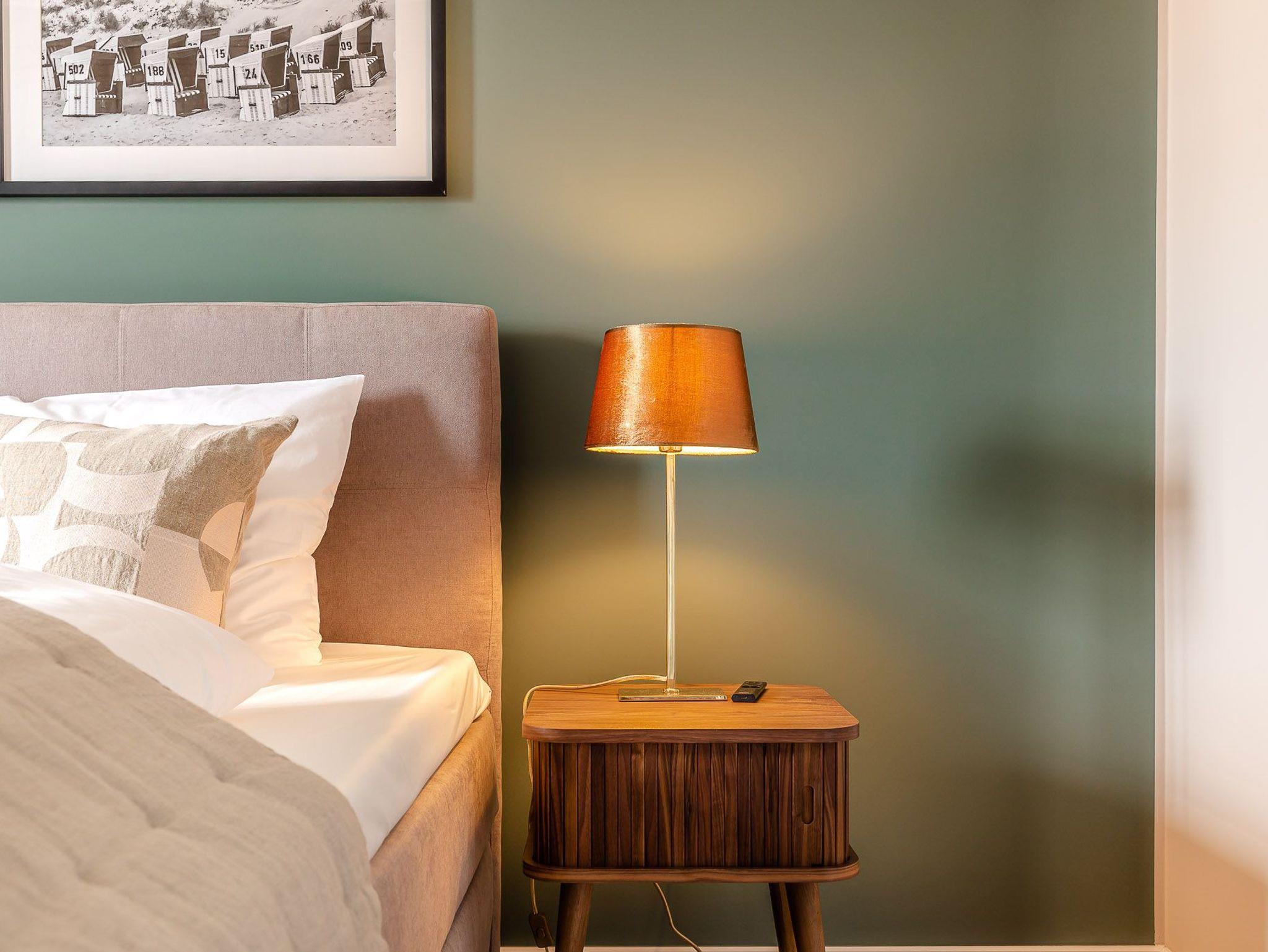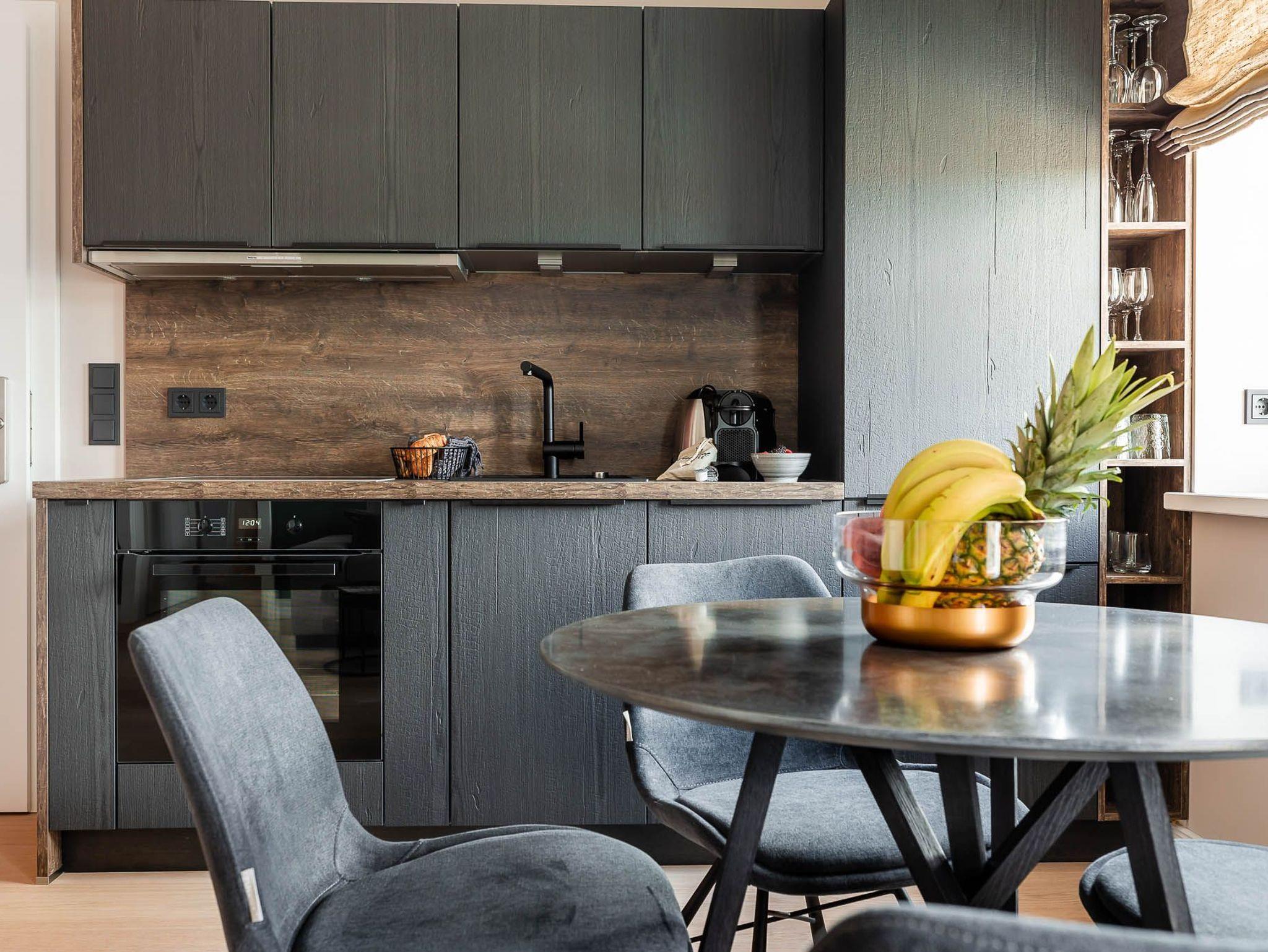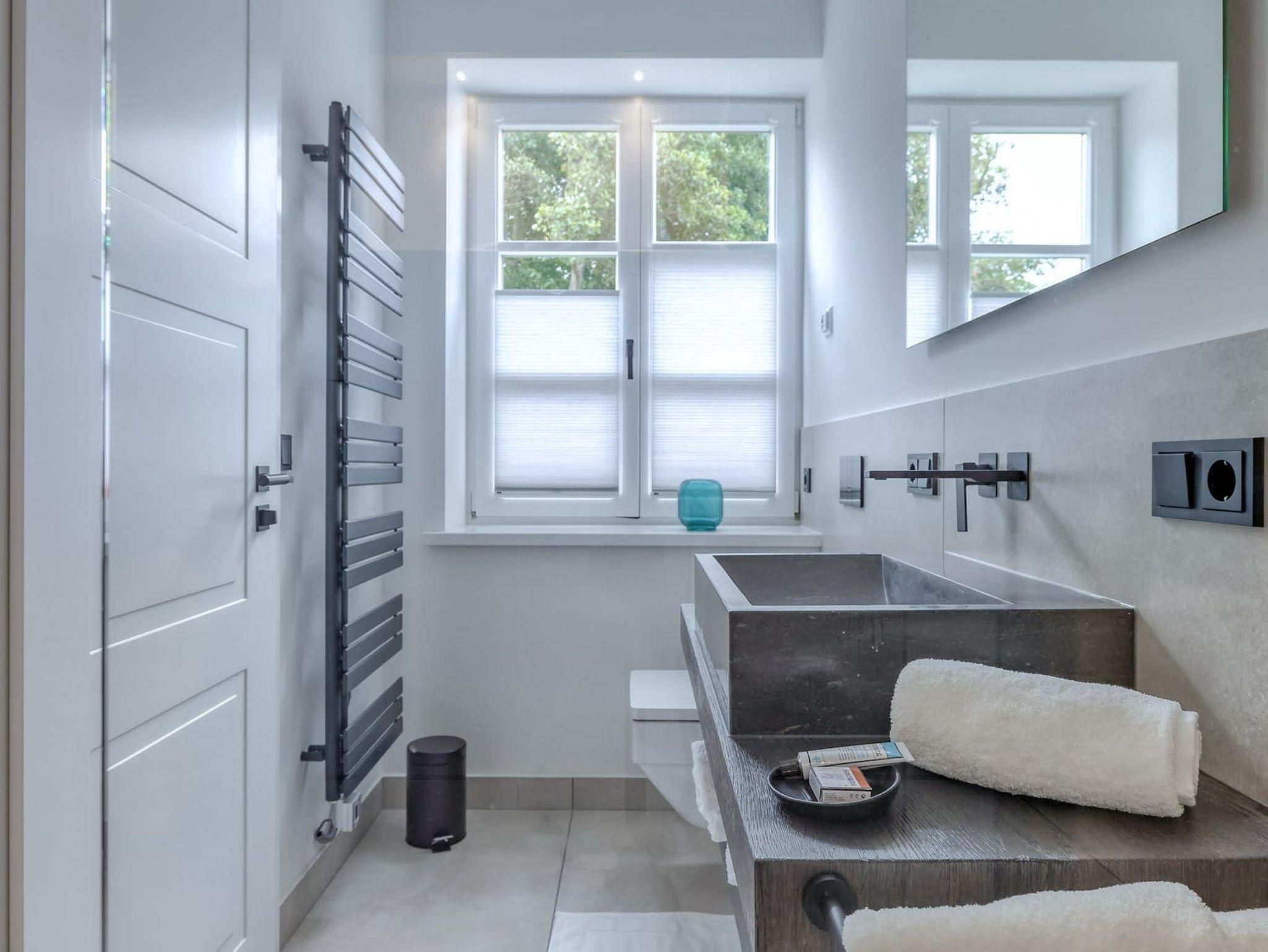 Ein Ort zum Wohlfühlen und Ankommen: lichtdurchflutete, helle Räume treffen auf modernes Design und hochwertige Ausstattung. Vom Wohn- und Essbereich gelangen Sie direkt auf den charmanten Balkon, welcher nach Westen ausgerichtet ist. Hier können Sie an warmen Sommernächten den Sonnenuntergang bei einem gemütlichen Glas Wein mit Ihren Liebsten genießen. Das Schlafzimmer ist mit einem großen Boxspringbett ausgestattet. Ein weiters Highlight der Ferienwohnung ist die angenehme Regendusche, die Ihnen nach einem ereignisreichen Tag schöne Moment der Entspannung bietet. Im Wohn- und Essbereich befindet sich ein Schlafsofa sowie der Zugang zum Balkon. Die Küche ist vollends ausgestattet mit Geräten von Top-Markenherstellern wie Gaggenau und Miele sowie einem kleinen Starterpaket an Geschirrtüchern und Co., ebenso fürs Bad. Das gesamte Apartment hat Fußbodenheizung, so bleibt es auch im Winter kuschelig warm.