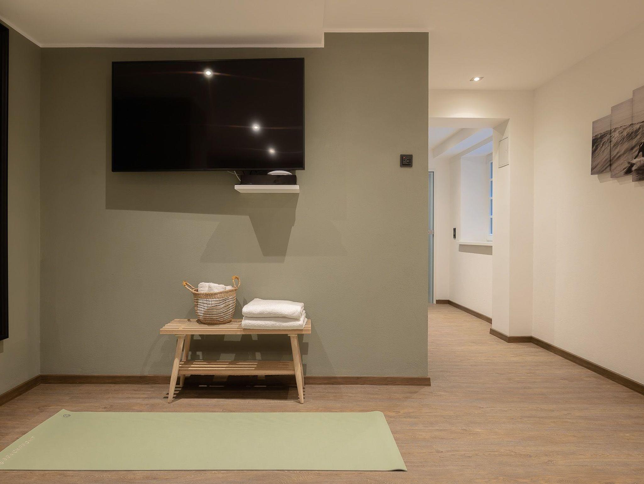 Noch mehr Komfort bietet der gemeinschaftlich genutzte Kellerbereich des Hauses. Hier stehen Ihnen neben einem Waschraum, ein kleiner Sauna- und Fitnessbereich mit Liegen, Spiegelwand, Crosstrainer und Peloton®-Bike zur Verfügung. Ihr Auto können Sie selbstverständlich kostenlos auf unseren Parkplätzen direkt am Haus parken. Je nach Verfügbarkeit können Sie auch die E-Ladestationen kostenpflichtig nutzen. Sprechen Sie uns diesbezüglich gerne an.