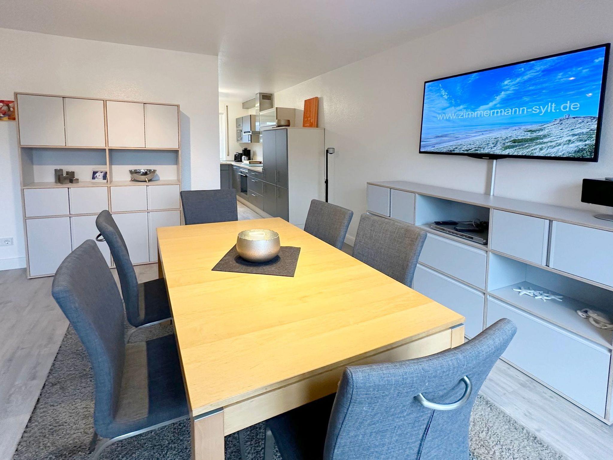 Für Unterhaltung sorgt ein Smart-TV im gemütlichen Wohnbereich. Die offene Wohnküche ist mit allen nötigen Geräten ausgestattet, inklusive einer Kaffeemaschine (Filter). Auch für den Komfort im Badezimmer ist gesorgt: Eine Badewanne, Dusche und WC sind vorhanden.