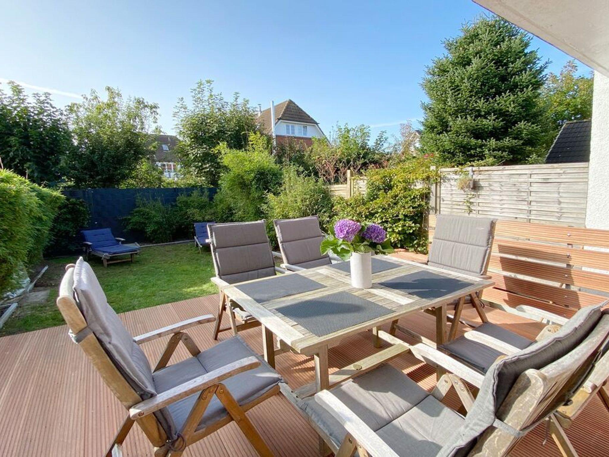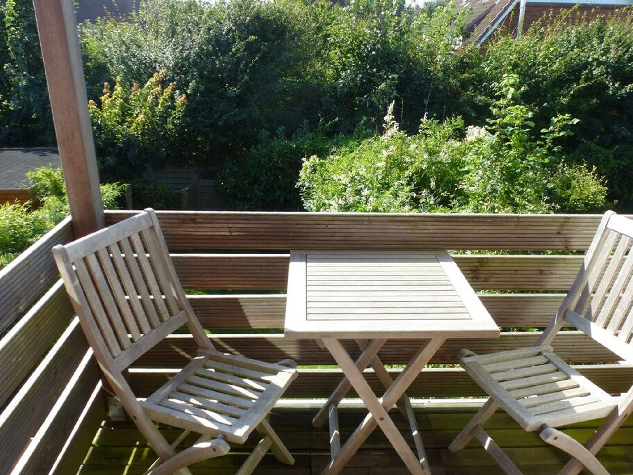 Der Außenbereich des Ferienhauses lädt zum Verweilen ein. Auf der Terrasse oder dem Balkon können Sie die Sonne genießen und im Garten entspannen. Ein Parkplatz steht ebenfalls zur Verfügung.