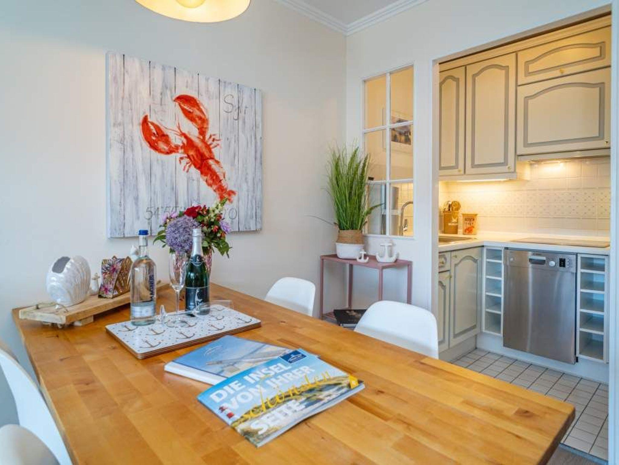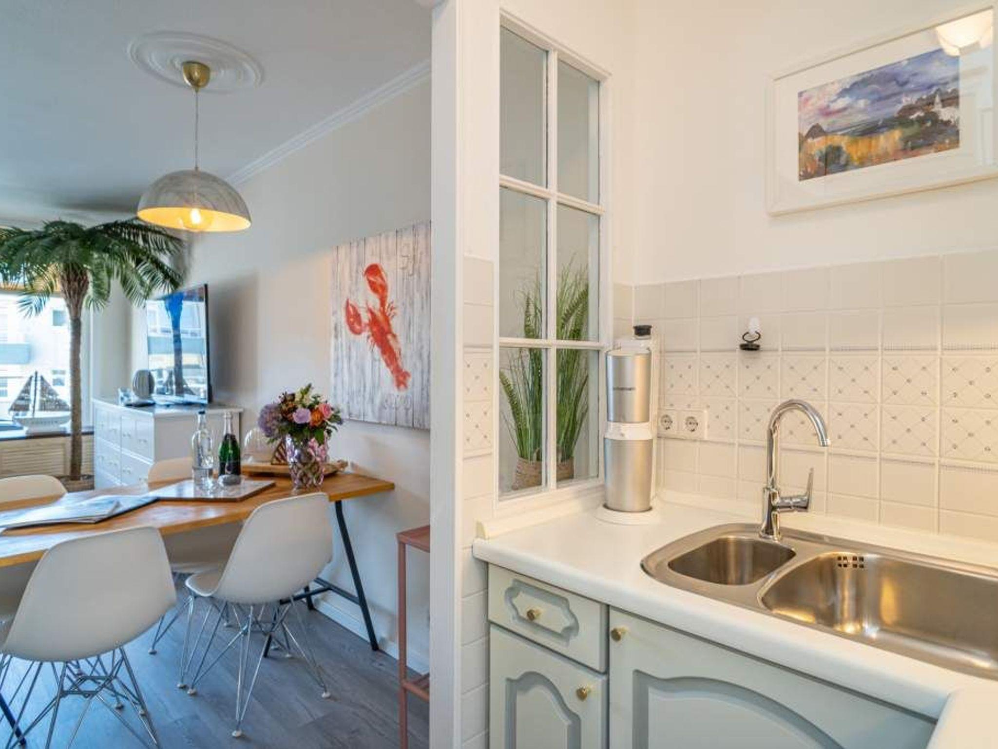 Die offene Küche hat einen Geschirrspüler, einen Induktionsherd, eine Mikrowelle/Backofen-Kombination, einen Kühlschrank, eine Nepresso-Maschine, sowie ein Handfilter aus Porzellan für Filterkaffee. Wasserkocher, Soda-Stream und Toaster gehören zur Grundausstattung. Selbst für die Kleinen ist Kindergeschirr und 2 TrippTrapp Kinderstühle sind vorhanden.