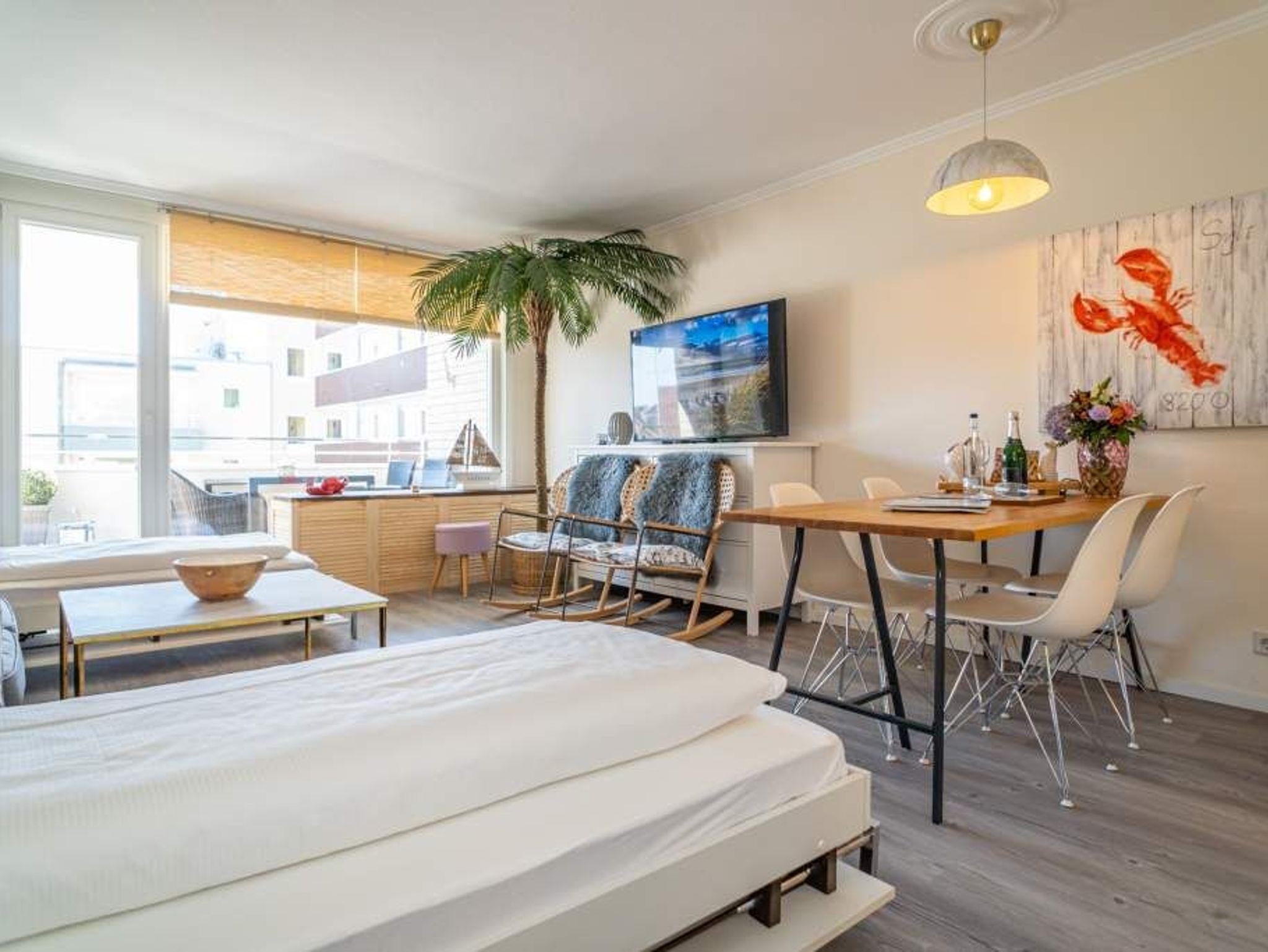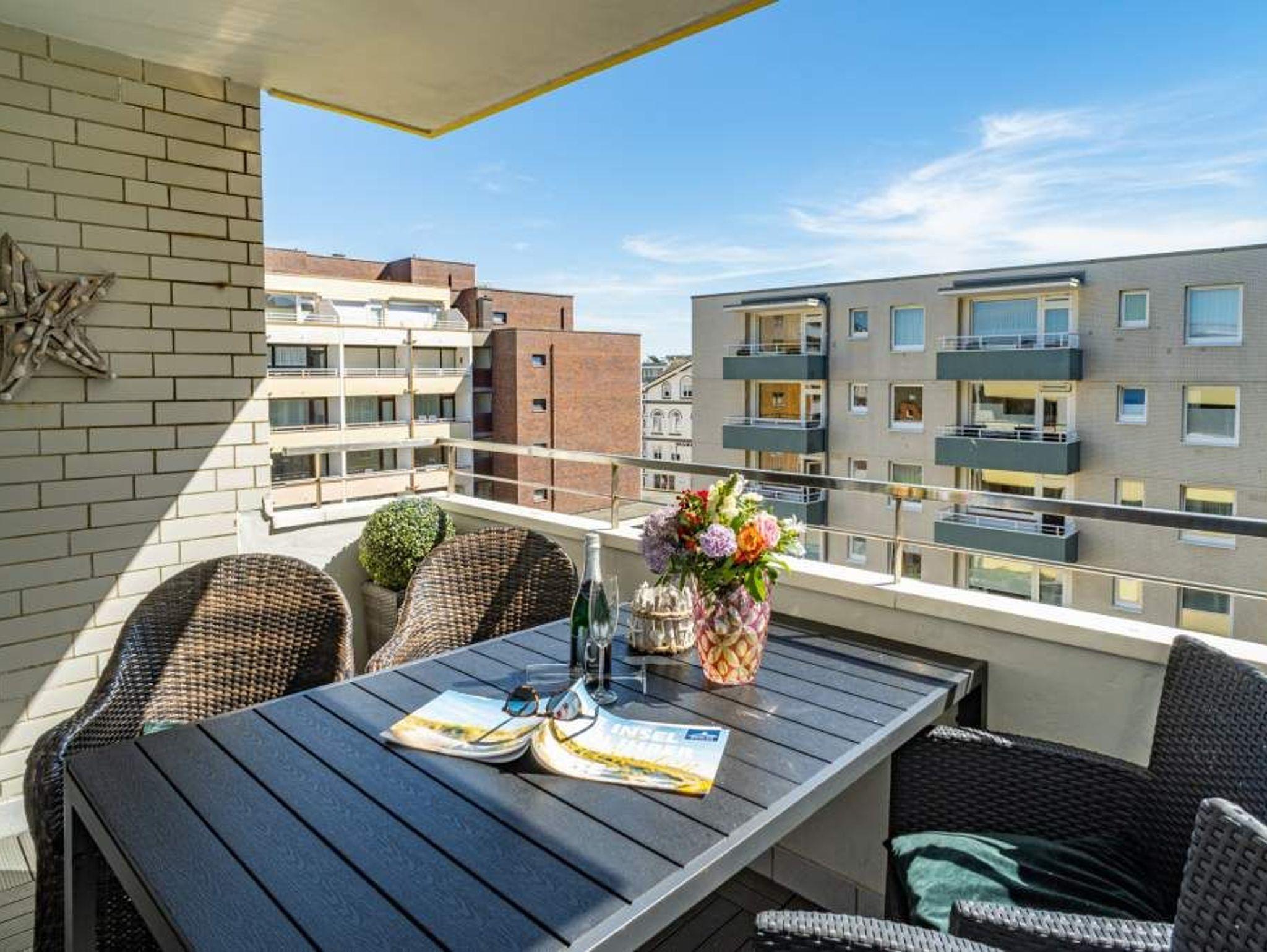 2-Zimmer-Ferienwohnung (ca.46 m²) in der 4. Etage zur Südseite mit Südbalkon (mit Balkonmöbeln und Auflagen) für max. 4 Personen.