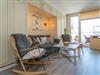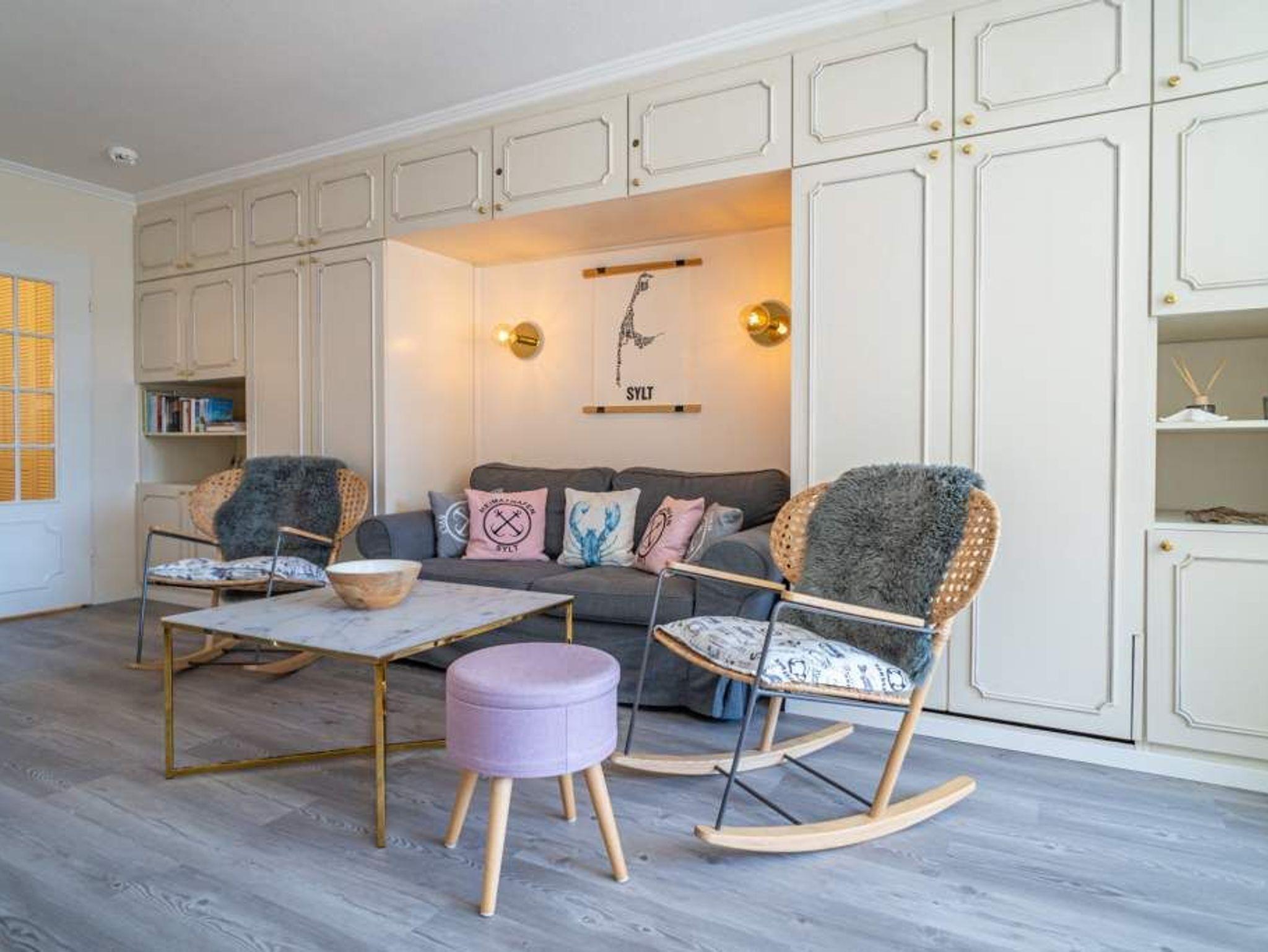 Der Wohnraum besteht aus einer 2-Sitzer-Couch, 2 Schaukelstühle, 2 Einzelschrankbetten (je 0,90 m x 1,90 m), Essplatz, Sat-Flachbild-TV.