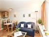 Der Wohnraum besteht aus einer gemütlichen Sitzgarnitur (2-Sitzer-Couch und 2 Korbsessel), einem Essplatz, einem Doppelschrankbett (einzeln ausklappbar), Sat-Flachbild-Fernseher, DVD-Player und Telefon.