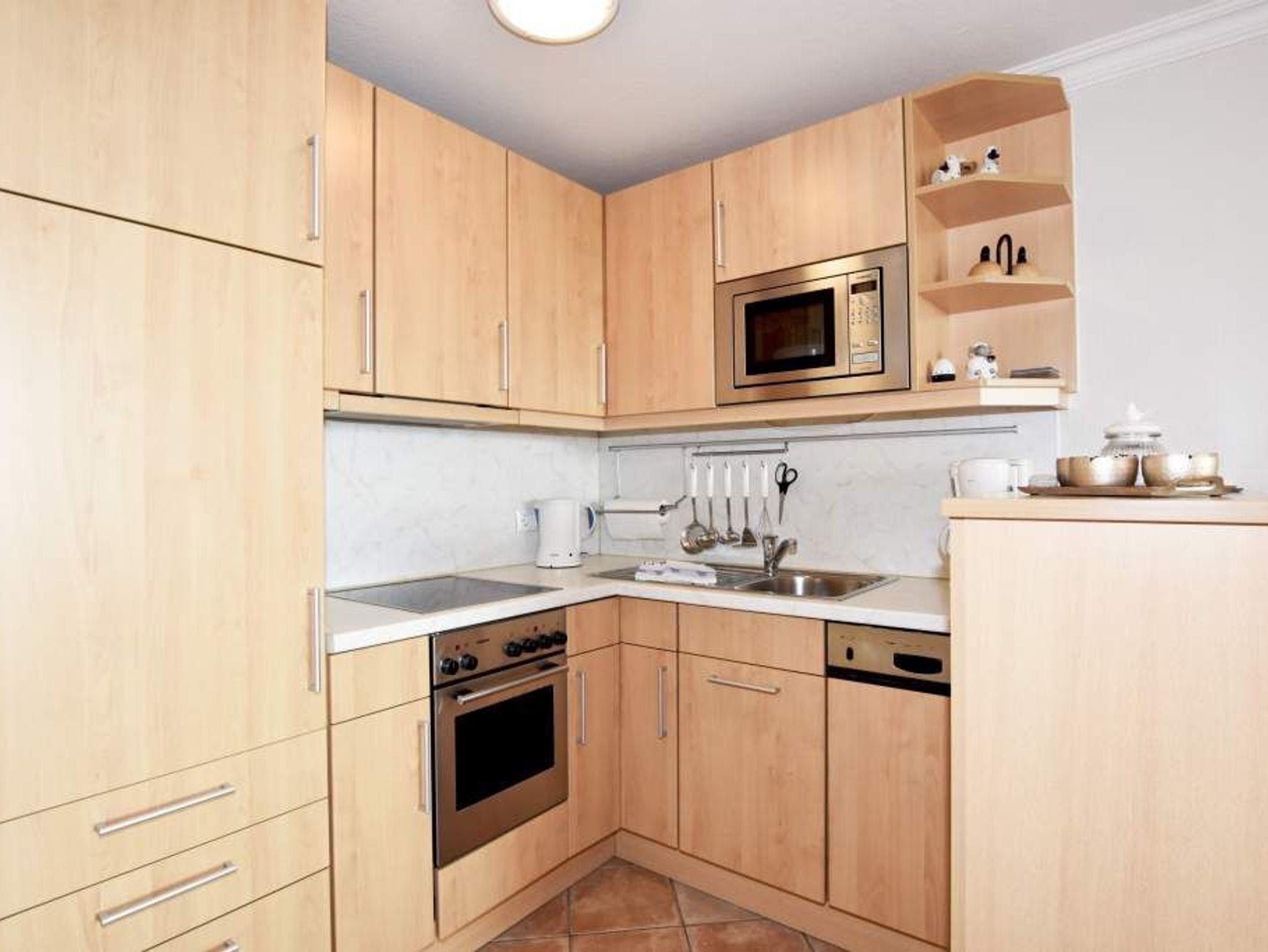 Die Küchenzeile hat einen Geschirrspüler, eine Mikrowelle, ein Herd mit Backofen und 4 Kochfeldern sowie ein Kühlschrank mit 3*-Gefrierfach. Kaffeemaschine, Wasserkocher und Toaster gehören zur Grundausstattung.