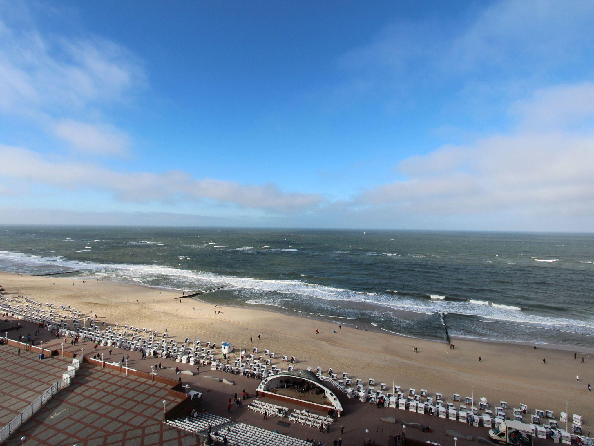 Einzimmerwohnung in der 11. Etage im Haus Metropol mit herrlichem Blick auf den Strand und die Nordsee. Der kombinierte Wohn-/Schlafraum mit vorgelagertem Westbalkon (mit Balkonmöbeln) ist ausgestattet mit Einzelschrankbetten, einem Essplatz am Fenster mit 2 Stühlen und zwei bequemen Sesseln als Sitzgruppe. Das helle Badezimmer mit Dusche hat besonders viel Stauraum für Ihre persönlichen Dinge. Die moderne Einbauküche mit 2 Ceranfeldherdplatten, Geschirrspüler und einer Mikrowellen-Backkombination befindet sich im Flur. Es ist alles vorhanden um sich während des Urlaubs selbst zu verpflegen. Zur technischen Ausstattung dieser Nichtraucherwohnung gehört: ein Smartfernseher und ein Radio. Ein freies WLAN Netzwerk (WEG Haus Metropol - Passwortfrei - ohne Gewähr) steht ihnen kostenfrei zur Verfügung. Wohnungsgröße: ca. 34 m².