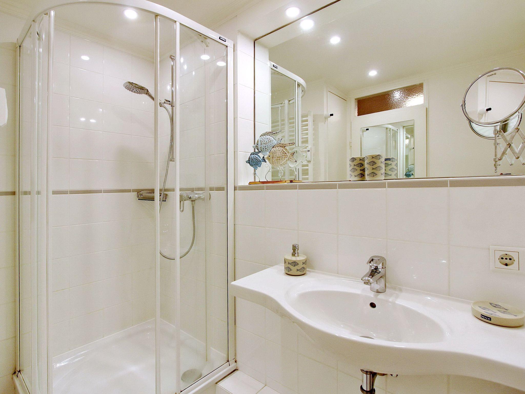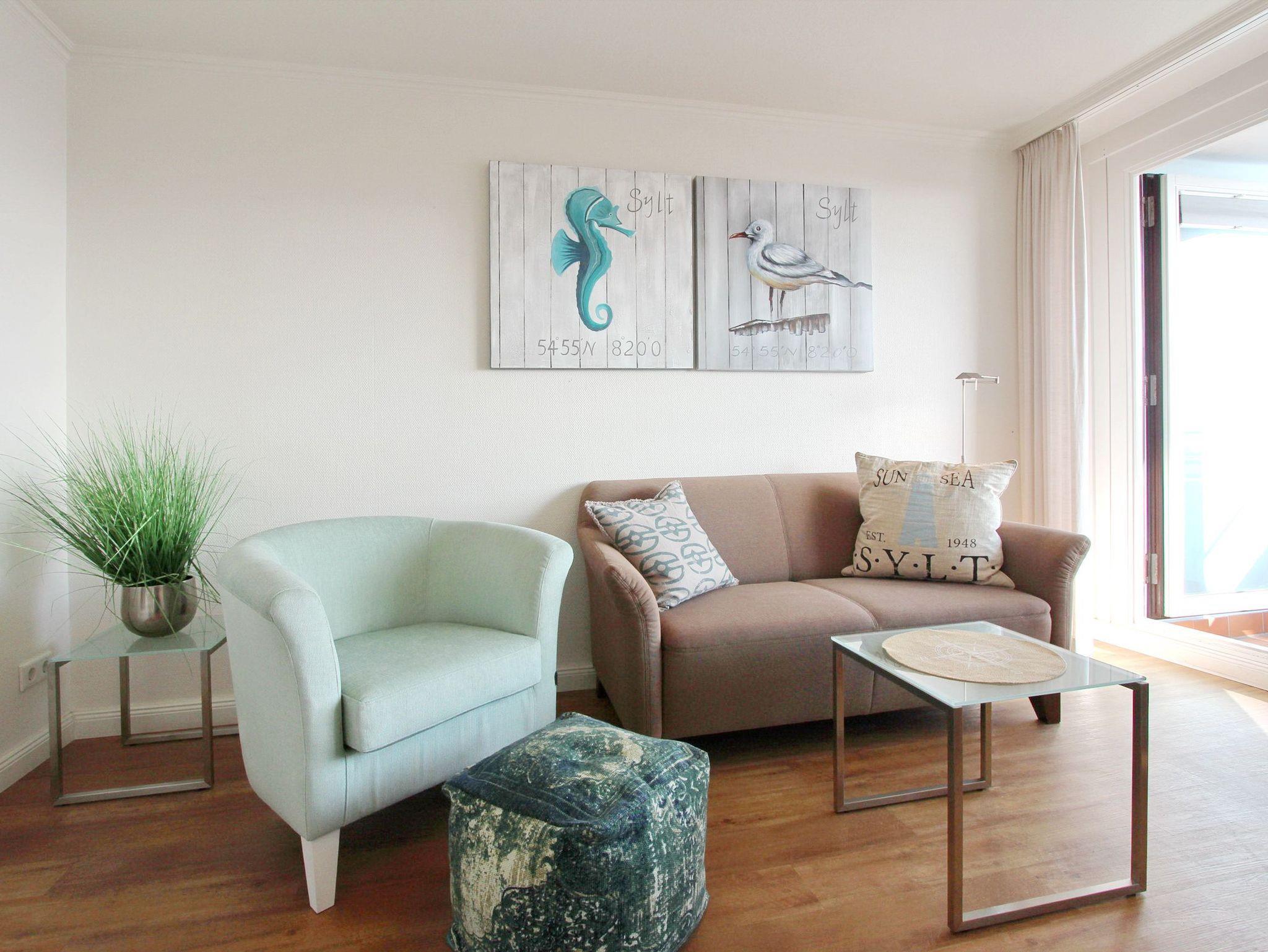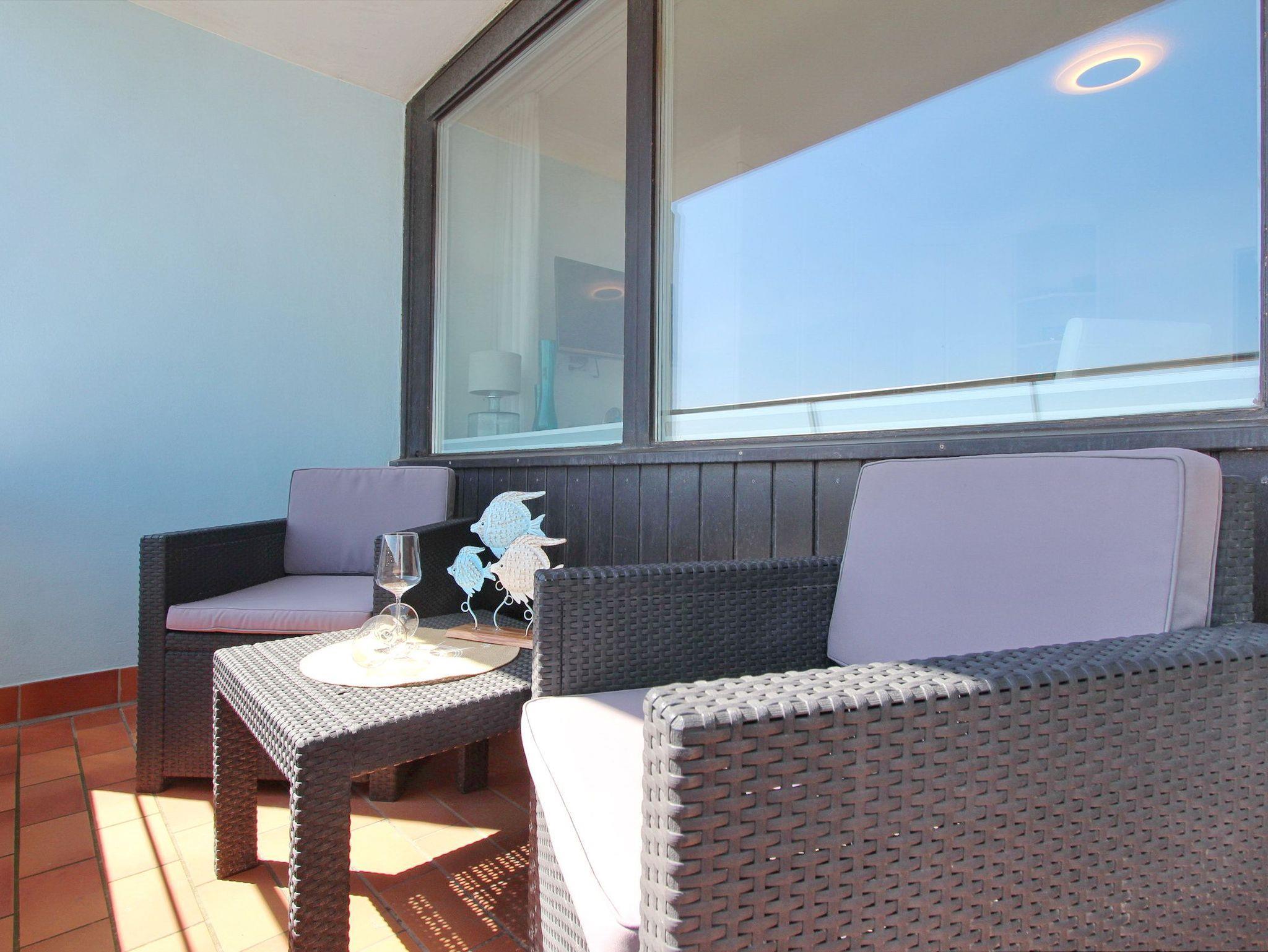 Diese hochwertig ausgestattete Nichtraucherwohnung in der 9. Etage des Haus Metropol lässt keine Wünsche offen. Der Blick vom Ostbalkon über das Wattenmeer bis zum Festland ist großartig. Auf bequemen Loungemöbeln können Sie fantastische Sonnenaufgänge genießen. Der kombinierte Wohn-/Schlafraum mit Doppelschrankbett, Essplatz mit 2 Stühlen am Fenster und komfortabler Sitzgruppe mit Fernsehsessel wurde mit Designfussboden in Holzoptik ausgelegt. Das macht die Wohnung gerade für Hausstauballergiker besonders geeignet. Das Badezimmer mit Dusche, Fön, Kosmetikspiegel, mobilem Haltegriff, Duschhocker und Handtuchtrockner ist vom Flur aus erreichbar. In der kleinen Einbauküche mit Mikrowellen-Backkombination, Geschirrspüler und zusätzlicher Nespresso Kaffeemaschine können sie sich bequem selbst verpflegen. Selbst Eierkocher, Milchaufschäumer und Smoothiemaker sind vorhanden. Zur technischen Ausstattung der Wohnung gehört: ein moderner Smartfernseher von Panasonic und eine Bluetoothanlage mit CD Player von Sony. Ein freies WLAN Netzwerk (WEG Haus Metropol - Passwortfrei - ohne Gewähr) steht ihnen ebenfalls kostenfrei zur Verfügung. Wohnungsgröße ca. 30 m².
