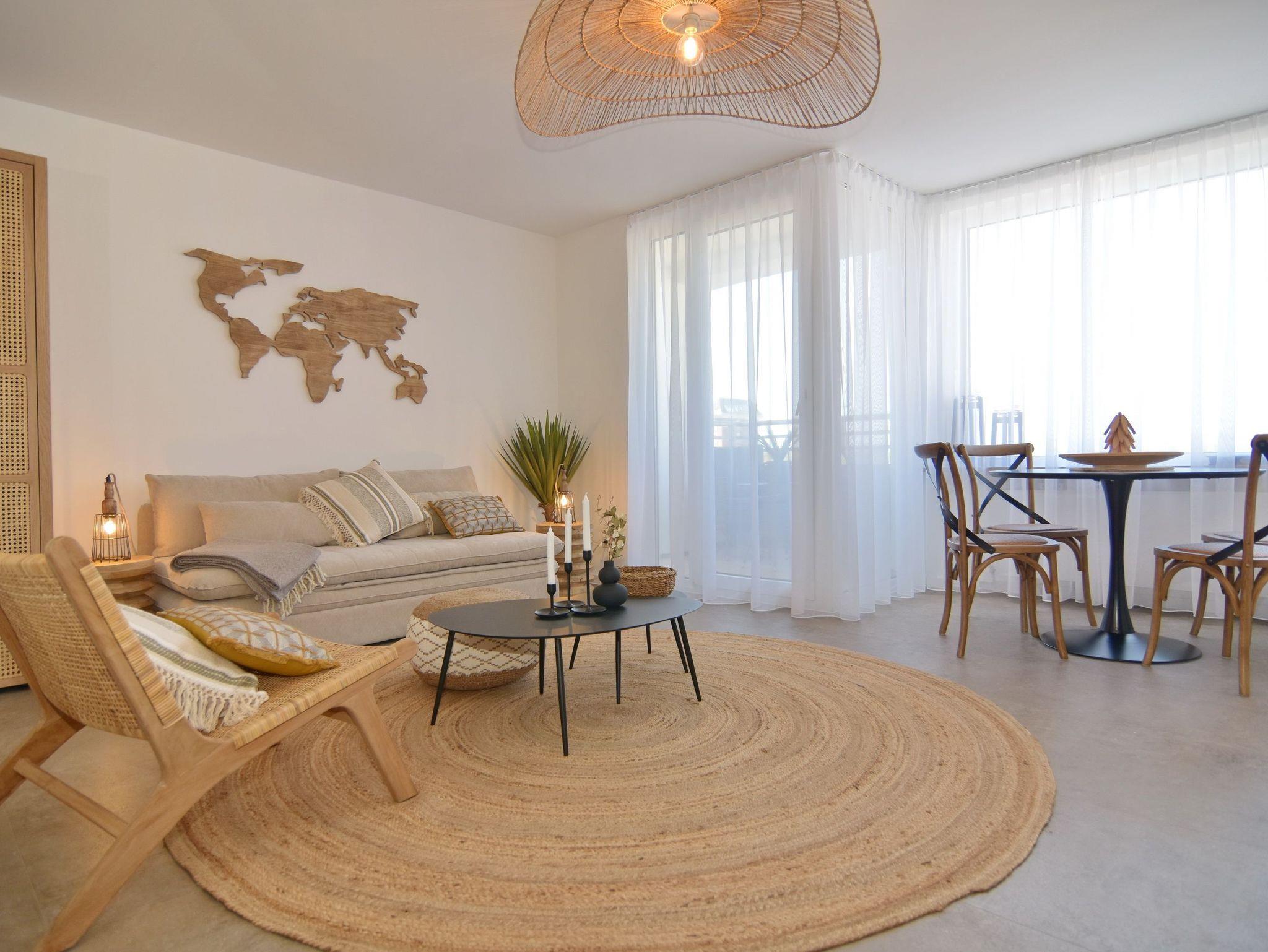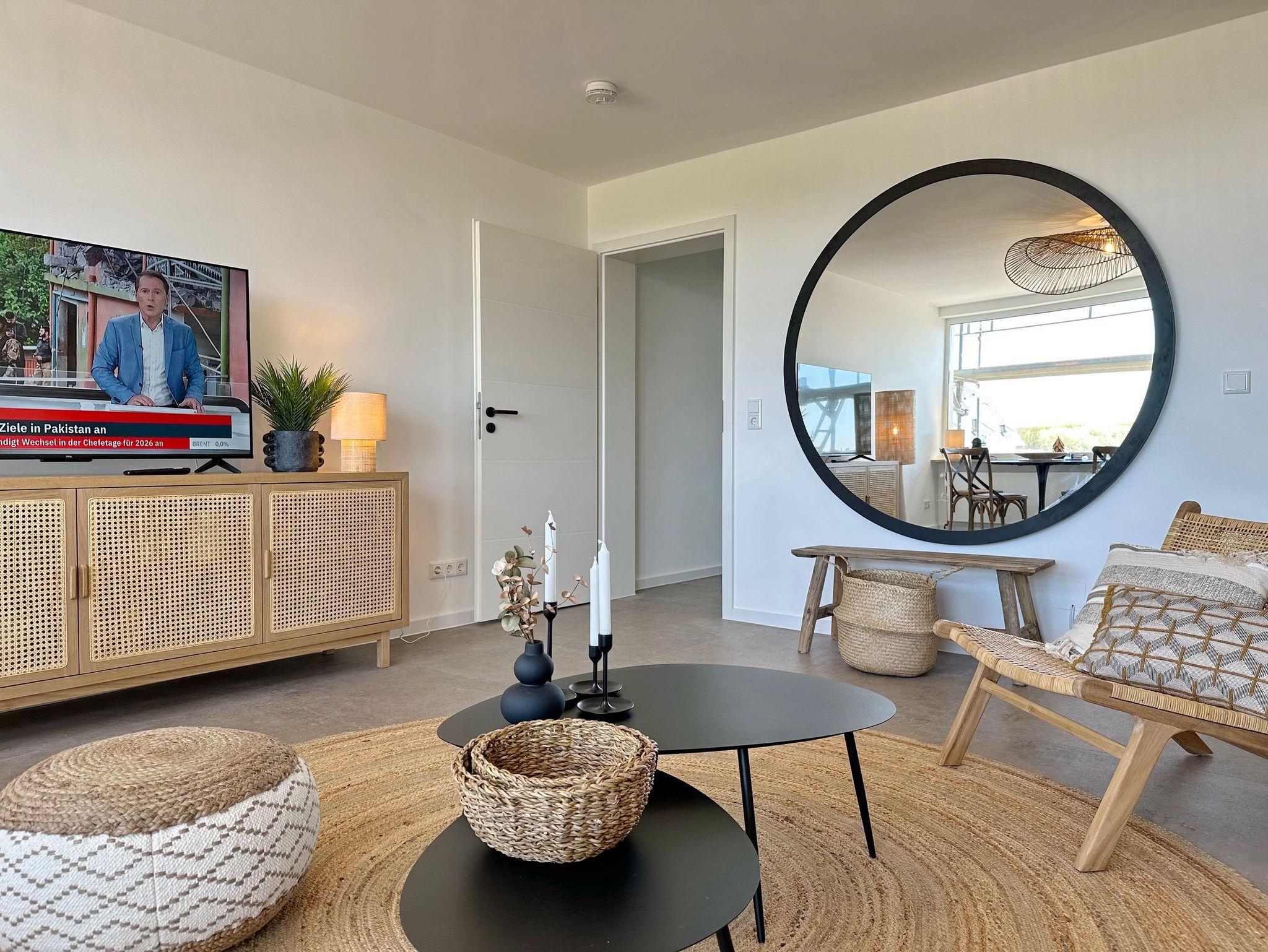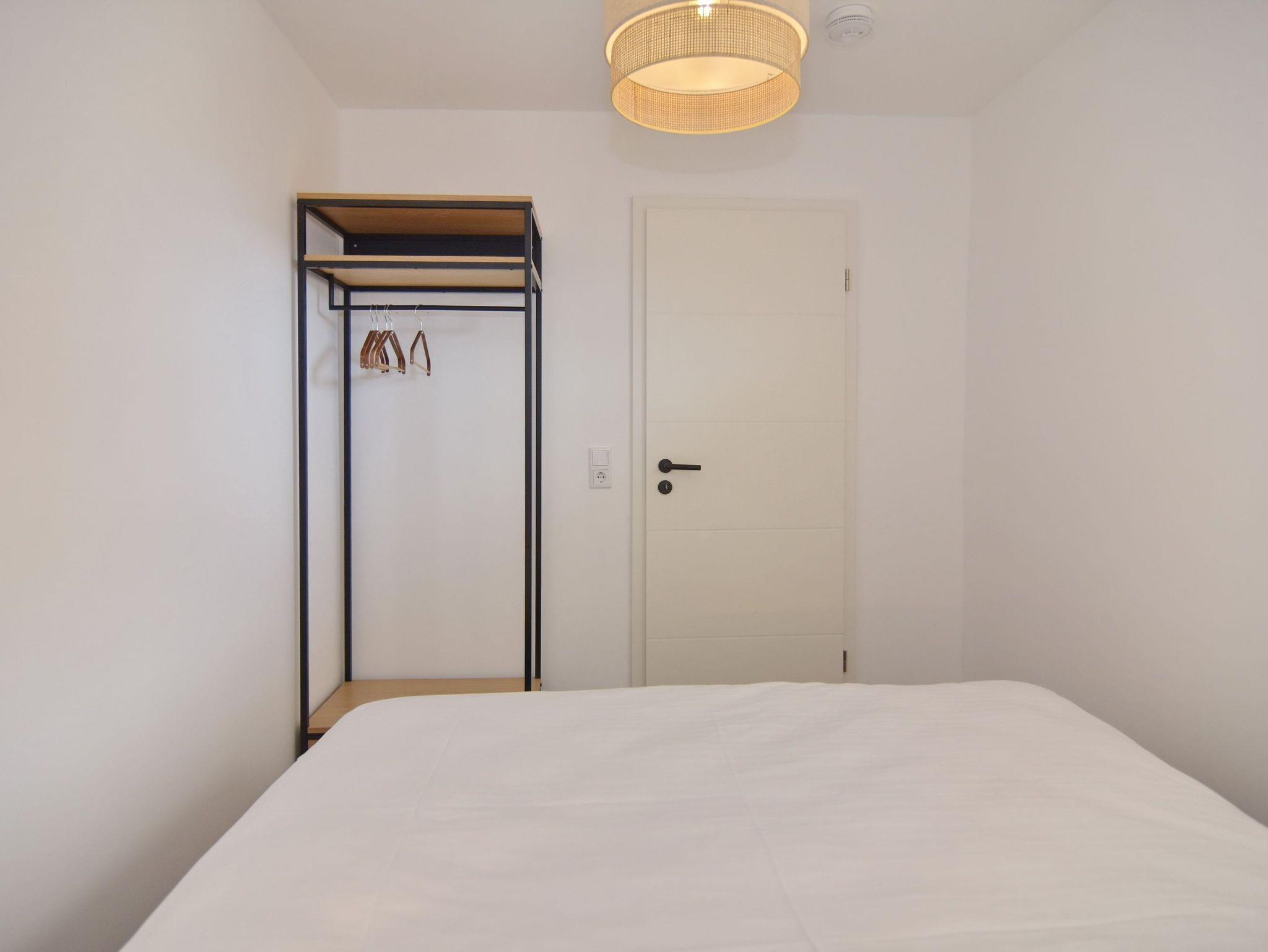 Die Ferienwohnung verfügt über ein schönes Wohnzimmer mit Sofa (Schlafmöglichkeit für eine Person), Sessel, Essplatz am Fenster und möblierten, geschützten Westbalkon. Das separate Schlafzimmer hat ein Doppelbett (160x200, 1 Matratze) und einen kleinen offenen Schrank. Weiterer Stauraum durch einen großzügigen Kleiderschrank befindet sich im Wohnzimmer. Die separate Küche bietet Ihnen einen großen Kühlschrank mit Gefrierfach, 4-Platten-Ceranherd, Geschirrspüler und Mikrowellen-Kompaktbackofen. Das Duschbad erstrahlt in modernem Design. Ein Pkw-Außenstellplatz gehört zur Wohnung und für Fahrräder gibt es eine Abstellmöglichkeit auf dem Grundstück Bettwäsche und Handtücher sind zur Anreise aufgezogen.
