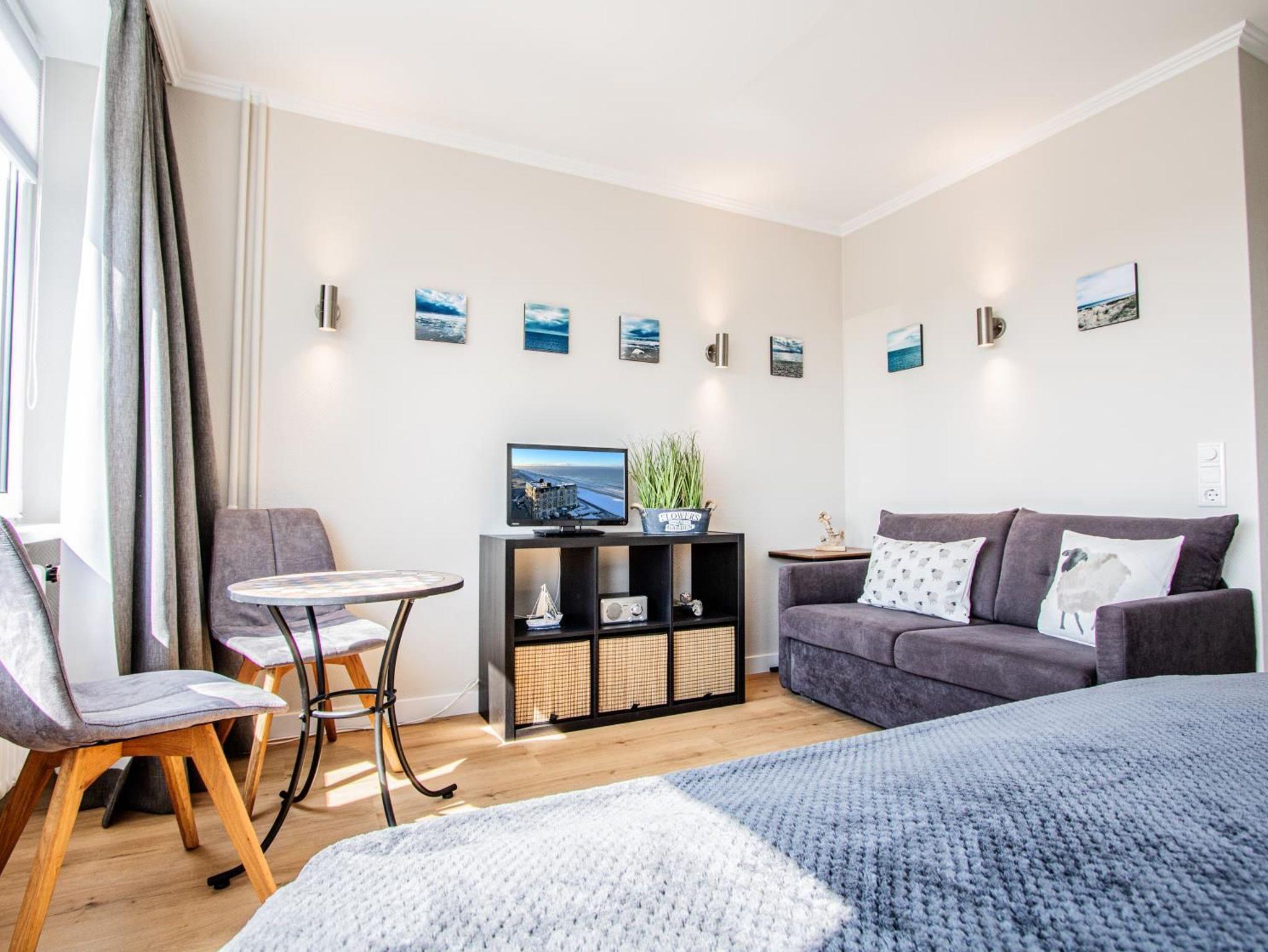 Das Appartementhaus steht an der Fußgängerzone Wilhelmstraße, die in die Friedrichstraße übergeht. Zum Strand sind es ca. 500 m. Das Appartement befindet sich in der 5. Etage mit Blick Richtung Westen.
