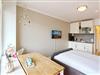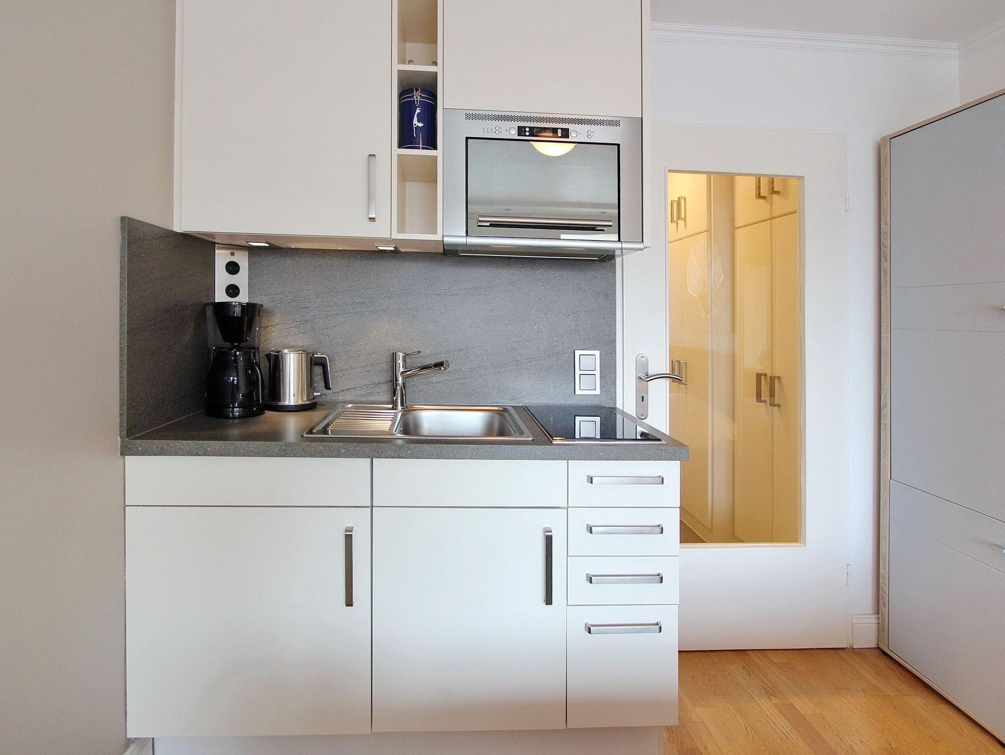 Die mit viel Liebe zum Detail eingerichtete Wohnung verfügt über einen Wohn-Schlafraum mit integrierter Küchenzeile. Um sich selbst zu verpflegen stehen ihnen ein 2 Platten Ceranfeld und eine Mikrowellen Backkombination zur Verfügung.