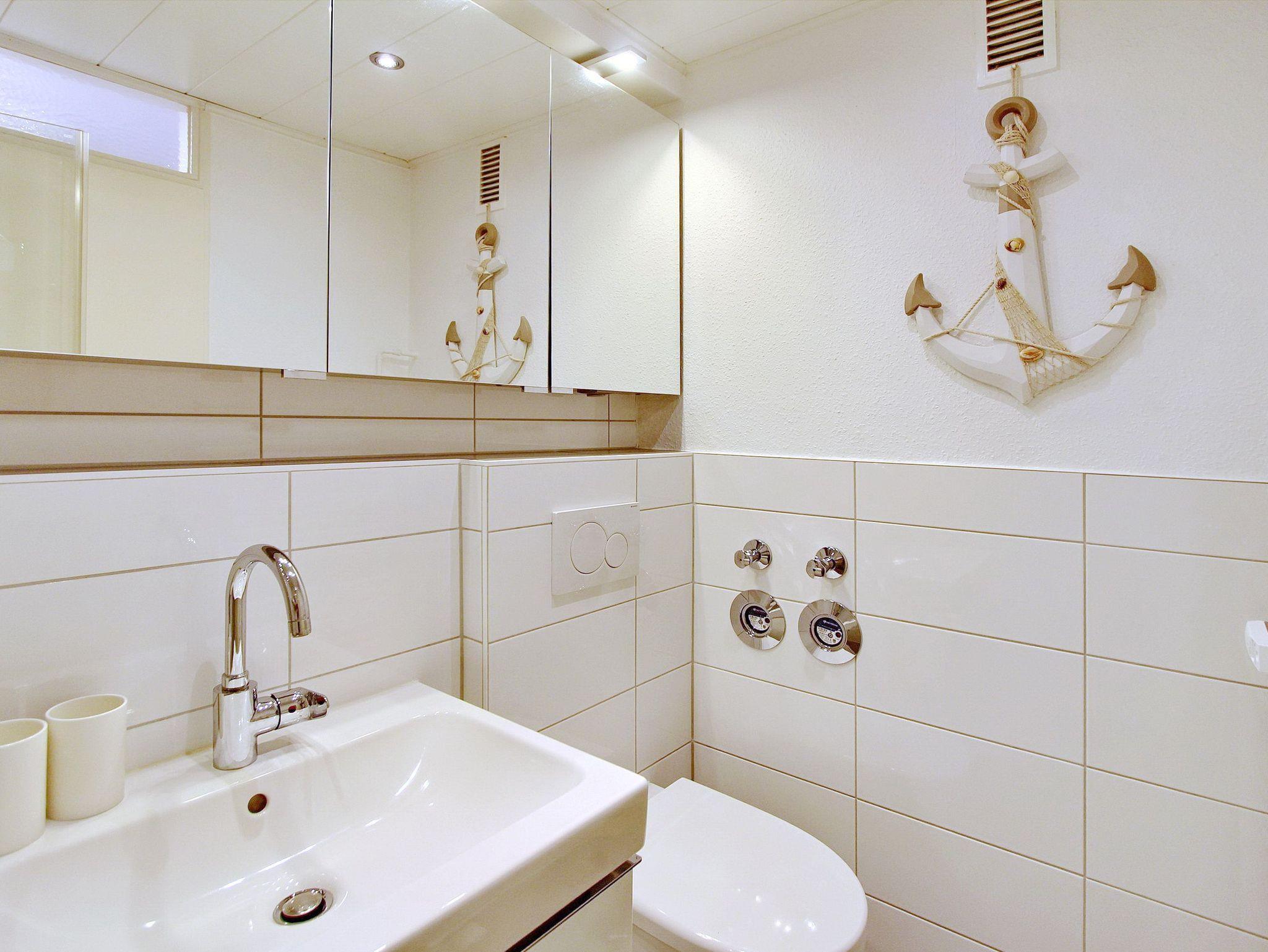 Am Fenster steht ein Essplatz mit 2 bequemen Stühlen, an dem sie alle Mahlzeiten zu sich nehmen können und das Treiben auf der Straße beobachten können. Für einen erholsamen Schlaf gibt es ein modernes Boxspringbett. Ausreichend Stauraum für Ihre persönlichen Dinge ist vorhanden, da es im Flur große Einbauschränke gibt. Das kleine Badezimmer in weiß hat eine Dusche (niedriger Einstieg) mit Glastrennwand und einen beheizten Handtuchhalter. Zur technischen Ausstattung dieser Nichtraucherwohnung gehört: ein 32 Zoll Fernseher und ein kostenfreier WLAN (WEG Haus Metropol - Passwortfrei - ohne Gewähr). Diese Wohnung ist ca. 23m² groß.