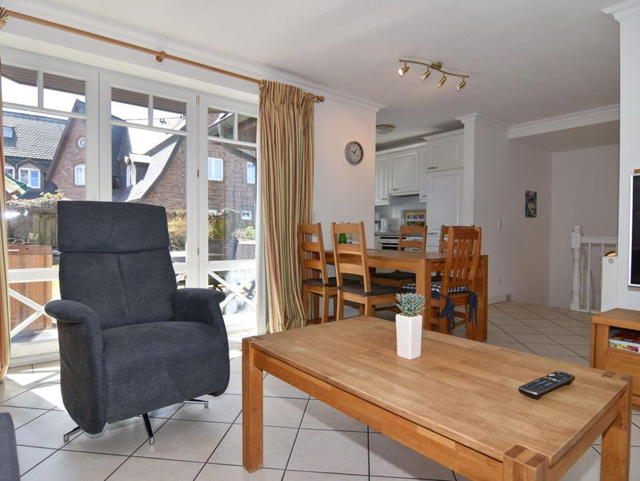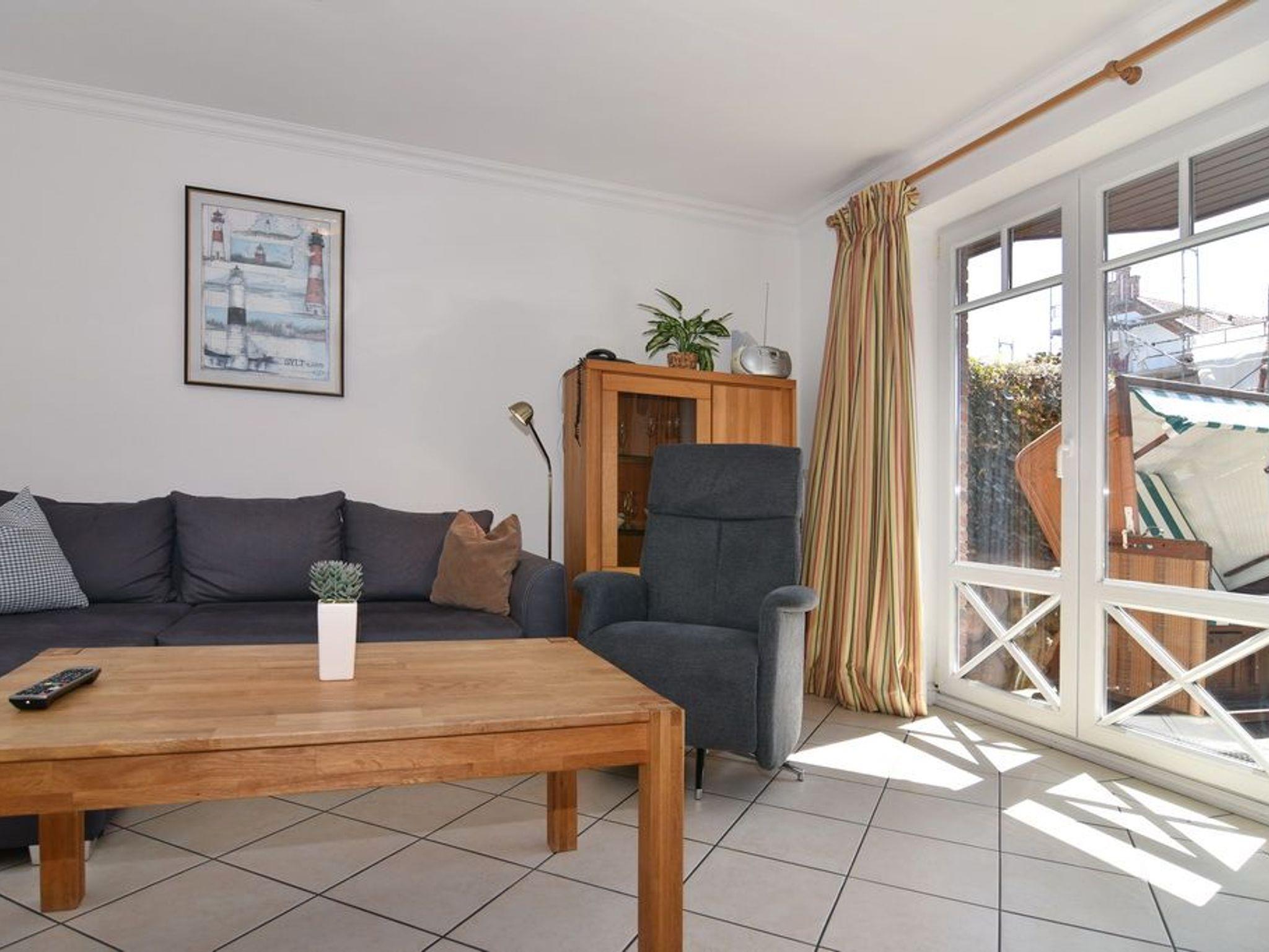 Gepflegtes 3 Zimmer-Apartment im Hopfengarten, EG/UG, 66 m², Nichtraucher. EG: Gefliester Wohnraum mit Couch und Sessel, Esstisch, TV, Radio mit CD, Internet (Wlan ohne Gewähr),[nbsp][nbsp]Südterrasse mit Gartenmöbeln und Strandkorb (Apr.-Okt.), offene Küche mit Geschirrspüler, Mikrowelle, zusätzlich Pad-Kaffeemaschine und Backofen. UG: Schlafzimmer mit Doppel-Boxspingbett(180x200), Schlafzimmer mit 2 Einzelbetten (je 90x200), ebenerdige Dusche/ WC separates Gäste-WC, Waschmaschine mit Trockner. PKW-Stellplatz Nr. 8. Tierhaltung ist nicht gestattet. Bettwäsche und Handtücher sind zur Anreise aufgezogen.