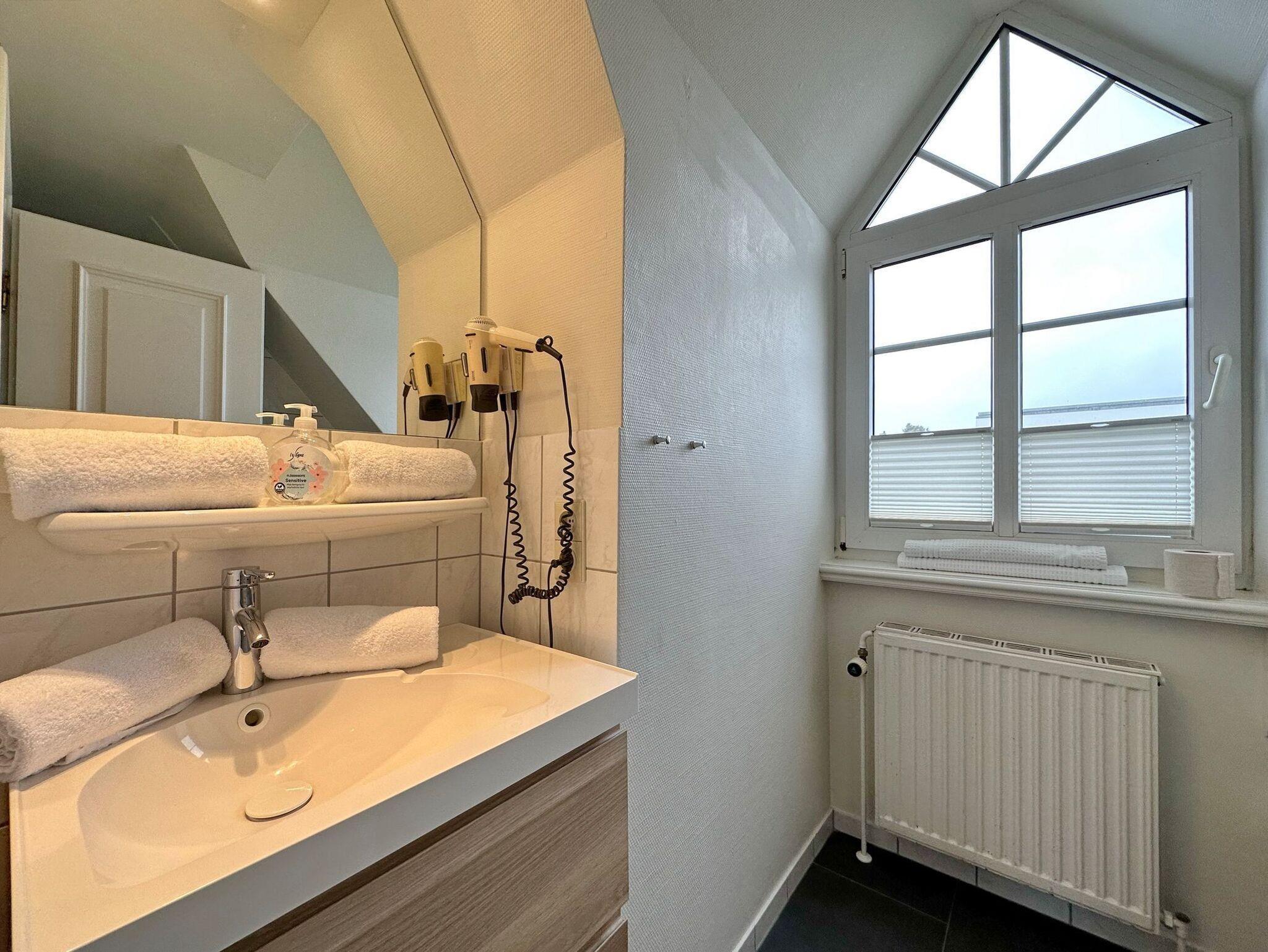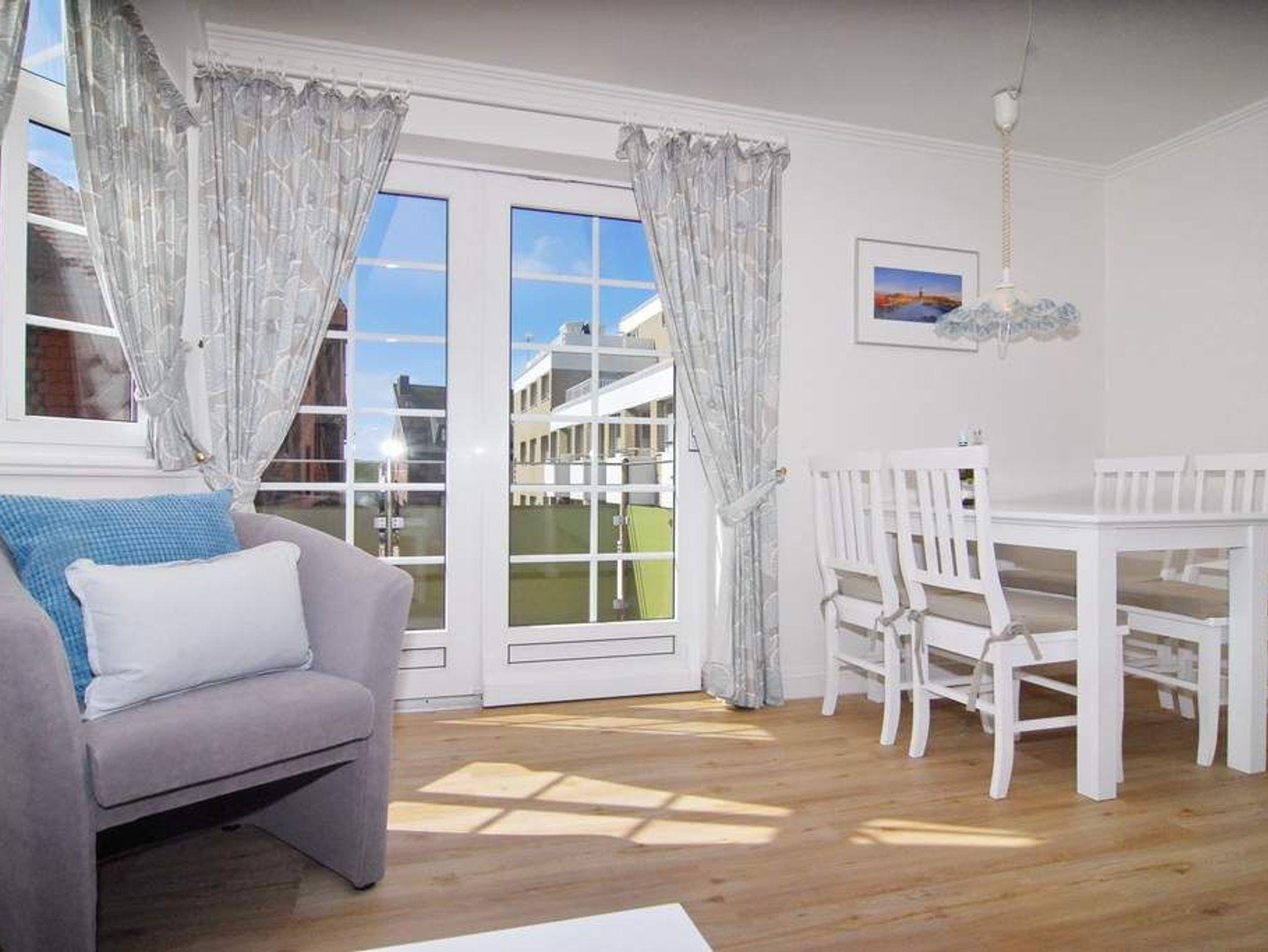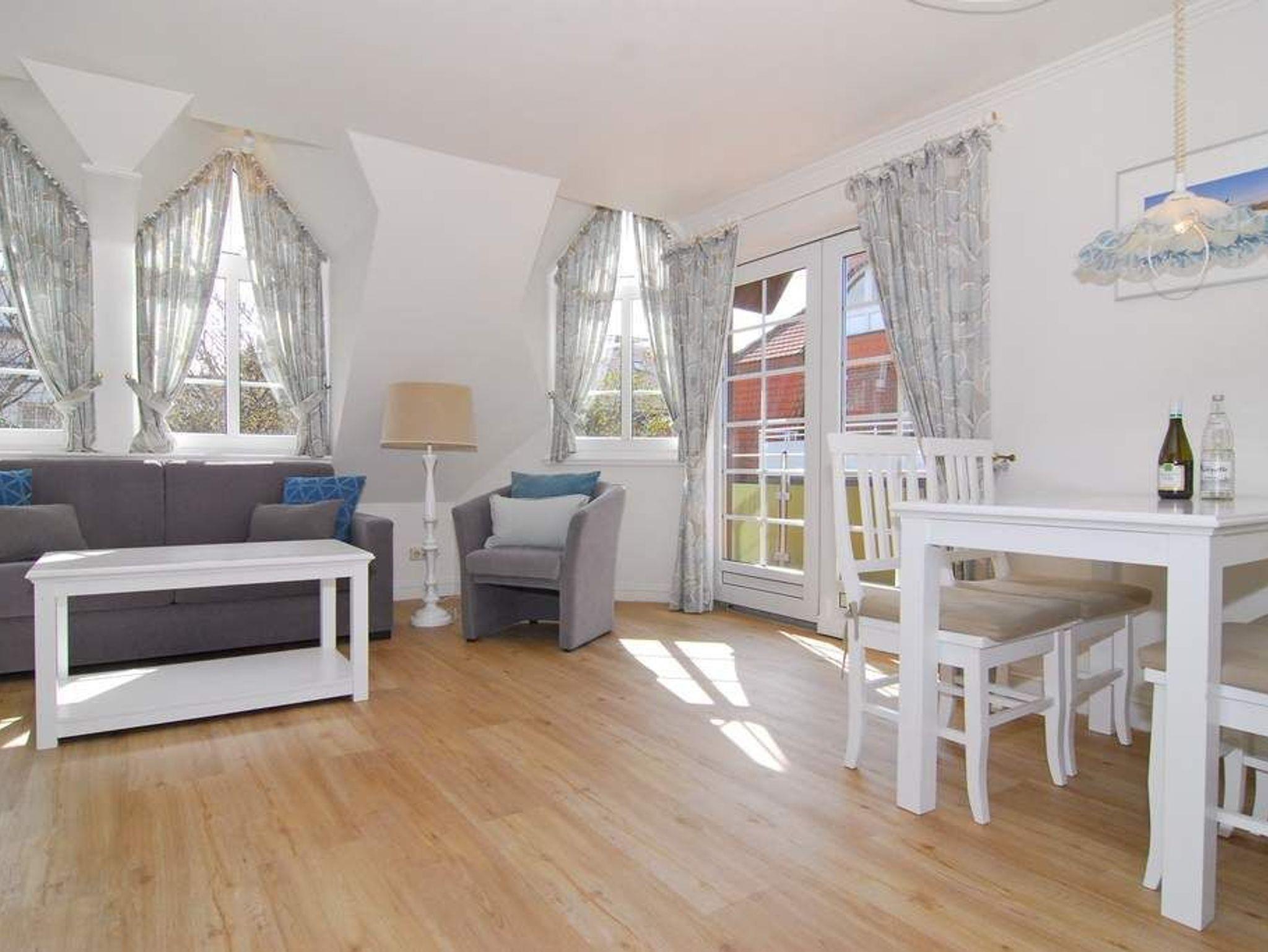 Helle 2-Zimmer-Ferienwohnung mit Südwestbalkon im Haus Olympia 1. Ca. 52m². OG: Wohnzimmer mit Essecke, Doppelschlafcouch und Couchtisch, Kabel-TV, Radio, Offenes W-LAN-Netzwerk steht zur Verfügung (ohne Gewähr), separate Küche mit Geschirrspüler, Duschbad/WC. DG: Schlafzimmer mit Doppelbett und Einbauschränken. Nichtraucherwohnung, Tierhaltung verboten. Unter Haus 4 befindet sich das Schwimmbad mit Finnischer Sauna. Unter Haus 2 befindet sich ein separater Wellnessbereich mit Dampfsauna, Finnischer Sauna und Ruhebereich. Eine Waschküche mit Gemeinschaftswaschmaschine/Trockner ist vorhanden. Bettwäsche und Handtücher sind zur Anreise aufgezogen. Ein Garagenstellplatz kann kostenpflichtig gebucht werden!