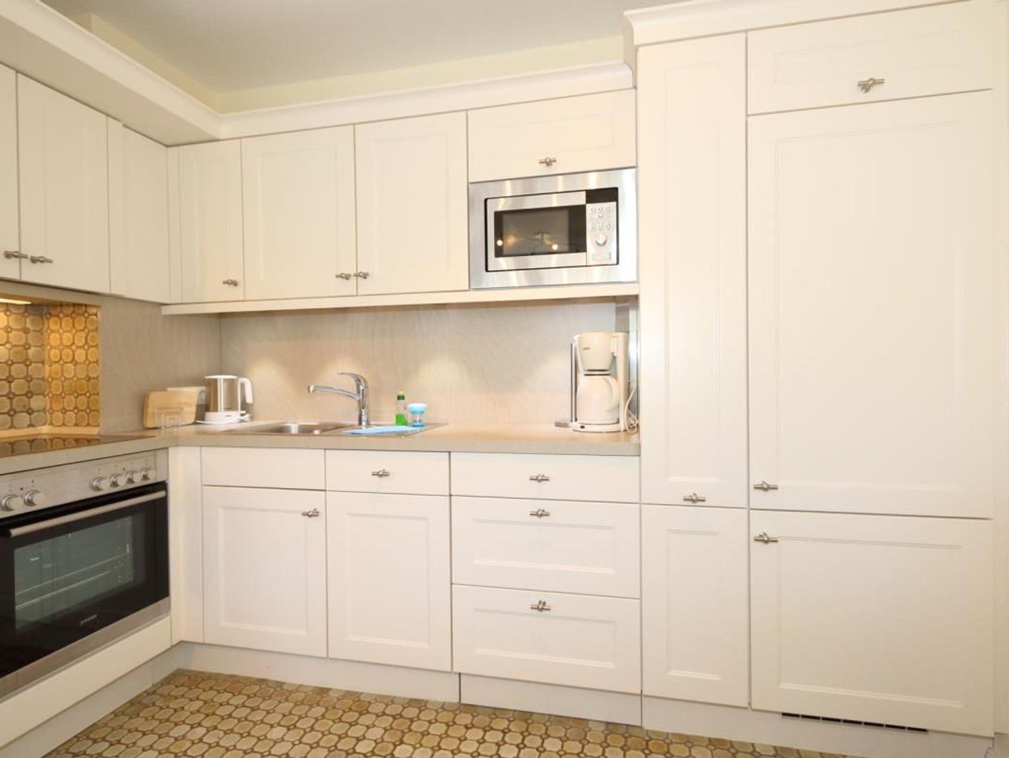 Küche mit Herd, Backofen, Mikrowelle, Dunstabzug, Kühlschrank mit Eisfach, Filter-Kaffeemaschine, elektrischer Wasserkocher und Toaster sind selbstverständlich.
