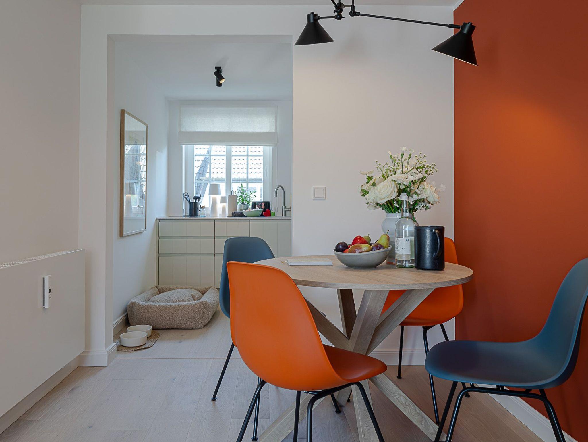 Auf dem Mitteldeck (OG) in Dock 6c betreten Sie die Wohnung und gelangen über den Flur in den geschmackvoll designten Wohn- und Essbereich. Viel Licht, ein für die Insel typisches Eichenparkett und eine anspruchsvolle Einrichtung vermitteln sofort: Das war eine gute Wahl, denn das heiß ersehnte und lang vermisste Sylt-Feeling entfaltet sich sofort.