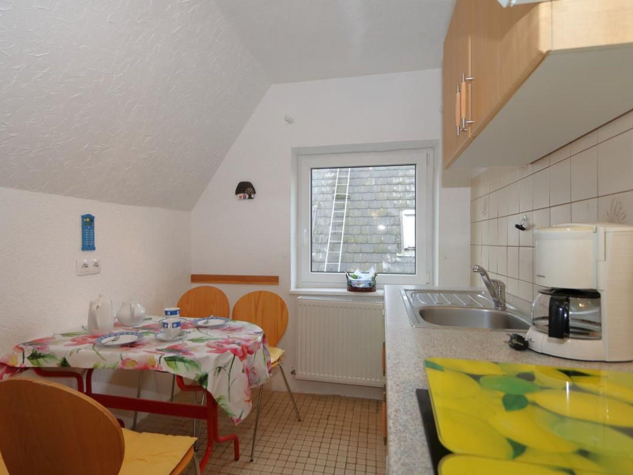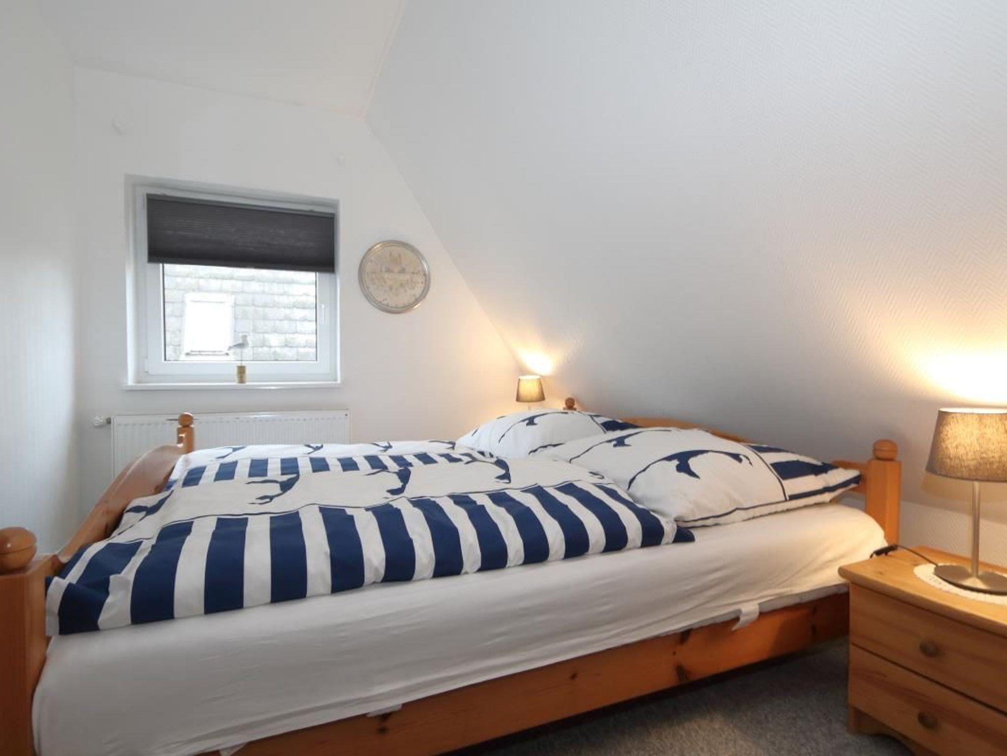 Kleiderschrank grenzt an das Wohnzimmer. Das Duschbad hat leider nur eiine geringe Durchgangshöhe von 180 cm. Das Haus Solveig ist ein Einzelhaus im grünen Herzen von Westerland. Die Bastianstraße ist eine Anliegerstraße im verkehrsberuhigten Bereich.