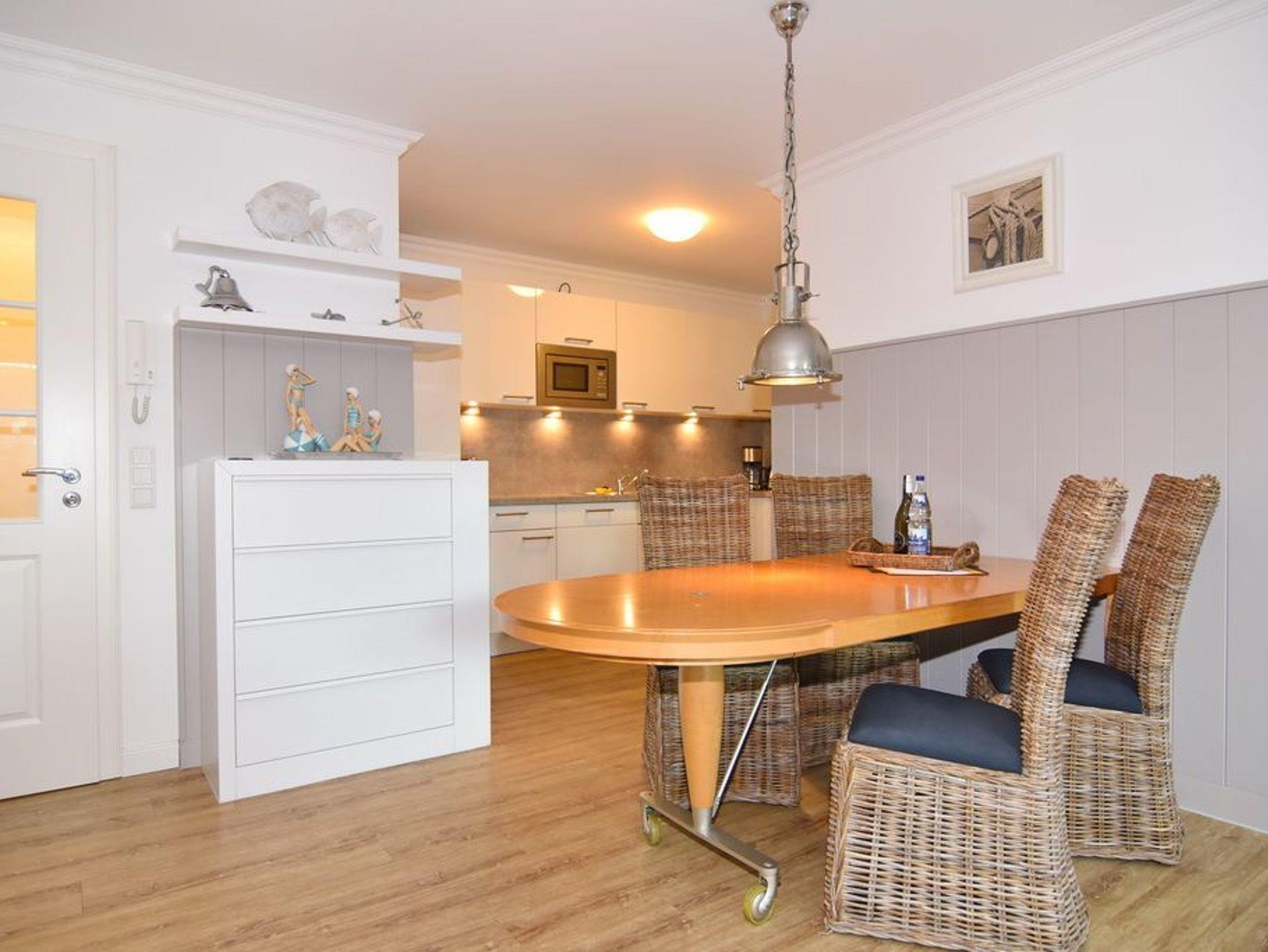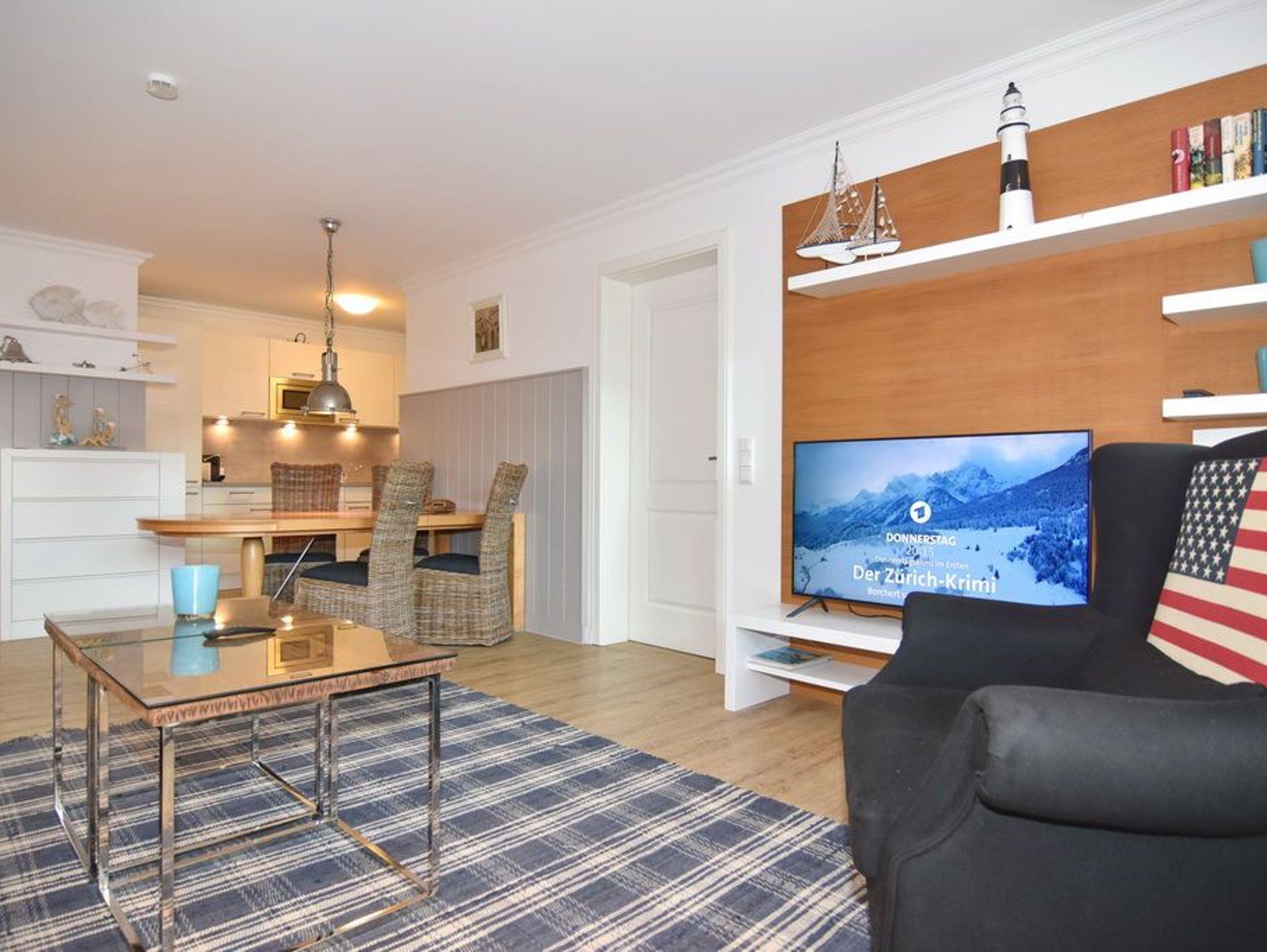 Moderne 2- Zimmer-Ferienwohnung im Erdgeschoss, ca. 68 m², Nichtraucher. Wohnzimmer mit Schlafcouch, Sessel, Esstisch mit 4 Stühlen, TV, Stereoanlage, W-LAN (ohne Gewähr), offene Küche mit Geschirrspüler, Mikrowelle und Backofen, Nespresso-Maschine, Schlafzimmer mit Doppelbett, Einbauschrank und TV (mit Netflix-Funktion), Südterrasse und kleiner Grünstreifen, Duschbad/ WC, Flur mit Garderobe. Fußboden mit Design Belag. Tierhaltung ist nicht gestattet. Ab 2026 ist Tierhaltung gestattet und muss kostnepflichtig angemeldet werden. Garagen- Parkbox Nr. 16 ( nicht für jeden PKW geeignet, max. Höhe 1,50m, max. Gewicht 2t, Breite 1,9, Länge 5 m, vor Nutzung muss die Bedienanleitung gelesen werden. Anleitung befindet sich vor Ort!). Bettwäsche und Handtücher sind zur Anreise aufgezogen.