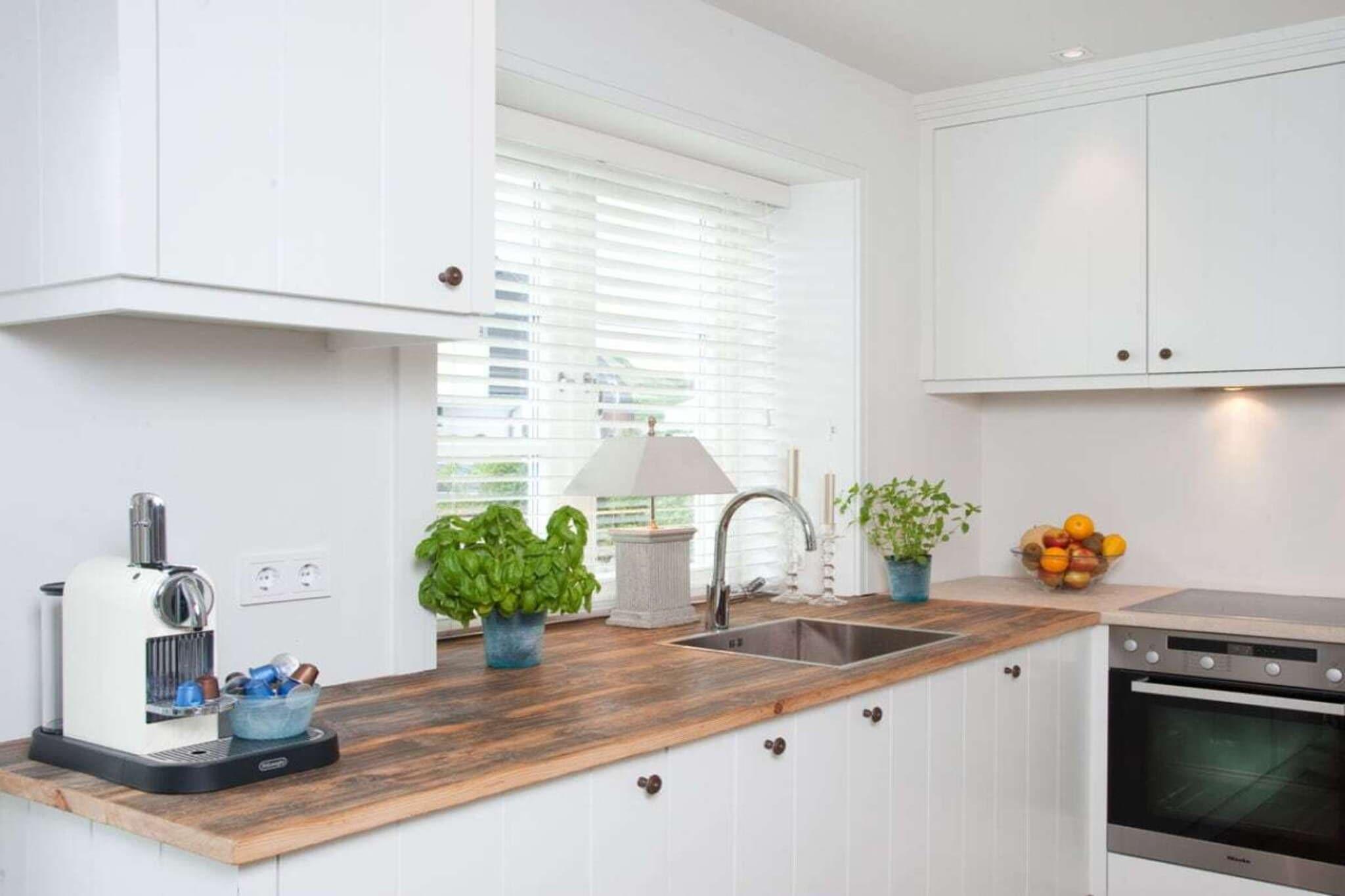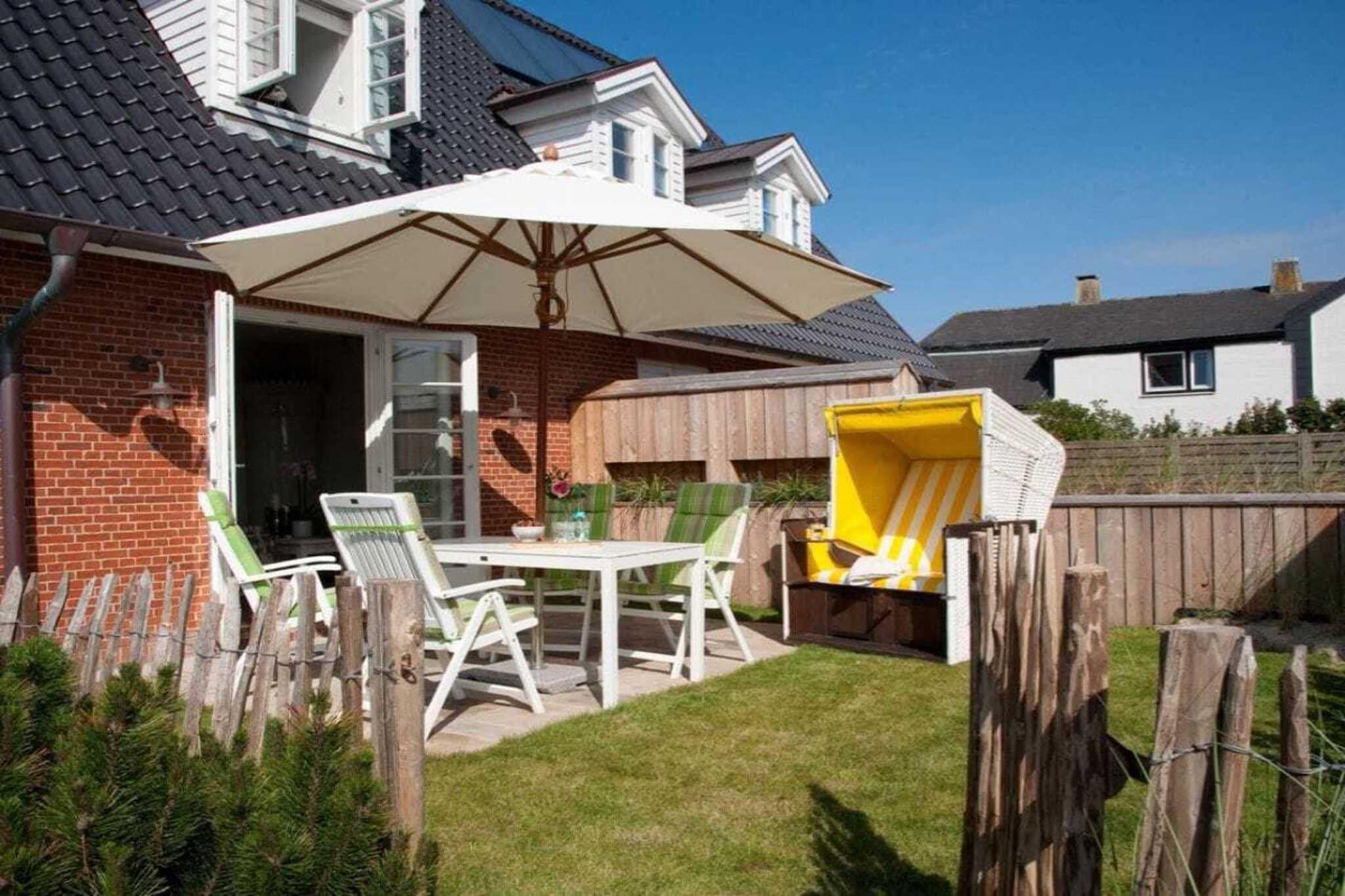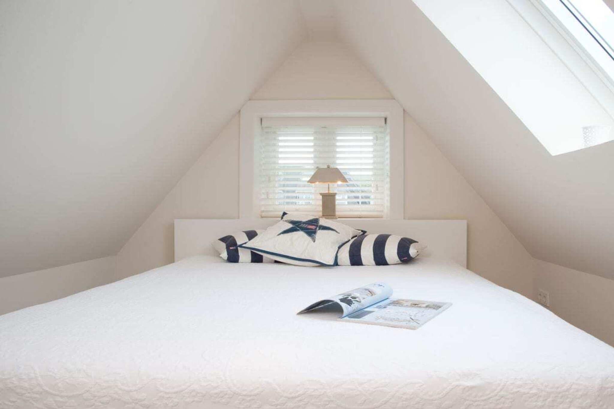 Dobbelthus med møbler af høj kvalitet, tæt på stranden. Ferielejligheden, der ligger i den vestlige del af huset, tilbyder stilfuld indretning i et lyst design fra Mylin Interiors. Udsøgte materialer af høj kvalitet, såsom antikke trægulve, fransk kalksten, lyse Farrow & Ball-malingfarver og rene snedkerarbejder, opfylder de højeste standarder. Kælderen har et wellness-område med sauna, regnbruser, badekar, et separat afslapningsrum med tv og et bryggers. Bryggerset er udstyret med vaskemaskine, tørretumbler og strygebræt. Stueetagen er fyldt med lys gennem store vinduer og terrassedøre. Den rummelige stue og spisestue støder op til et komfortabelt, åbent køkken i landlig stil. Udstyret med tv, dvd-afspiller, radio, Sonos-system og Wi-Fi, lader den intet tilbage at ønske. Den højkvalitets sofa tilbyder soveplads til to ekstra personer. Ovenpå er det lyse soveværelse med en dobbeltseng af høj kvalitet med boxmadras og tv samt et badeværelse med en rummelig regnbruser. Loftet er indrettet som læsestue – læs en bog og nyd den smukke udsigt over klitterne. Den sydvendte terrasse har komfortable havemøbler med parasol og strandstol. Der er parkeringsplads foran huset.