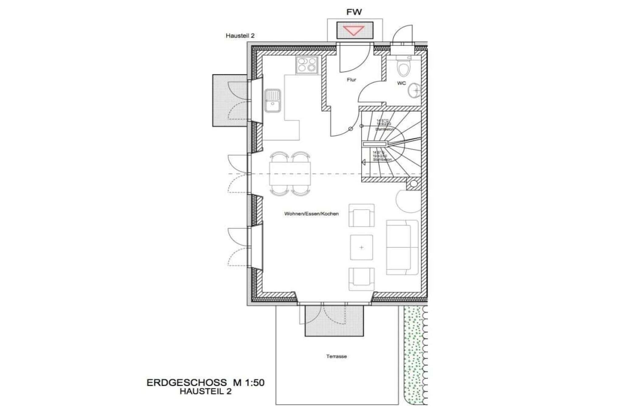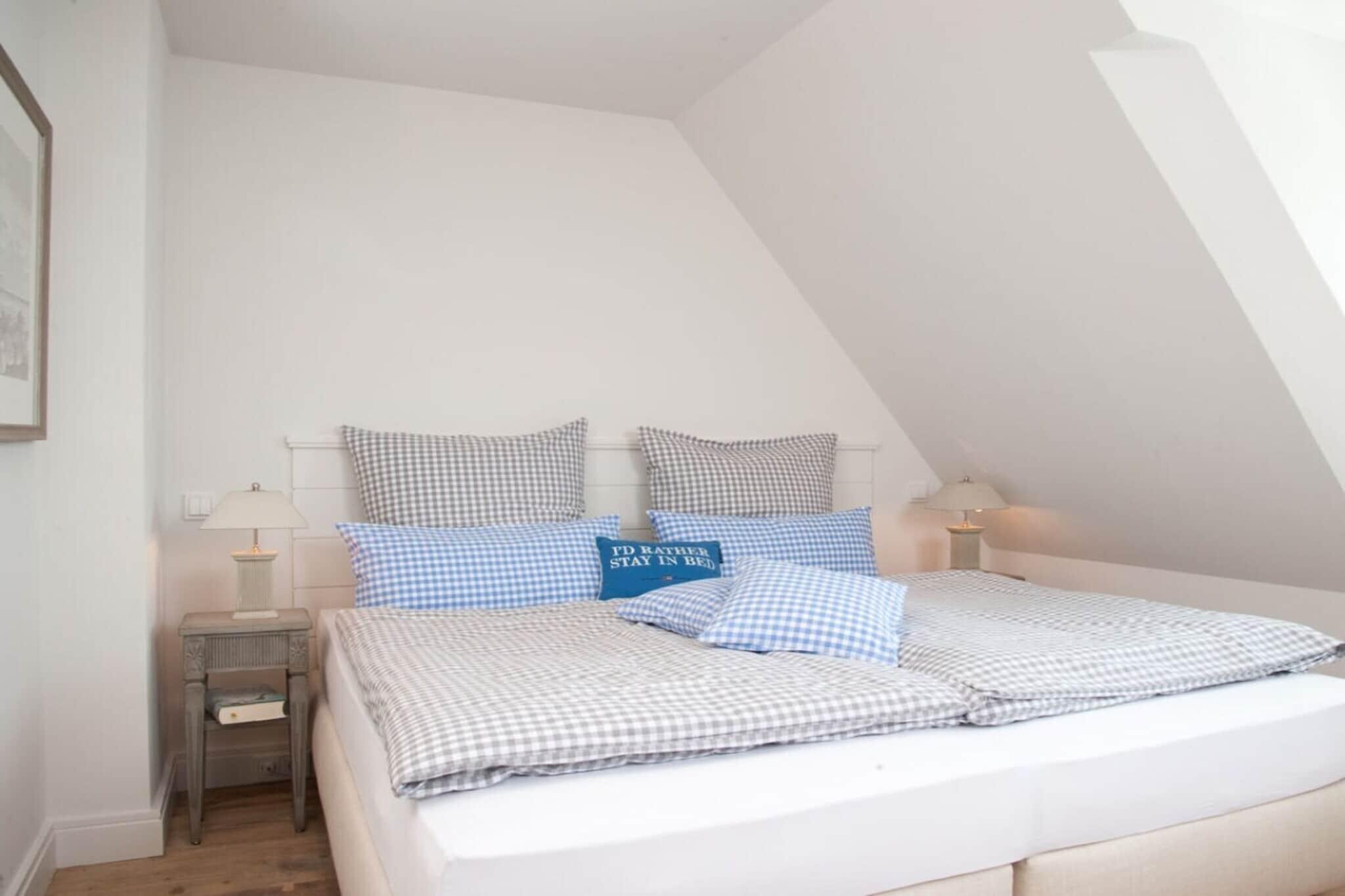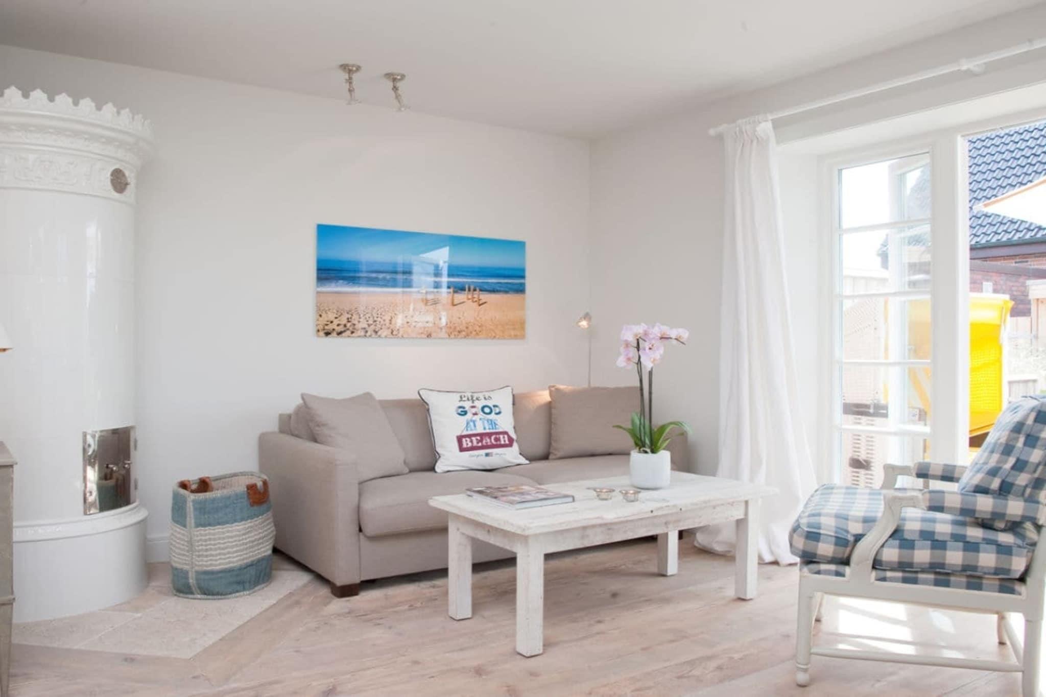 Dobbelthus med møbler af høj kvalitet, tæt på stranden. Ferielejligheden, der ligger i den vestlige del af huset, tilbyder stilfuld indretning i et lyst design fra Mylin Interiors. Udsøgte materialer af høj kvalitet, såsom antikke trægulve, fransk kalksten, lyse Farrow & Ball-malingfarver og rene snedkerarbejder, opfylder de højeste standarder. Kælderen har et wellness-område med sauna, regnbruser, badekar, et separat afslapningsrum med tv og et bryggers. Bryggerset er udstyret med vaskemaskine, tørretumbler og strygebræt. Stueetagen er fyldt med lys gennem store vinduer og terrassedøre. Den rummelige stue og spisestue støder op til et komfortabelt, åbent køkken i landlig stil. Udstyret med tv, dvd-afspiller, radio, Sonos-system og Wi-Fi, lader den intet tilbage at ønske. Den højkvalitets sofa tilbyder soveplads til to ekstra personer. Ovenpå er det lyse soveværelse med en dobbeltseng af høj kvalitet med boxmadras og tv samt et badeværelse med en rummelig regnbruser. Loftet er indrettet som læsestue – læs en bog og nyd den smukke udsigt over klitterne. Den sydvendte terrasse har komfortable havemøbler med parasol og strandstol. Der er parkeringsplads foran huset.