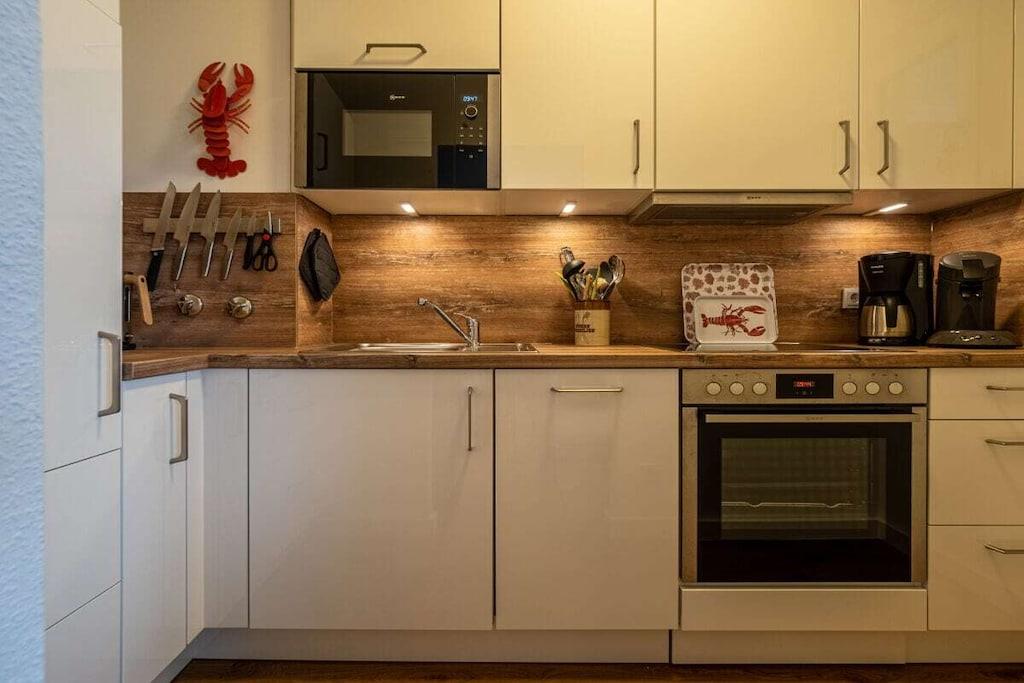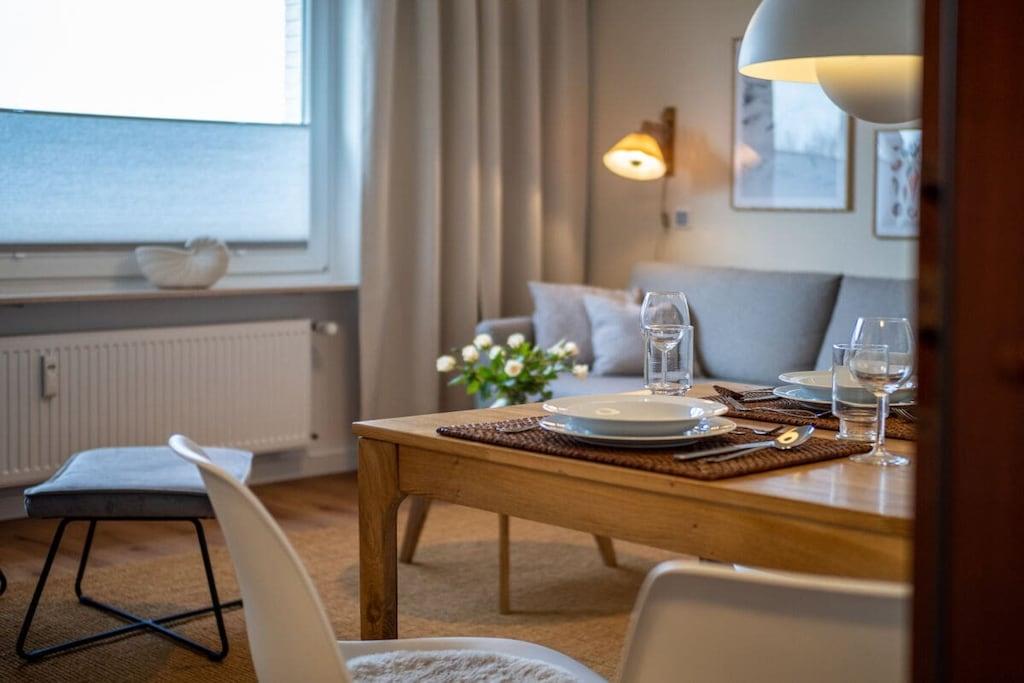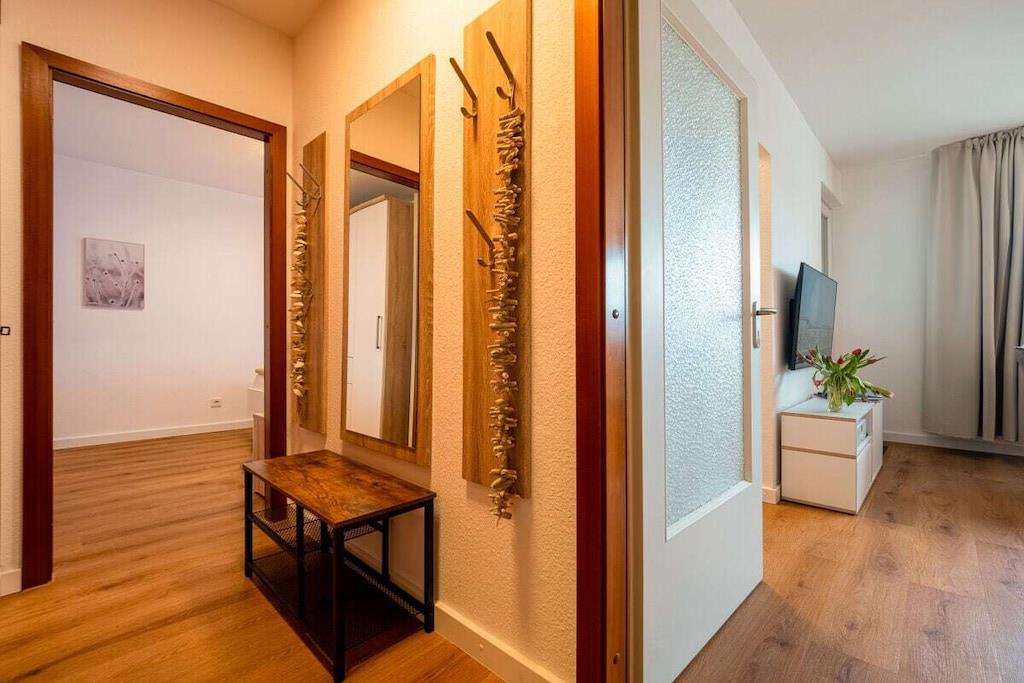 50 kvm lejlighed til 2 personer, øverste etage, ikke-ryger, ingen kæledyr 2 værelser, køkken, badeværelse, entré og sydvendt balkon, gratis privat parkeringsplads Fuldt udstyret separat køkken, fastnettelefon Lys, lys stue med 50" Smart TV, digitalradio, hurtigt fiberoptisk internet og Wi-Fi, komfortabel sofa og lænestol, spiseplads, masser af stikkontakter Soveværelse i hotelkvalitet: 50" Smart TV, 180 cm x 200 cm dobbeltseng med sengetøj, stort klædeskab Moderne badeværelse med stor bruseniche med indbygget sæde, stort oplyst spejl, sminkespejl, badehåndklæder Overdækket, møbleret sydvestvendt balkon med panoramaudsigt Cykelopbevaring, vaskemaskine og tørretumbler i kælderen