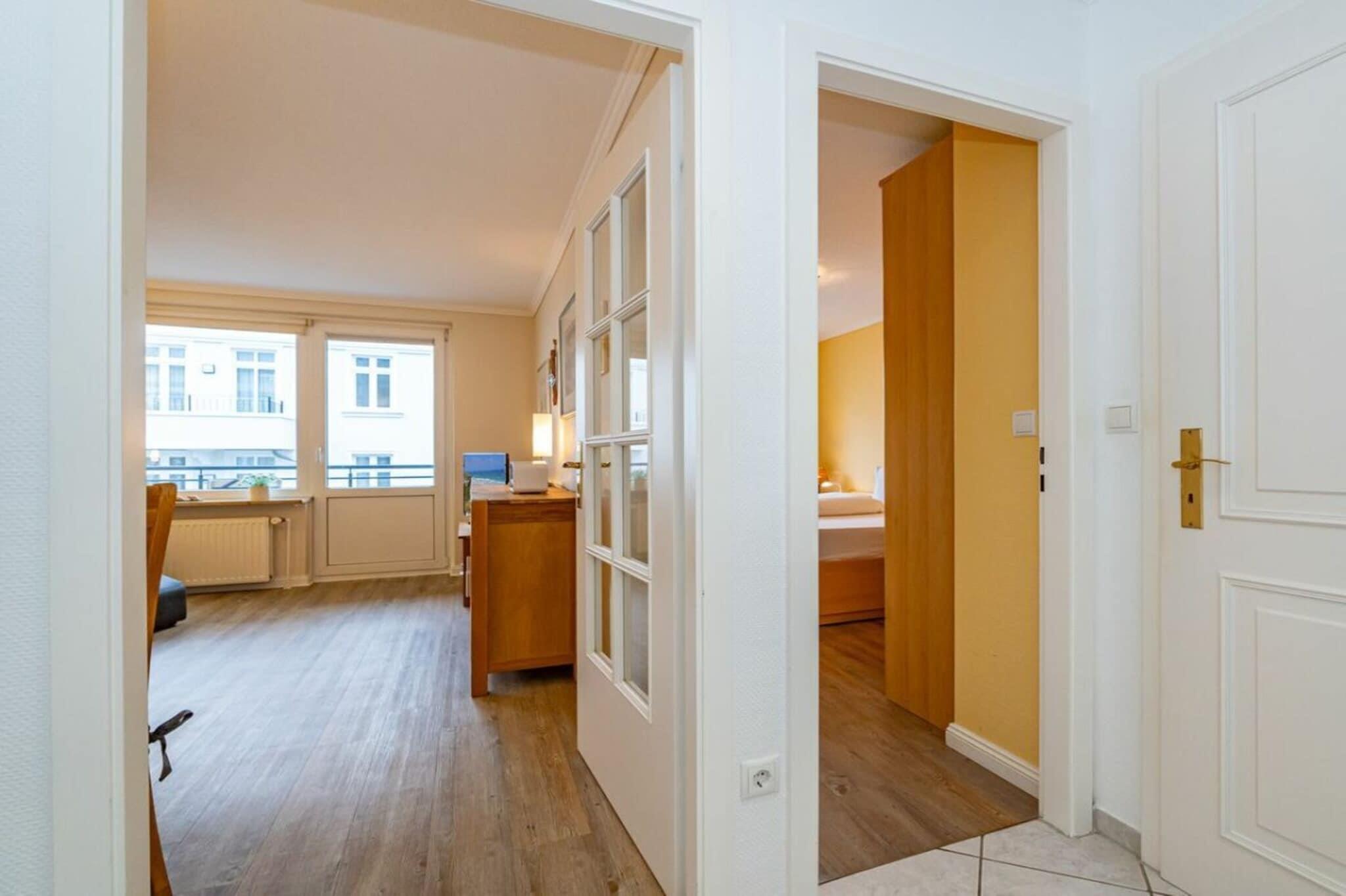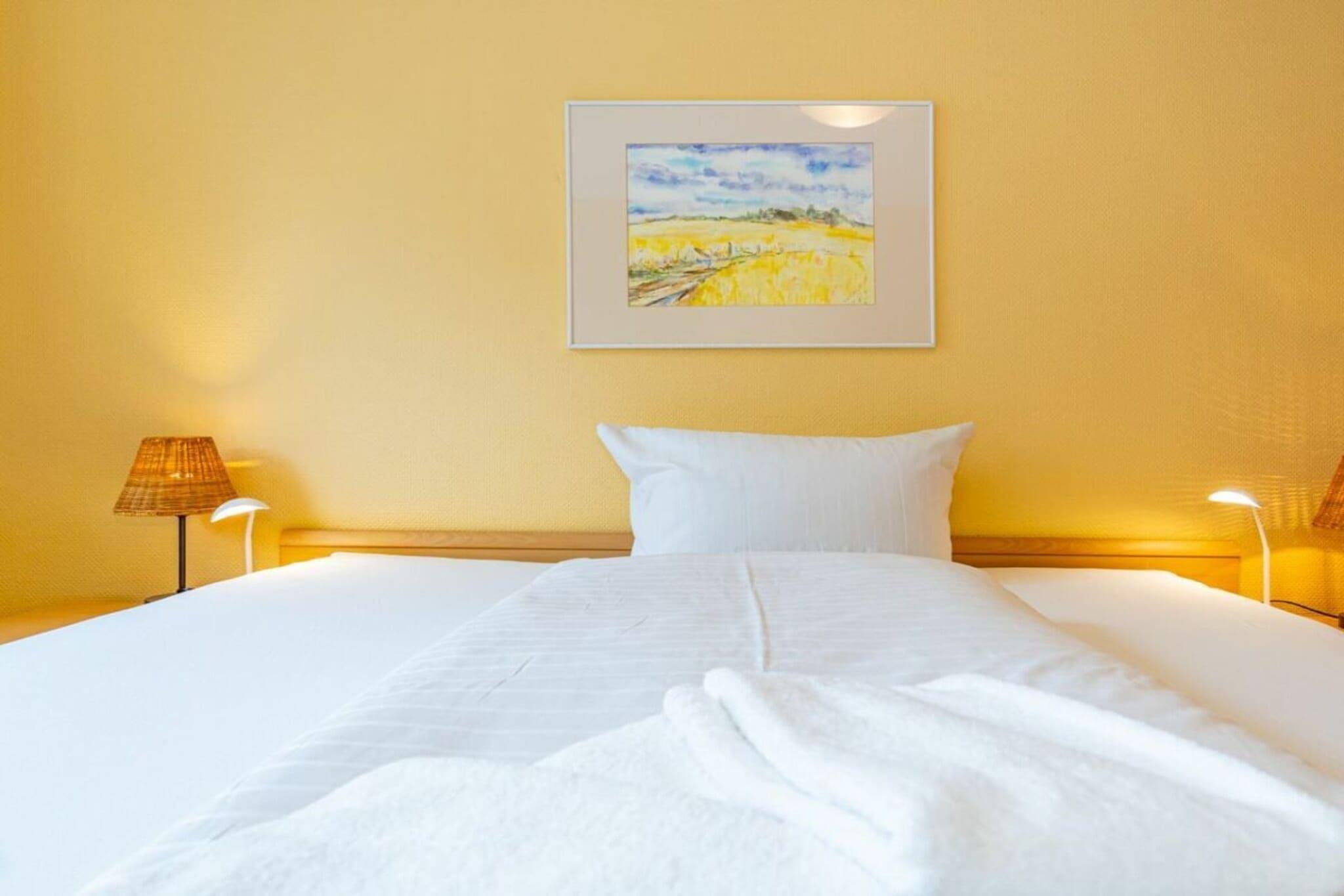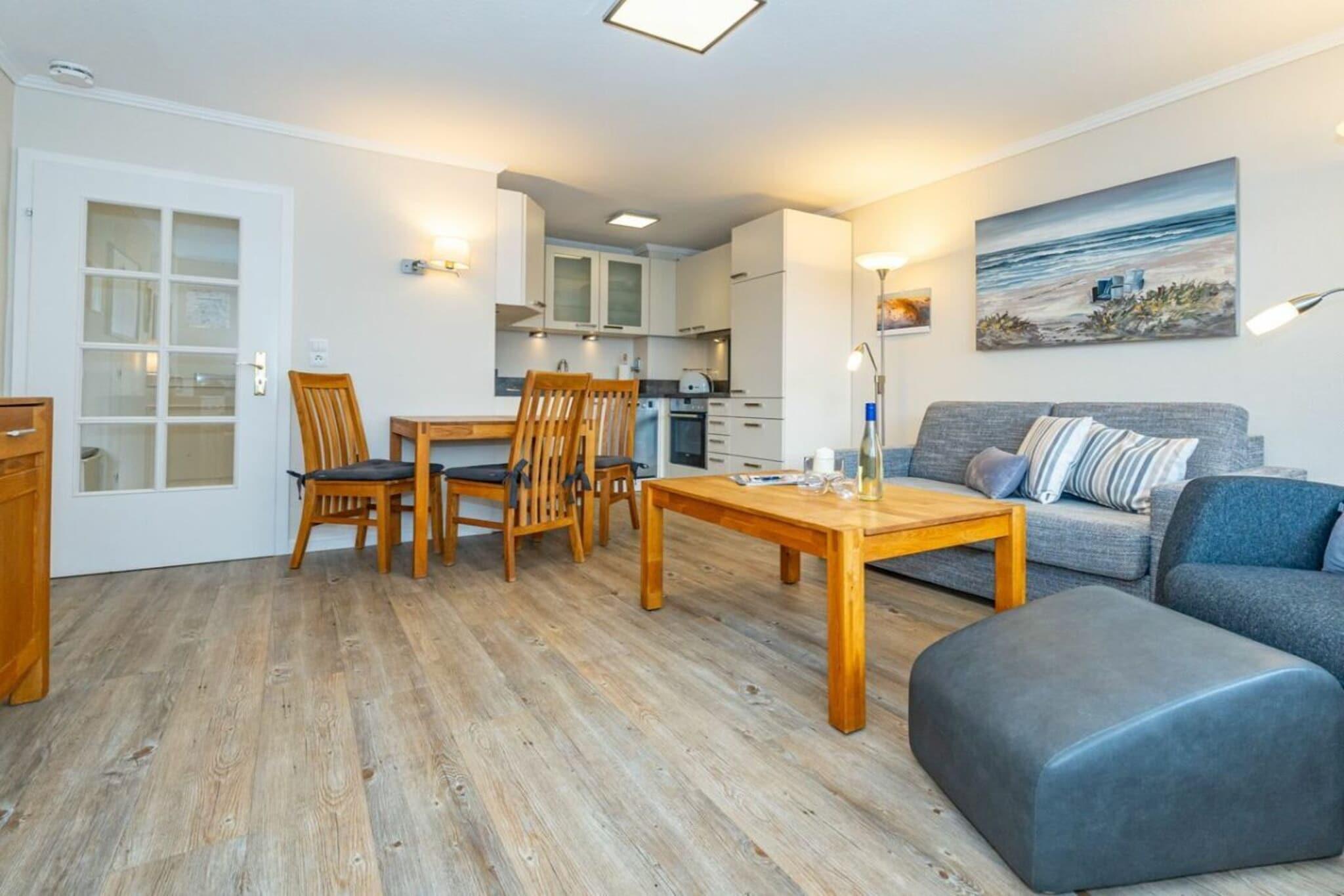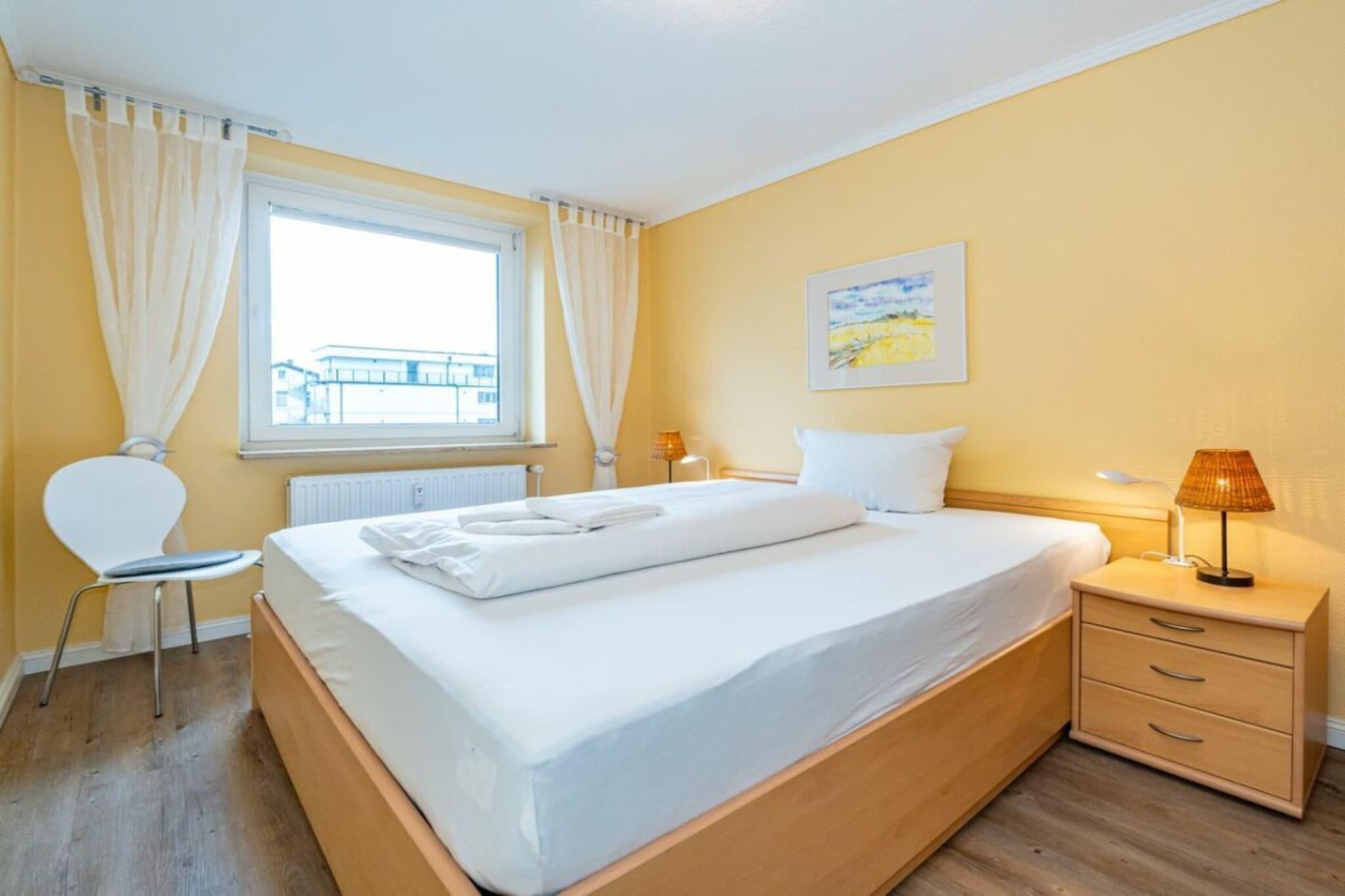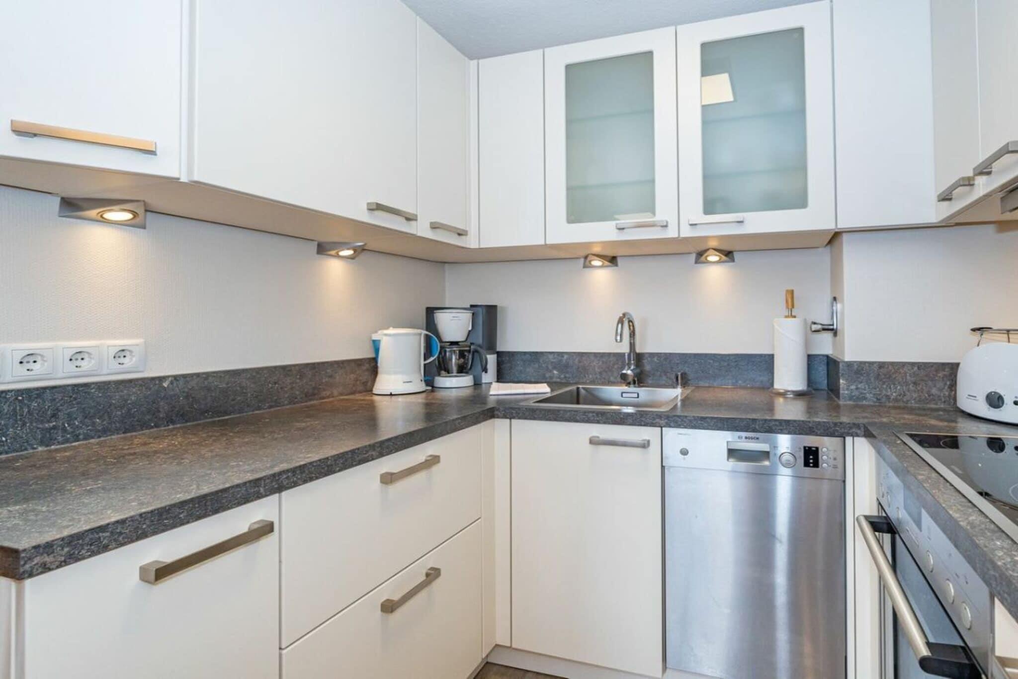 Lejlighed 16, Haus Dünenburg, til maks. 2 personer Denne 2-værelses lejlighed ligger på 2. sal og har en sydvendt altan. Køkken Indretningskøkken Opvaskemaskine Keramisk kogeplade med 4 blus Stue/spisestue Kabel-tv Stereoanlæg/CD-afspiller Wi-Fi og fastnetopkald til Tyskland inkluderet (ingen garanti) Balkon Soveværelse Badeværelse med bruser Parkeringsplads nr. 16 foran huset Bemærk: Ved kortere bookingperioder bedes du tjekke kalenderen for opfølgende bookinger, når du foretager din forespørgsel.