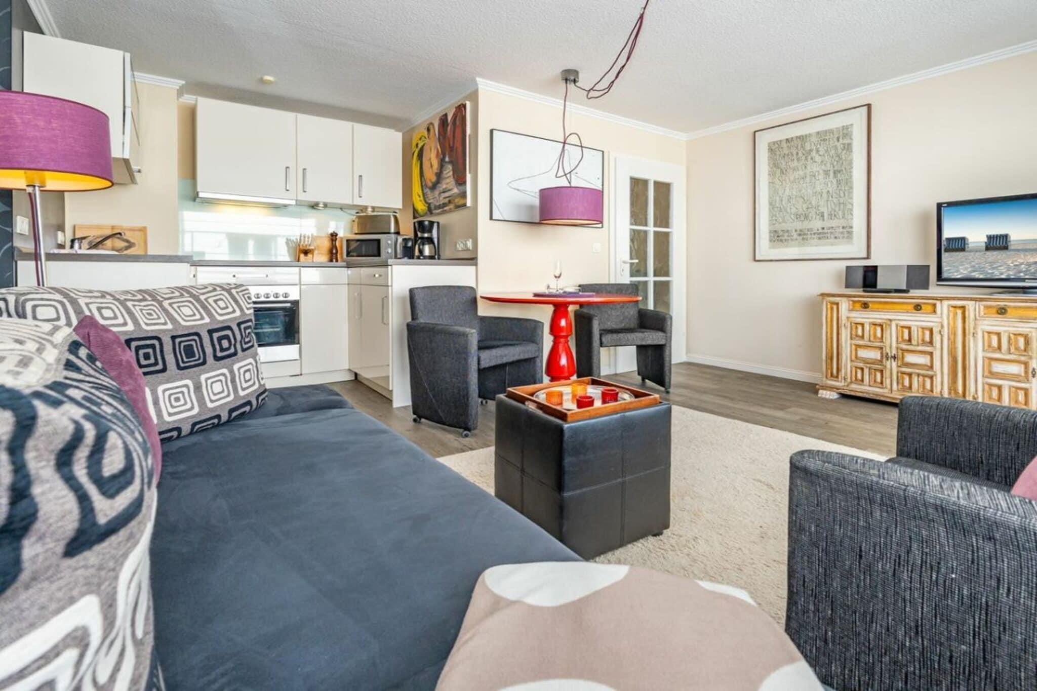 Lejlighed 23 Haus Dünenburg til maks. 2 personer / Ikke-ryger Denne 2-værelses lejlighed med åbent køkken ligger på 3. sal og har en nordvendt altan. Køkken Mikrobølgeovn Opvaskemaskine Keramisk kogeplade med 4 blus Ovn Stue/spisestue Kabel-tv Radio/CD-afspiller iPod-dockingstation Telefon Balkon Soveværelse Brusebad Garageplads nr. 23 bag huset Bemærk: Ved kortere bookingperioder bedes du tjekke kalenderen for opfølgende bookinger, når du foretager din forespørgsel.