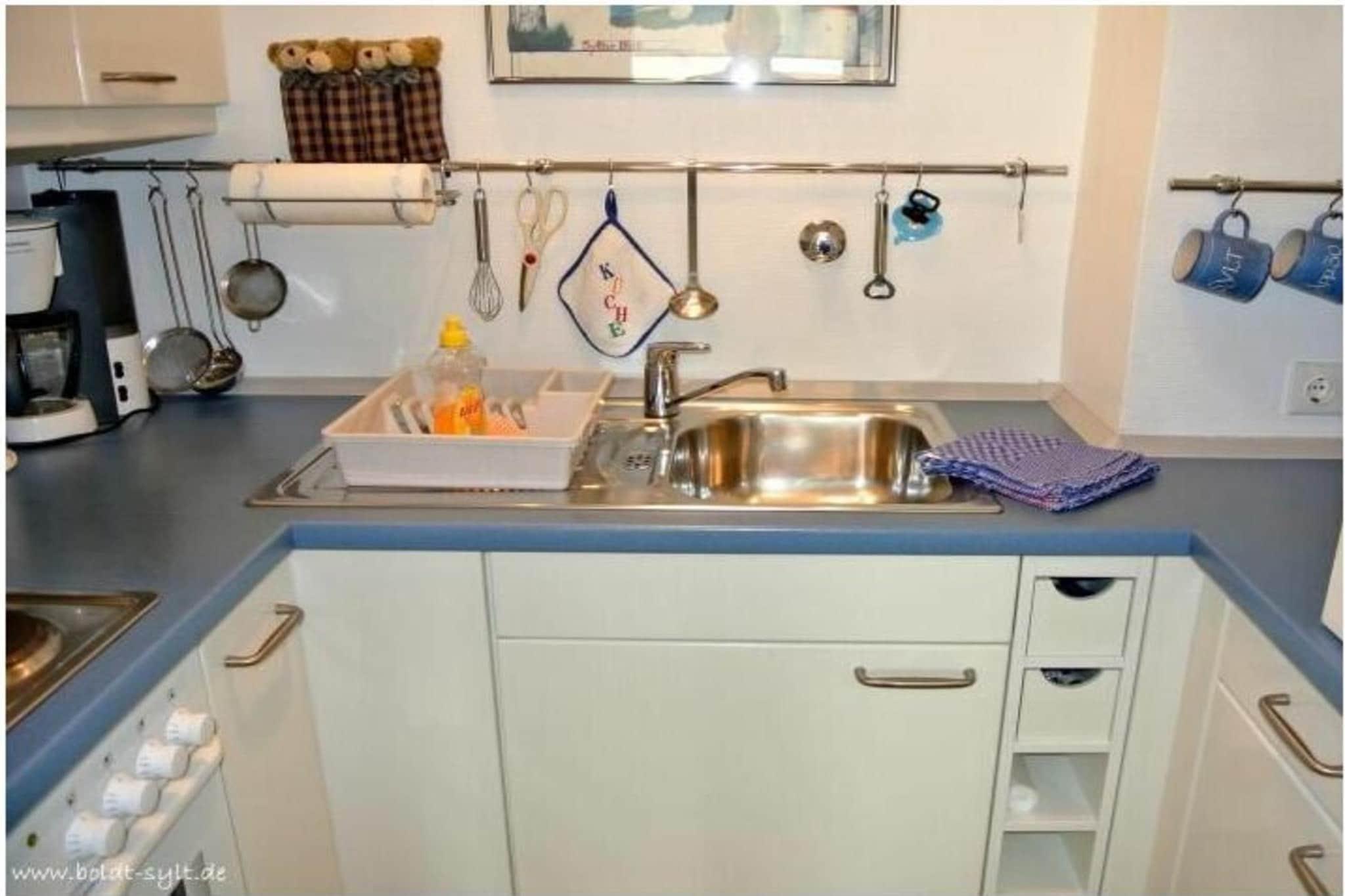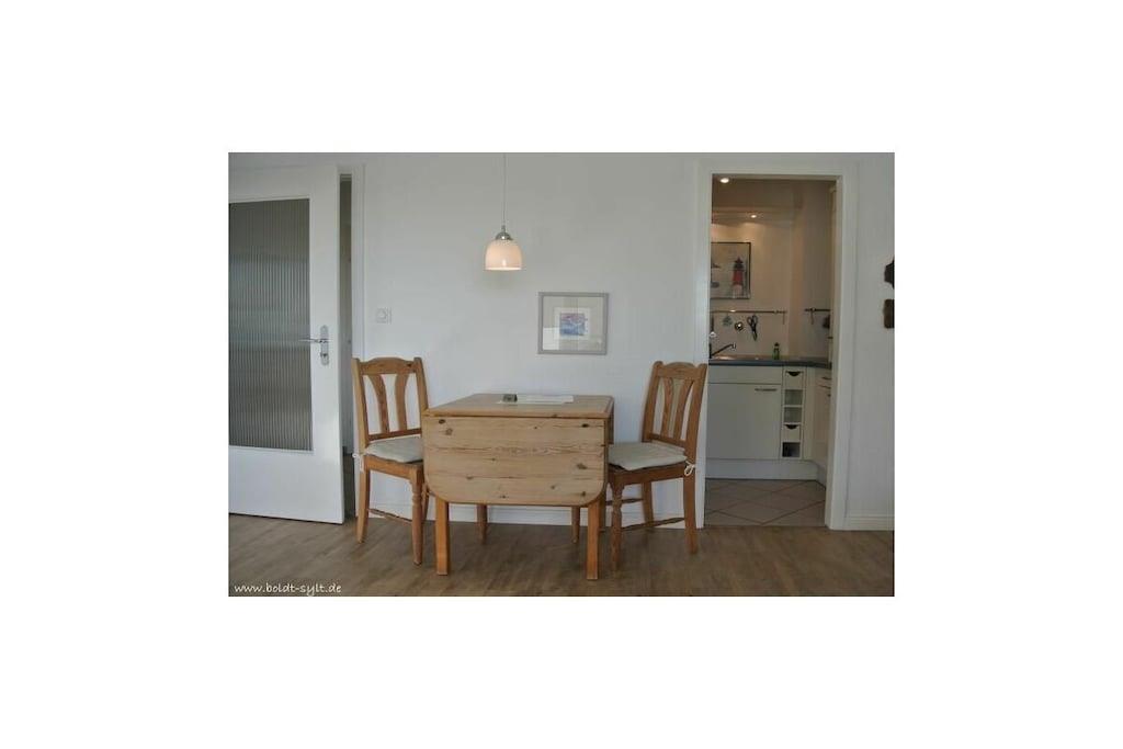 Lejlighed 30, Haus Dünenburg, plads til 2 personer Denne 2-værelses lejlighed ligger på 3. sal og har en sydvendt altan. Køkken Møbleret køkken (ingen opvaskemaskine) Komfur med 4 blus Ovn, mikrobølgeovn Stue/spisestue Kabel-tv Stereoanlæg/CD-afspiller Balkon Gratis Wi-Fi tilgængelig (ingen garanti) Soveværelse Badeværelse med bruser og hårtørrer Parkeringsplads nr. 30 bag huset Bemærk: Ved kortere bookingperioder bedes du tjekke kalenderen for opfølgende bookinger, når du foretager din forespørgsel.